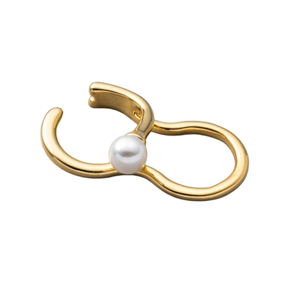 緩やかな曲線を描く艶やかメタルのダブルフィンガーリング。隣り合う2本の指に装着して指先を印象づける個性的なアイテムで、存在感を放つ大人な手元を演出◎一粒のパールがさりげないアクセントに。