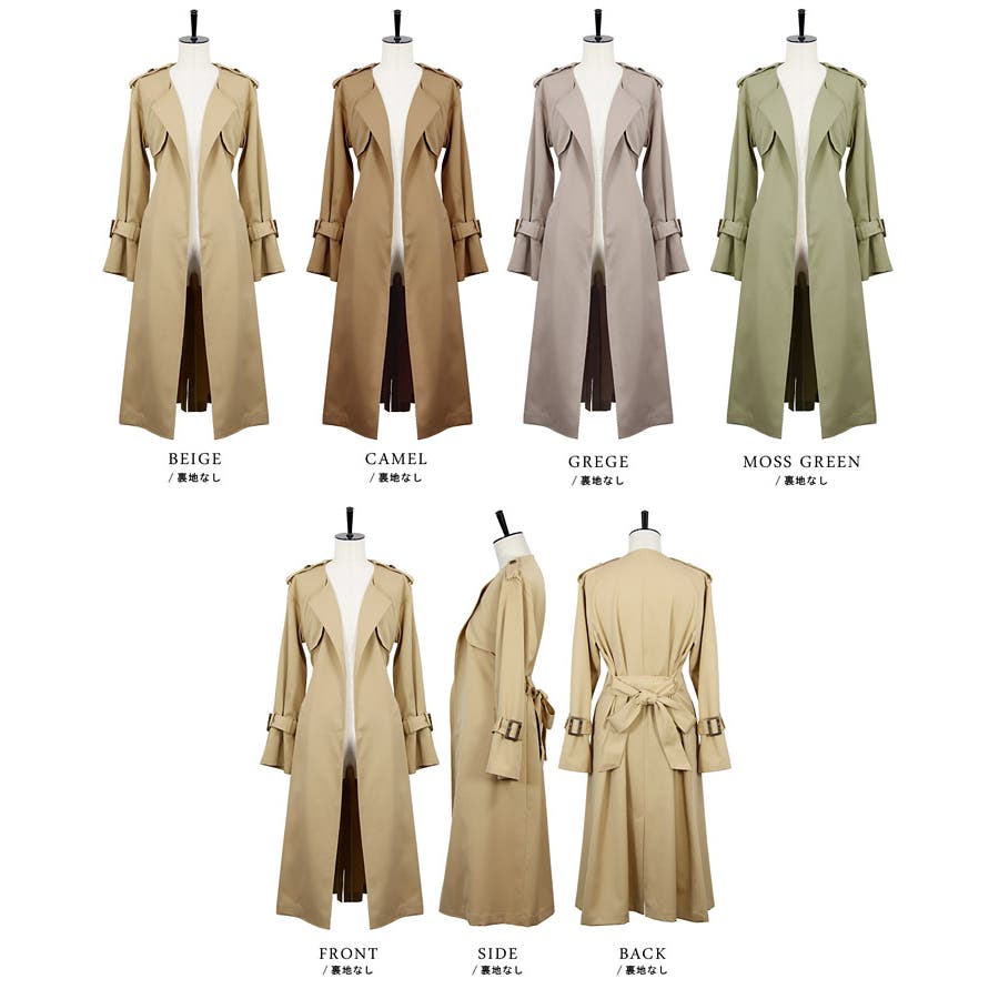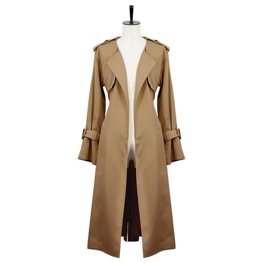 フレアスリーブノーカラーロング丈着流しとろみトレンチコート
