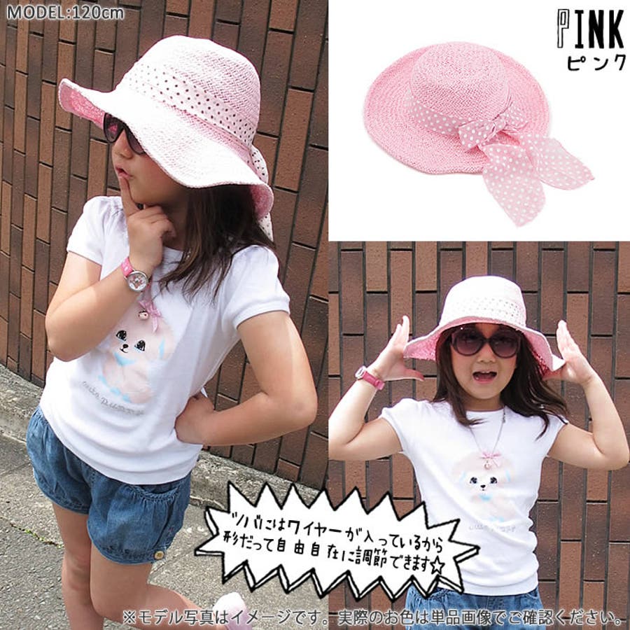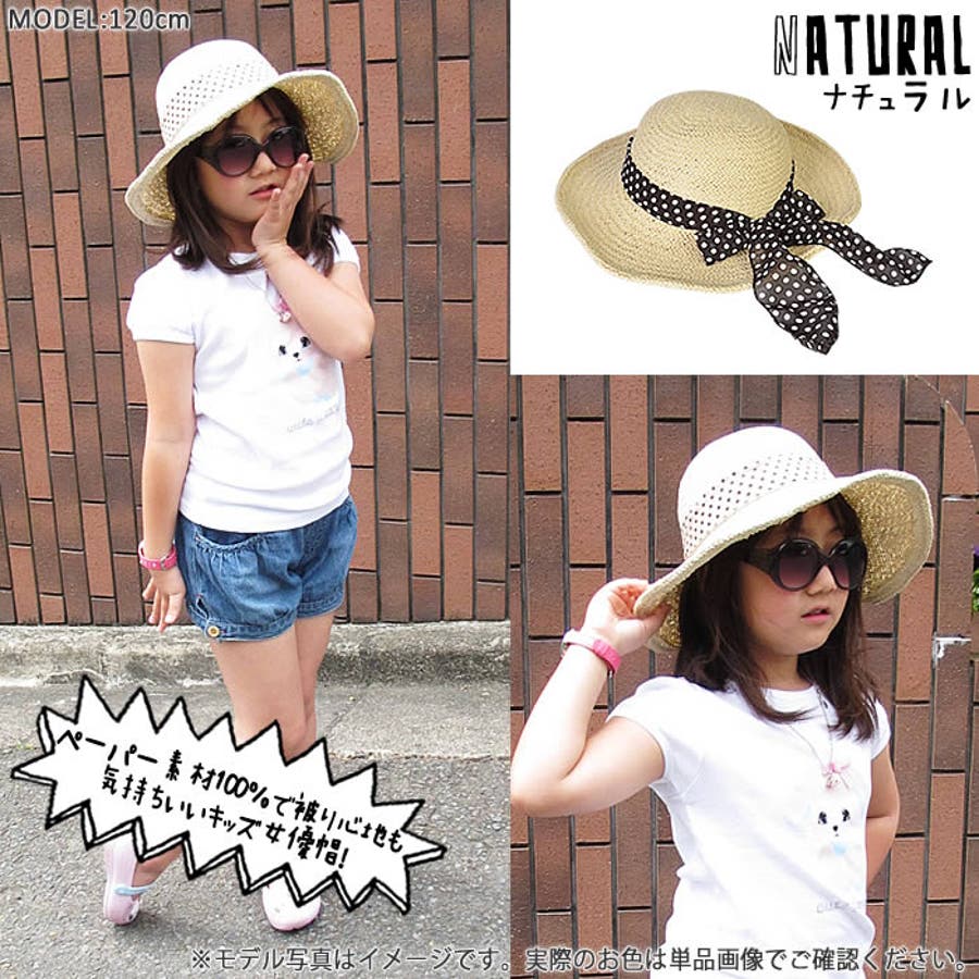 (キッズ用ドットリボン付ワイヤー入りペーパーリゾートハット)リゾートハット キッ…