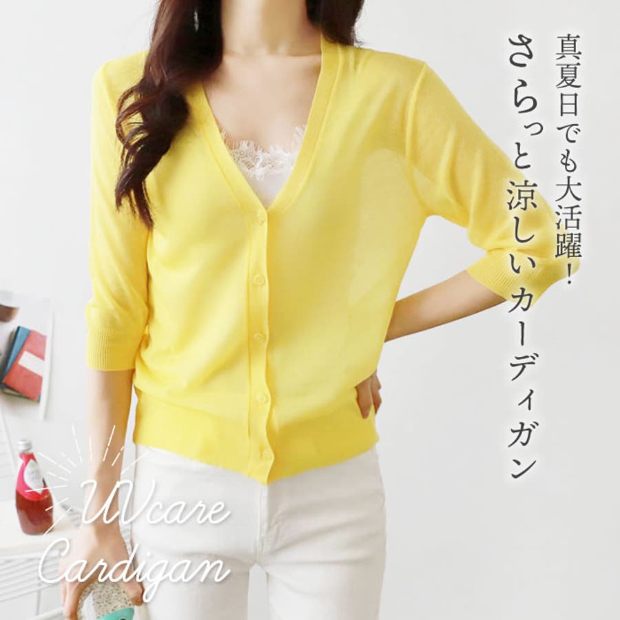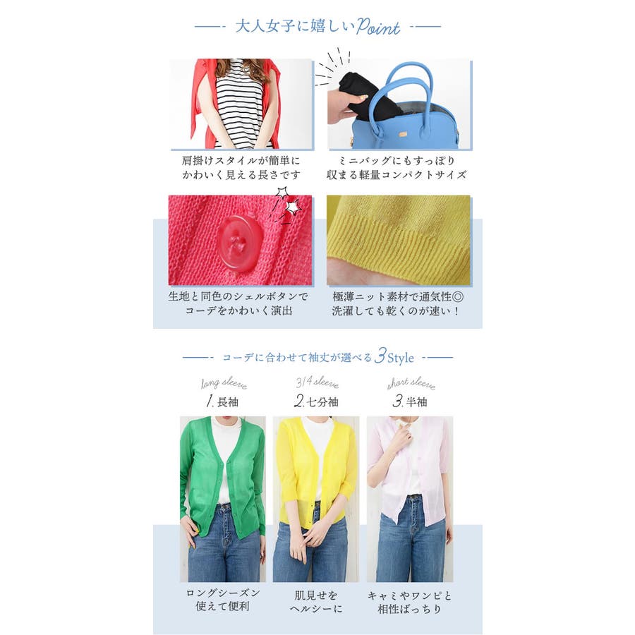 薄手のカーデは冷房対策やUV対策に使えるから1年中使えます。