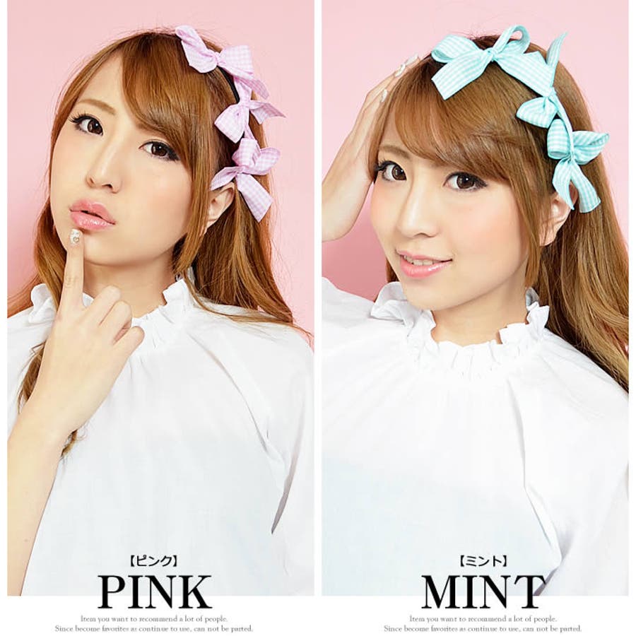 【オリジナル】カチューシャ ギンガムトリプルリボン カチューシャ