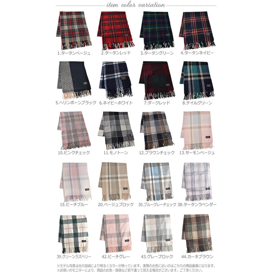 | カラー | 01.タータンベージュ(53) / 02.タータンレッド(40) / 03.タータングリーン(37) / 04.タータンネイビー(36) / 05.ヘリンボーン&ブラック(75) / 06.ネイビーホワイト(12) / 07.ダークレッド(1) / 08.テイルグリーン(47) / 10.ピンクチェック(S3) / 11.モノトーン(26) / 12.ブラウンチェック(24) / 13.サーモンベージュ(115) / 15.ピーチブルー(544) / 20.ベージュブロック(559) / 30.ブルーグレーチェック(157) / 39.グリーンラズベリー(181) / 38.タータンラベンダー(178) / 42.ピーチグレー(183) / 43.グレーブロック(176) / 44.カーキブラウン(174) |