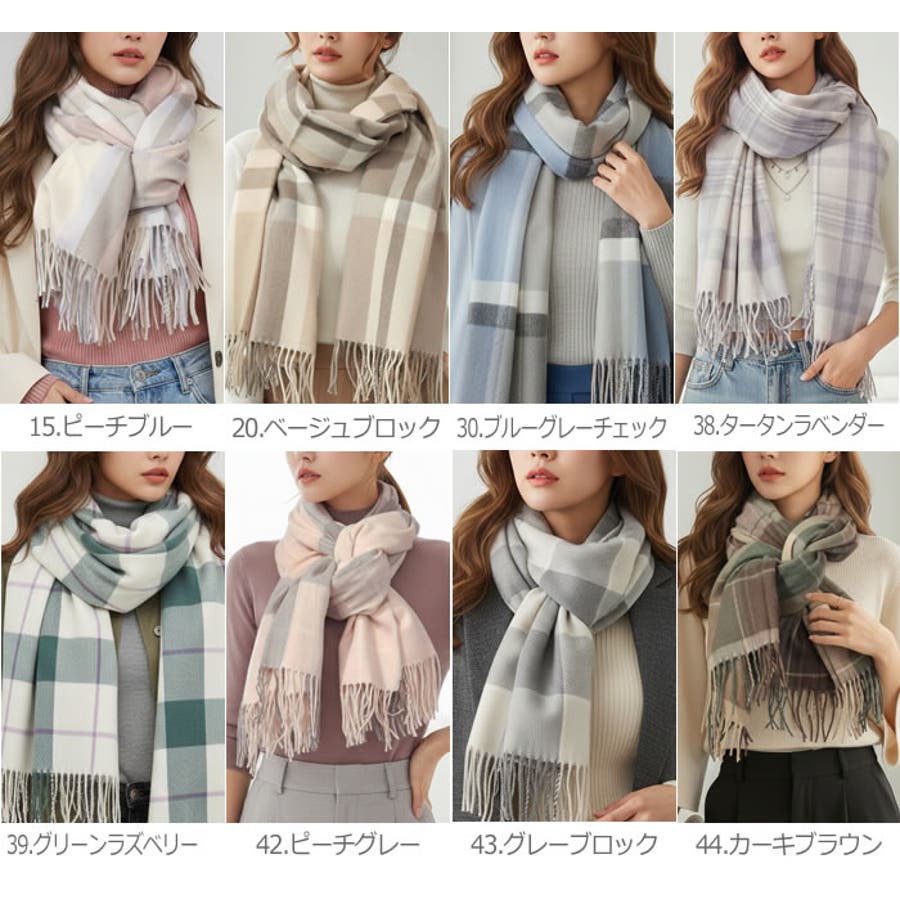 ■カラー:1.タータンベージュ(53)・2.タータンレッド(40)・3.タータングリーン(37)・4.タータンネイビー(36)・5.ヘリンボーン&ブラック(75)・6.ネイビーホワイト(12)・7.ダークレッド(1)・8.テイルグリーン(47)・10.ピンクチェック(S3)・11.モノトーン(26)・12.ブラウンチェック(24)・13.サーモンベージュ(115)・15.ピーチブルー(544)・20.ベージュブロック(559)・30.ブルーグレーチェック(157)・38.タータンラベンダー(178)・39.グリーンラズベリー(181)・42.ピーチグレー(183)・43.グレーブロック(176)・44.カーキブラウン(174)
