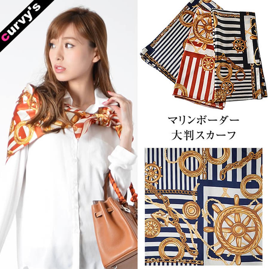 (マリンボーダー大判スカーフ)スカーフ 大判スカーフ 大判 マリン ボーダー