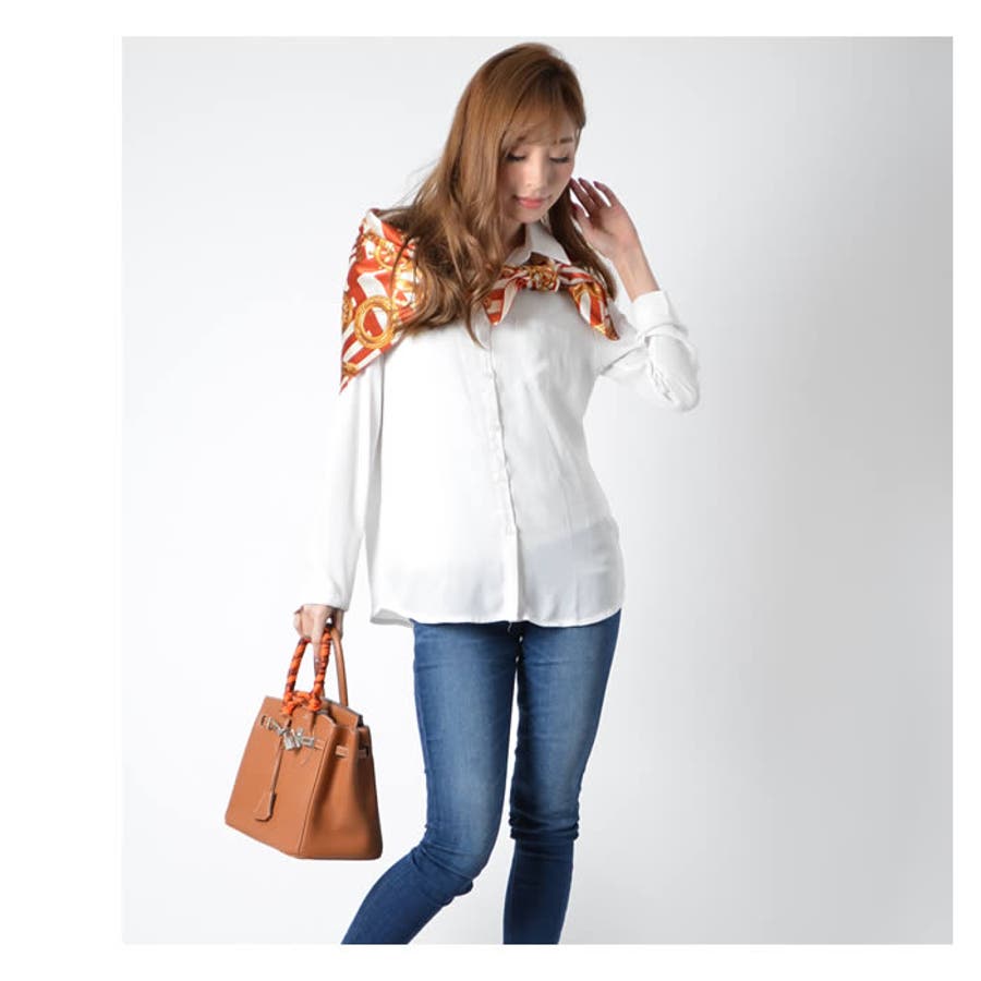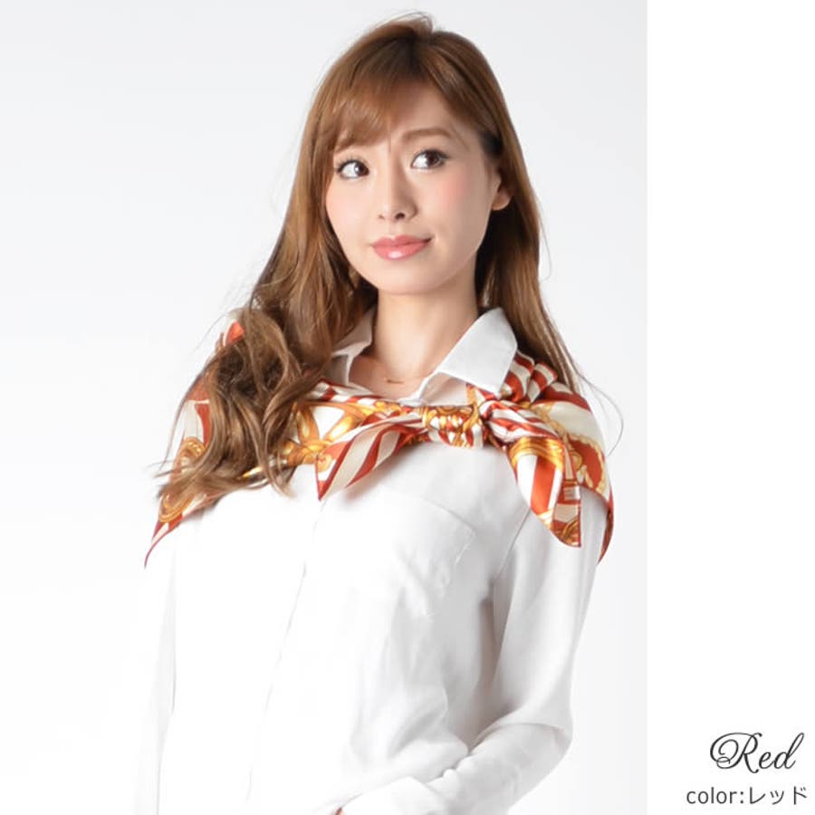 テロッとしたサテン素材なので、ショール感覚で肩からさらりとたらしたり、鞄につけたり使い方は無限大。