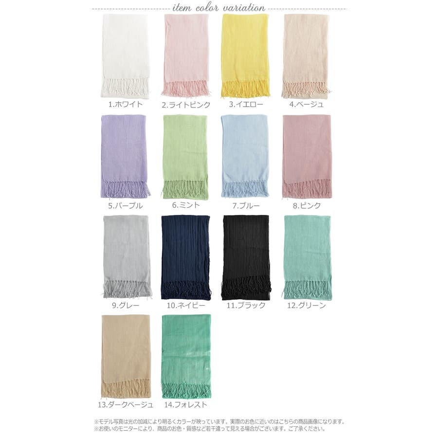 ■カラー:1.ホワイト・2.ライトピンク・3.イエロー・4.ベージュ・5.パープル・6.ミント・7.ブルー・8.ピンク・9.グレー・10.ネイビー・11.ブラック・12.グリーン・13.ダークベージュ・14.フォレスト