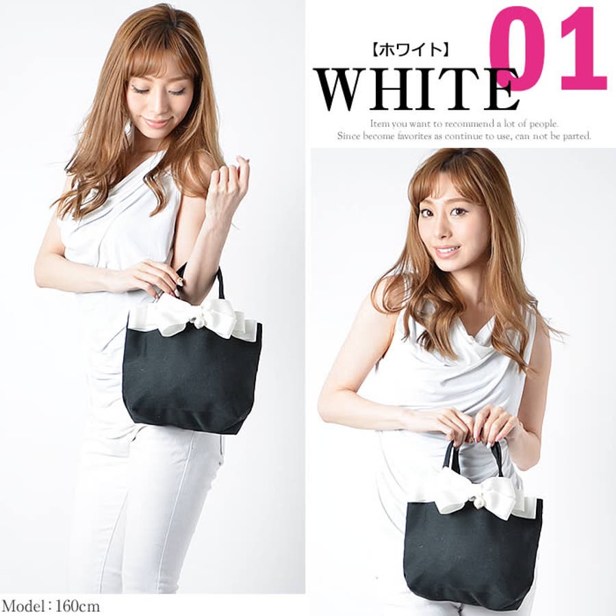 モノトーンカラーのリボン使いだから大人も持ちやすいトートバッグです。
