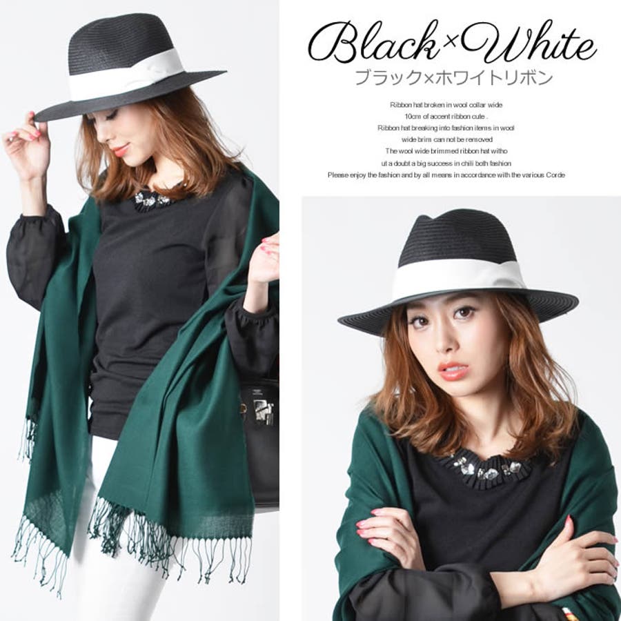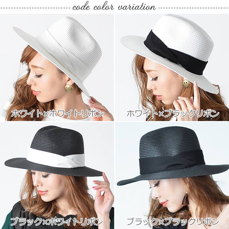 (ねじれリボンつば広中折れハット)つば広ハット 中折れハット つば広