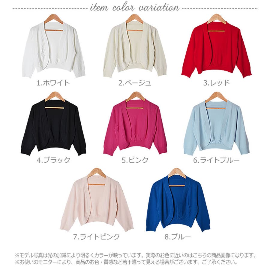 ■カラー:1.ホワイト/七分袖・2.ベージュ/七分袖・3.レッド/七分袖・4.ブラック/七分袖・5.ピンク/七分袖・6.ライトブルー/七分袖・7.ライトピンク/七分袖・8.ブルー/七分袖・9.ブラック/長袖