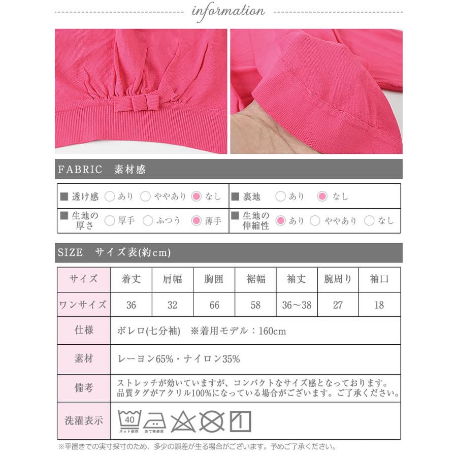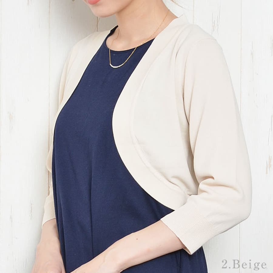 バックの裾にちょこんとリボンのついたキュートでガーリーなショート丈ボレロです。