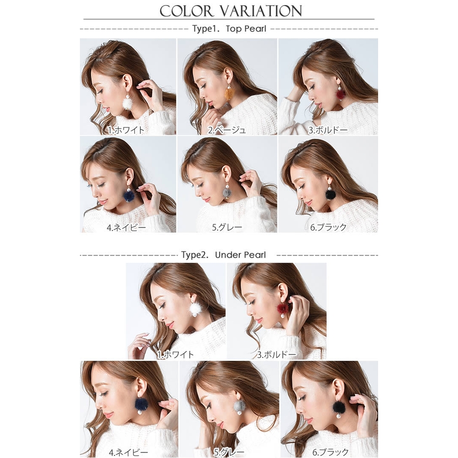 ■カラー:トップパール・アンダーパール(1.ホワイト・2.ベージュ・3.ボルドー・4.ネイビー・5.グレー・6.ブラック)