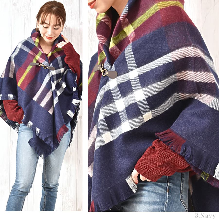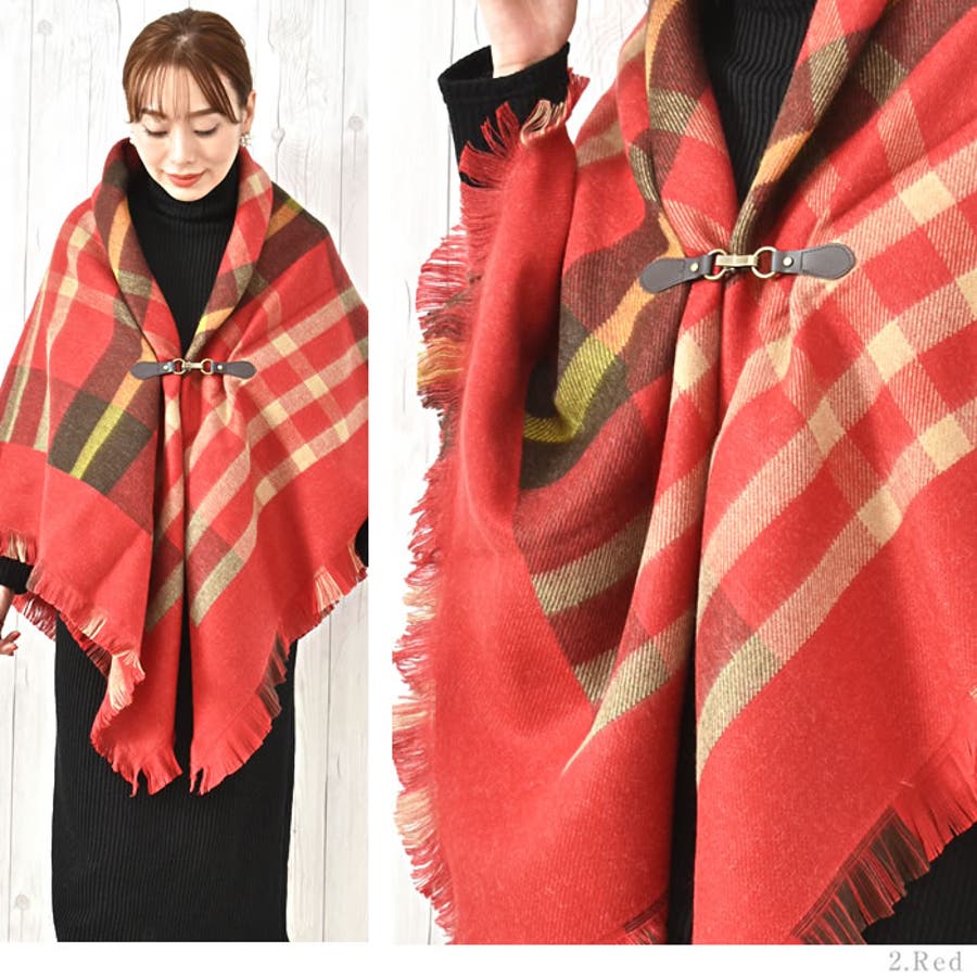 (金具付き大判チェックストール)ストール レディース 大判ストール