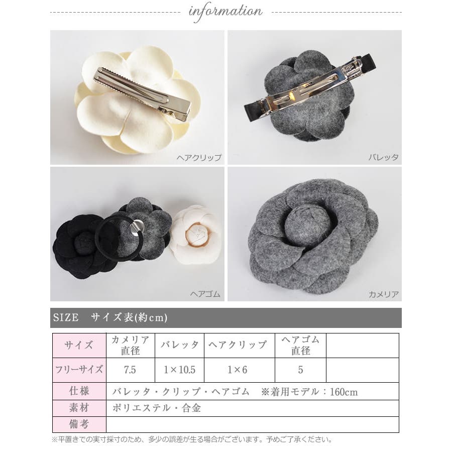 ■サイズ:カメリアサイズ:7.5cm・ヘアクリップサイズ:1cm×7.5cm・バレッタ1cm×10.5cm