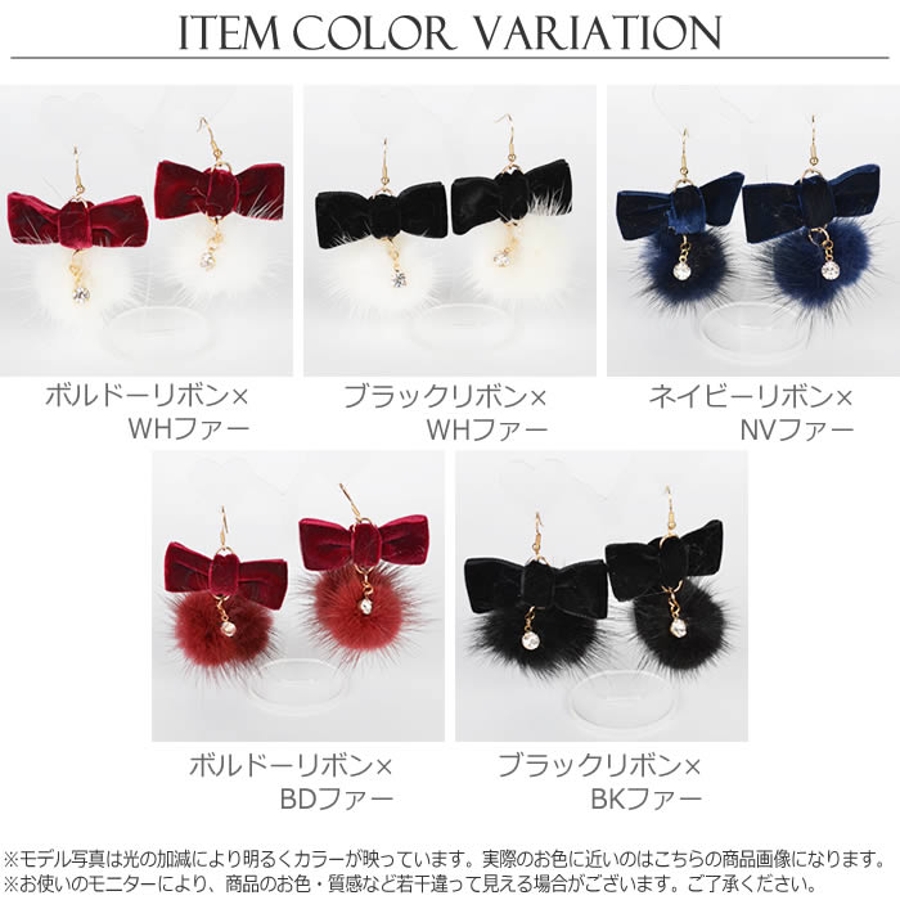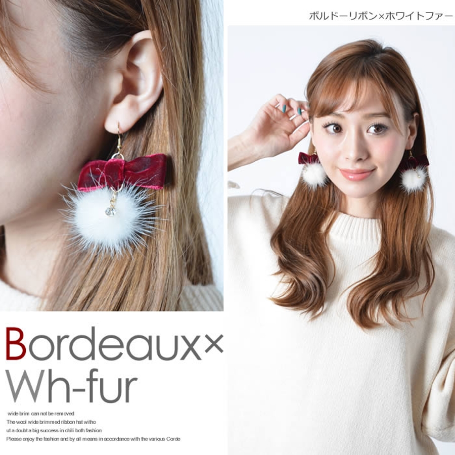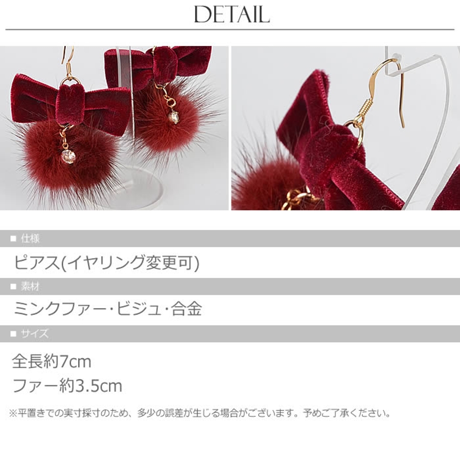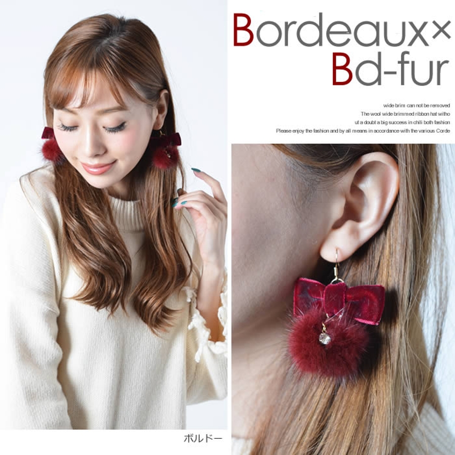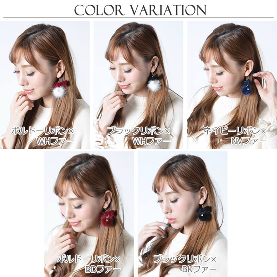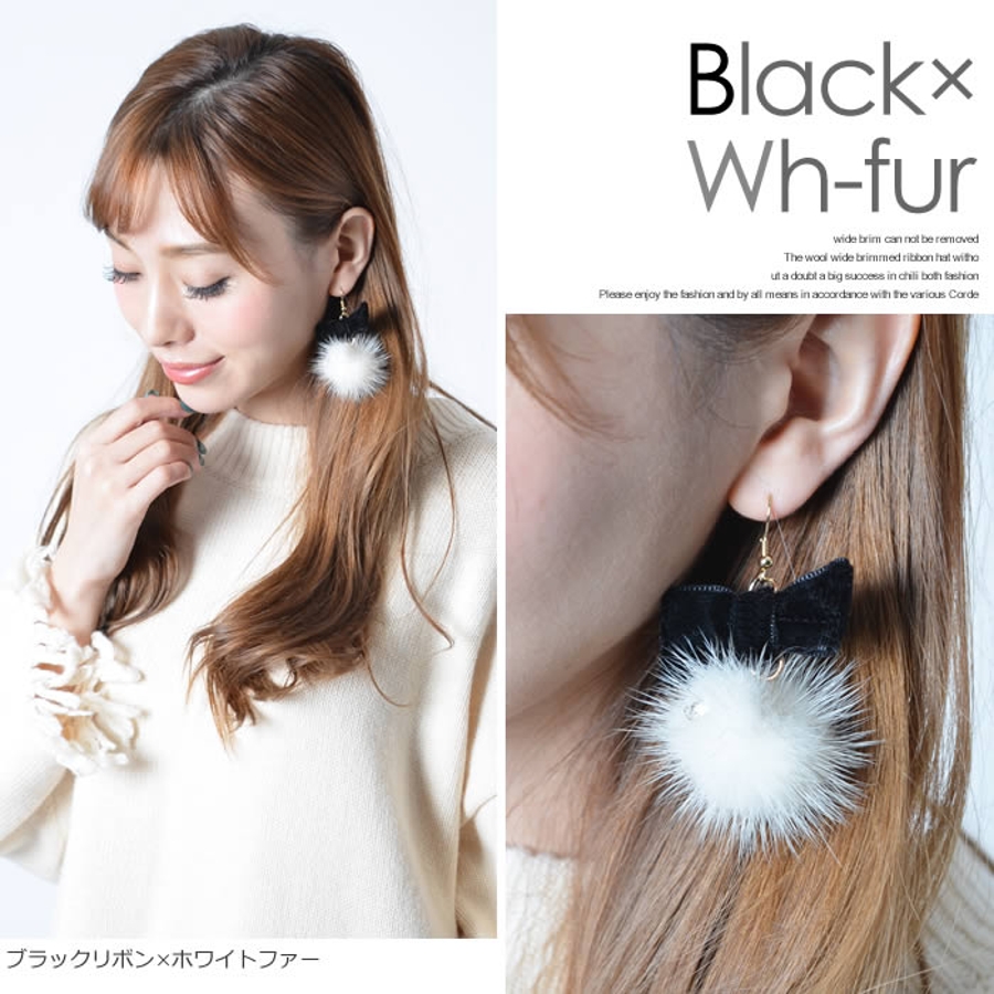 いろんなコーデにぴったりのミンクファーリボンピアスはプレゼントにもオススメです♪