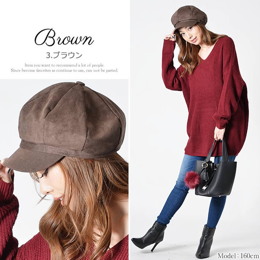 大きめサイズのキャスケットで、トップを前や横に持ってくると色んな表情を楽しめます。