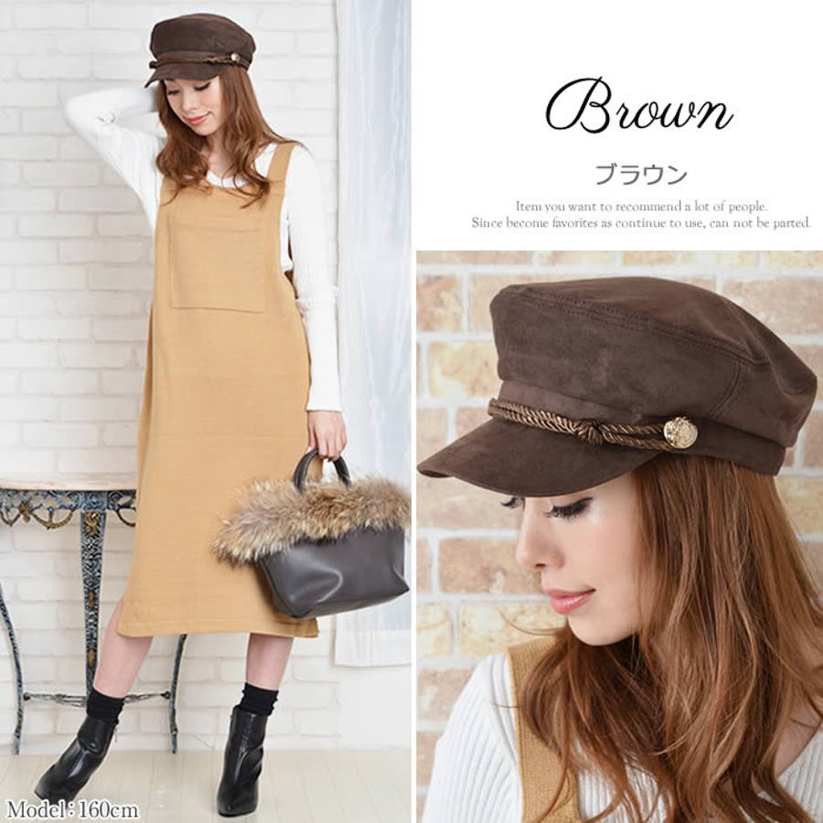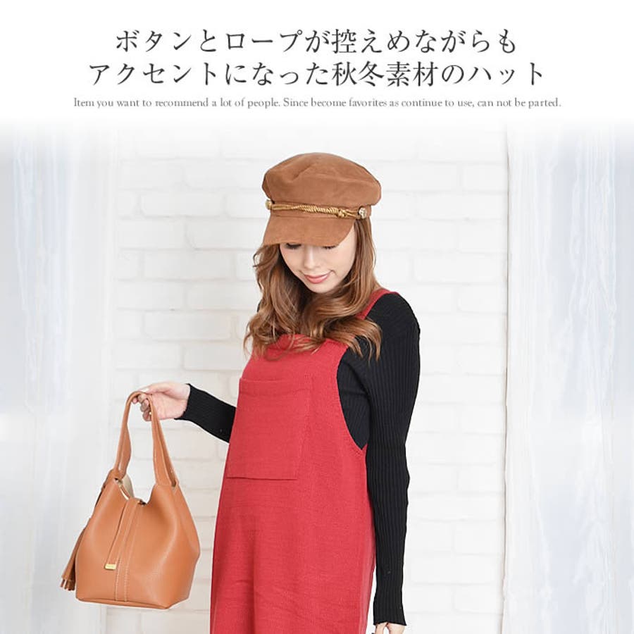 ボタンとロープが控えめながらもアクセントになった秋冬素材のハット。