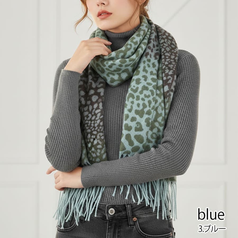 (レオパードダブルカラー大判ストール) ストール 大判ストール
