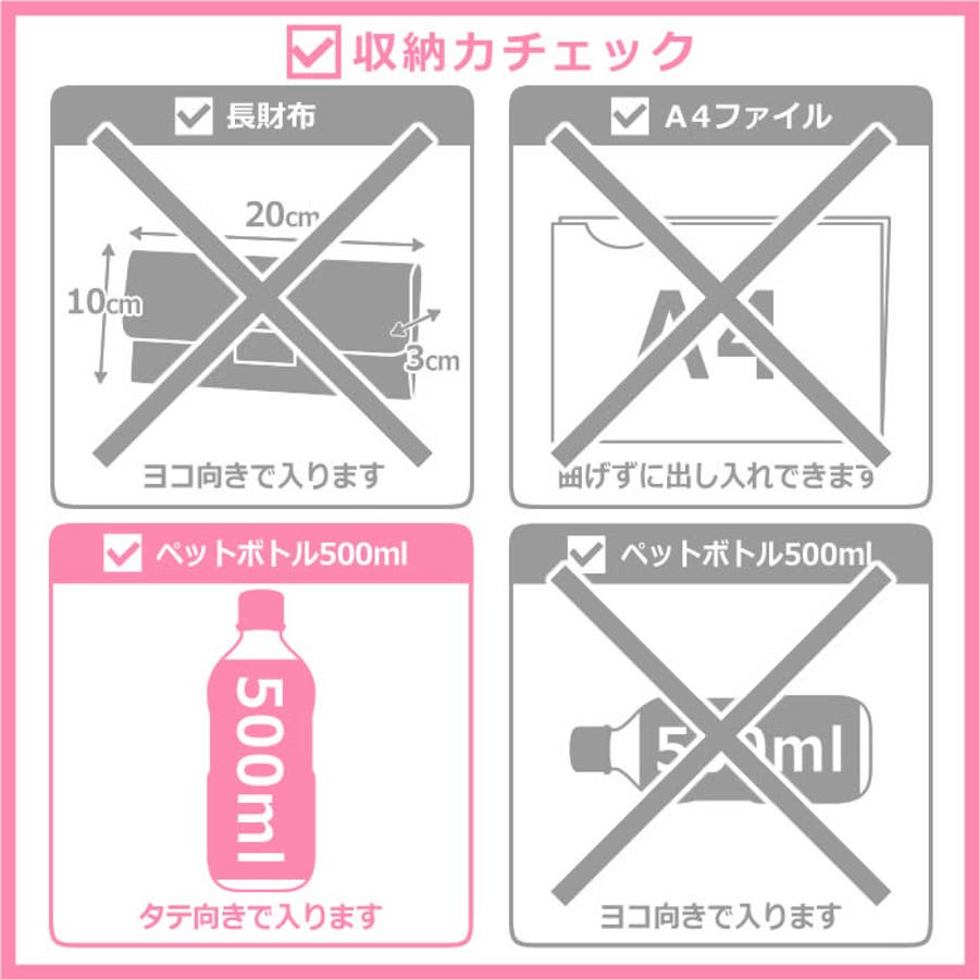 小さめだけど収納力有り!お財布やポーチなどしっかりと入るのが特徴です。