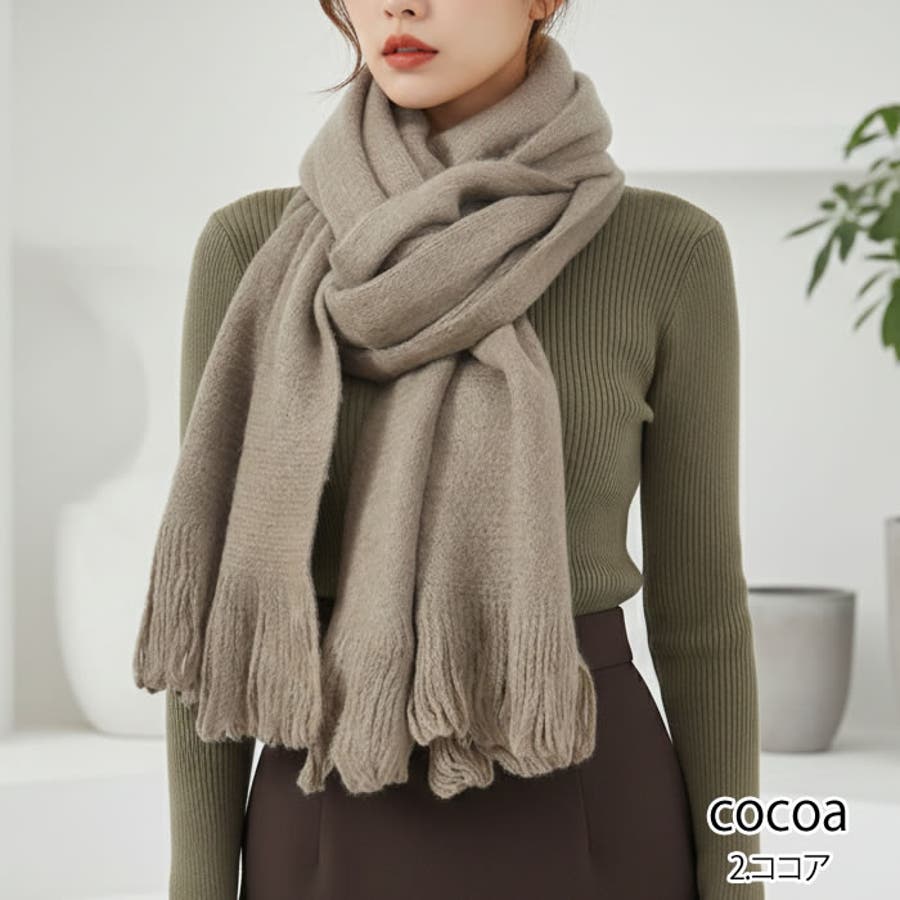 巻くだけではなく、アウターの上から羽織るだけでもとっても暖か。