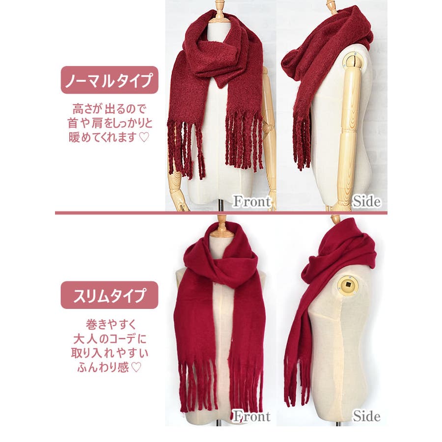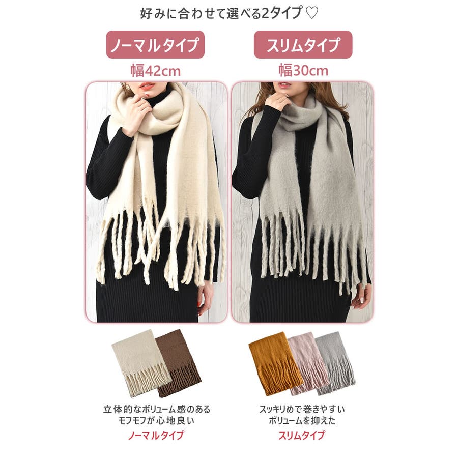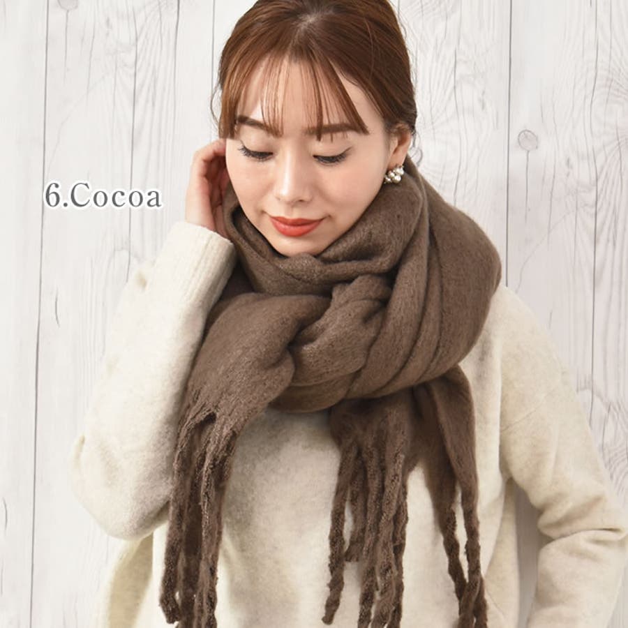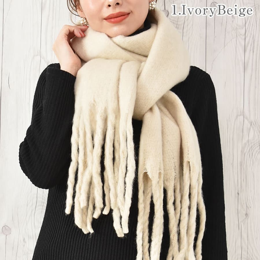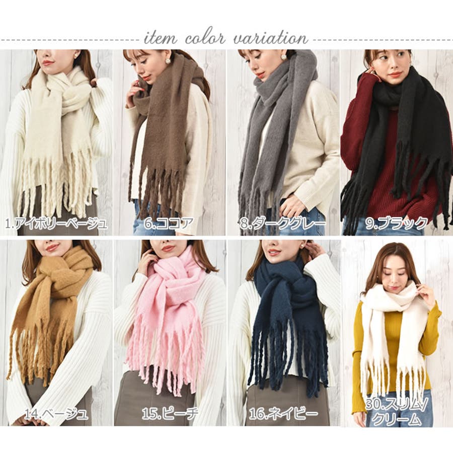 もこもこな素材感に大き目フリンジが可愛いボリュームストール。
