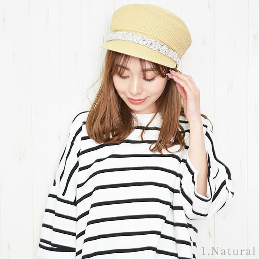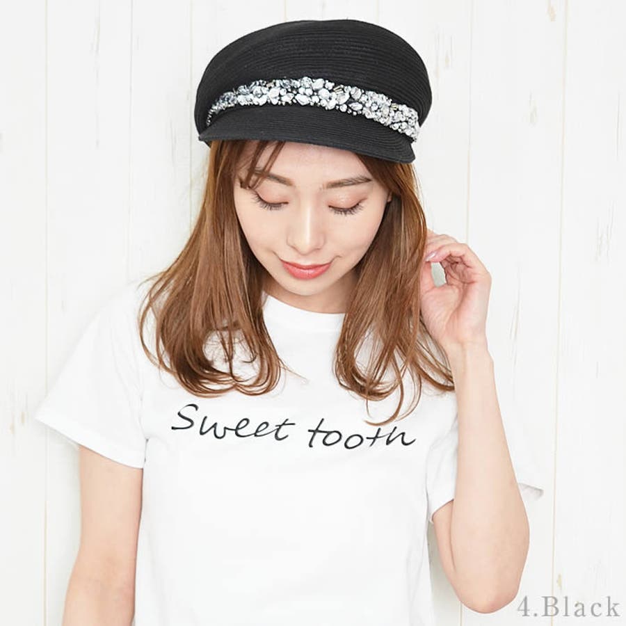 フェミニンで高級感あるビジューつきのペーパーキャスケットです。