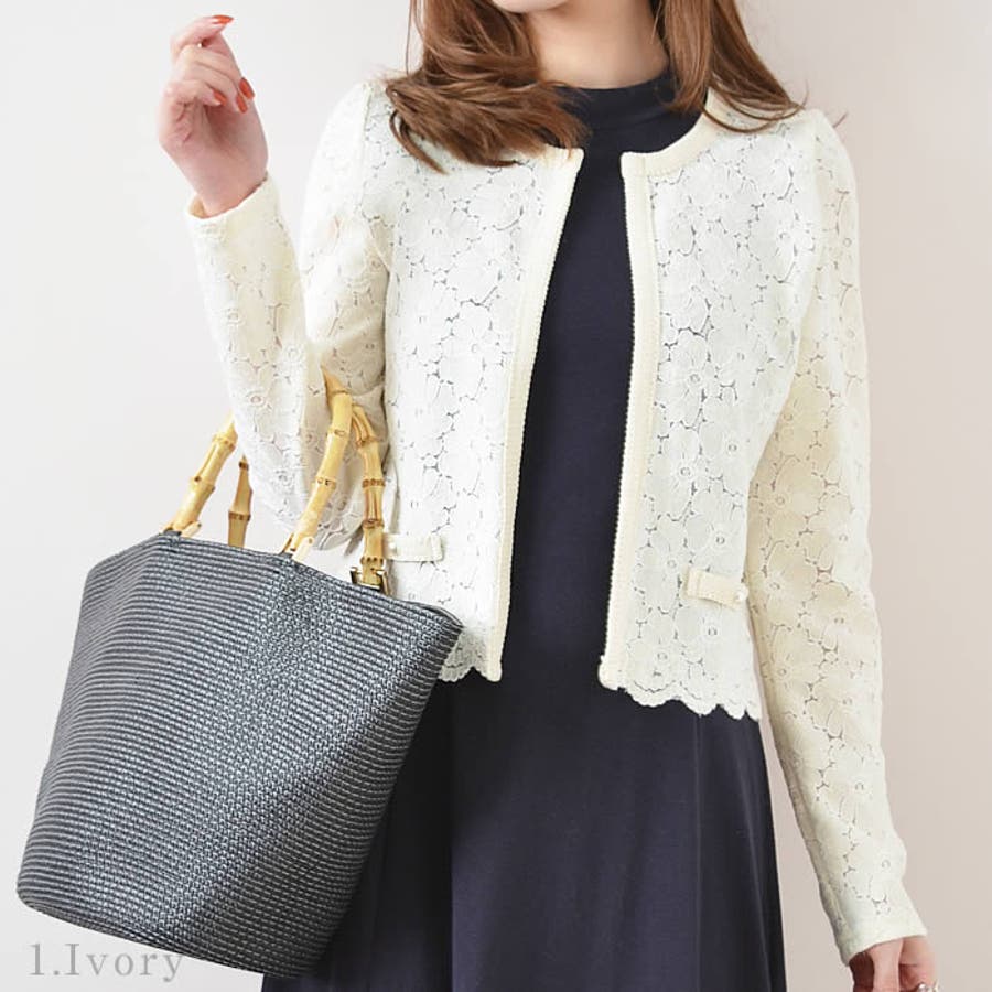 全面にあしらわれたエレガントで柔らかなレースが美しい、長袖カーディガンです。
