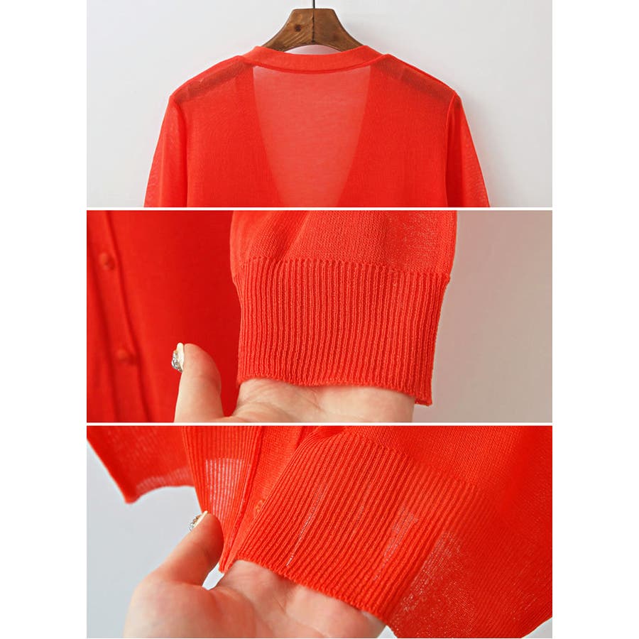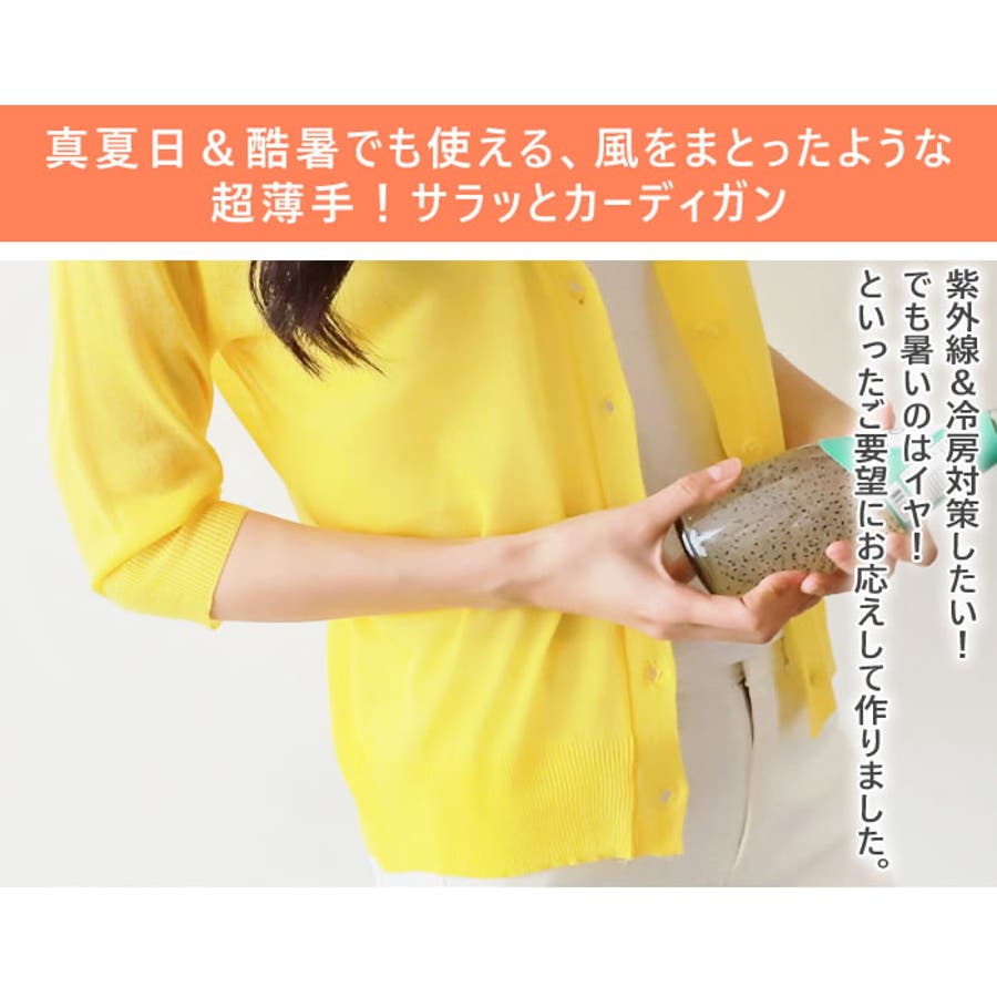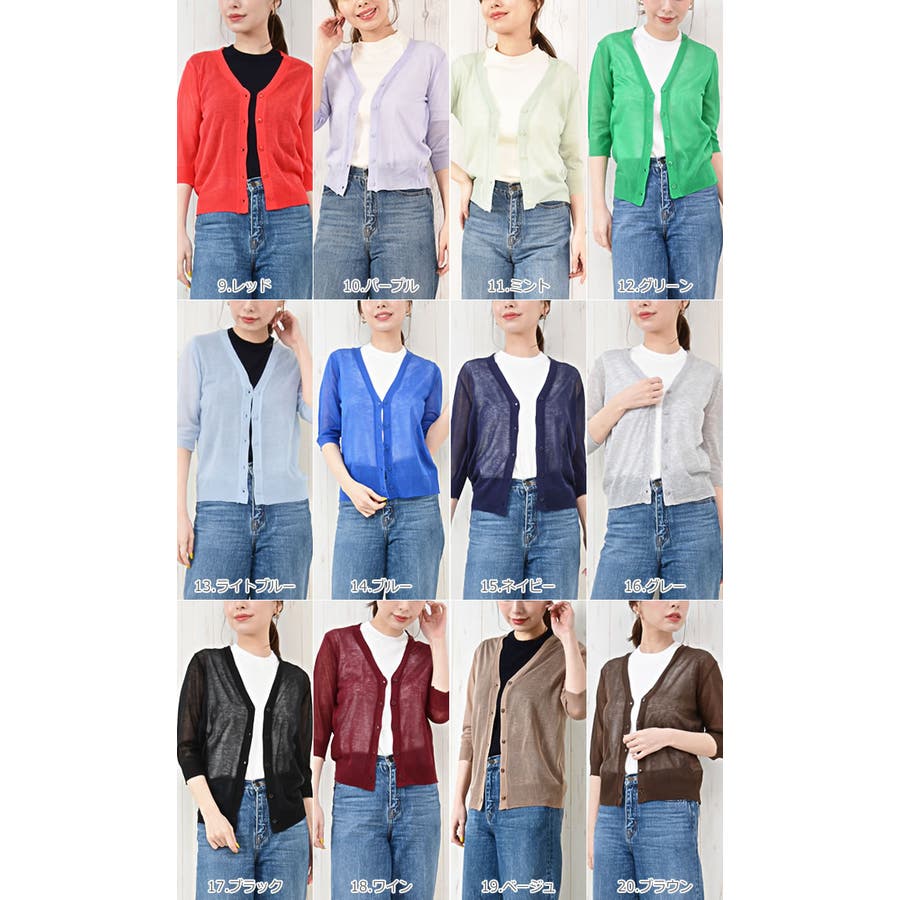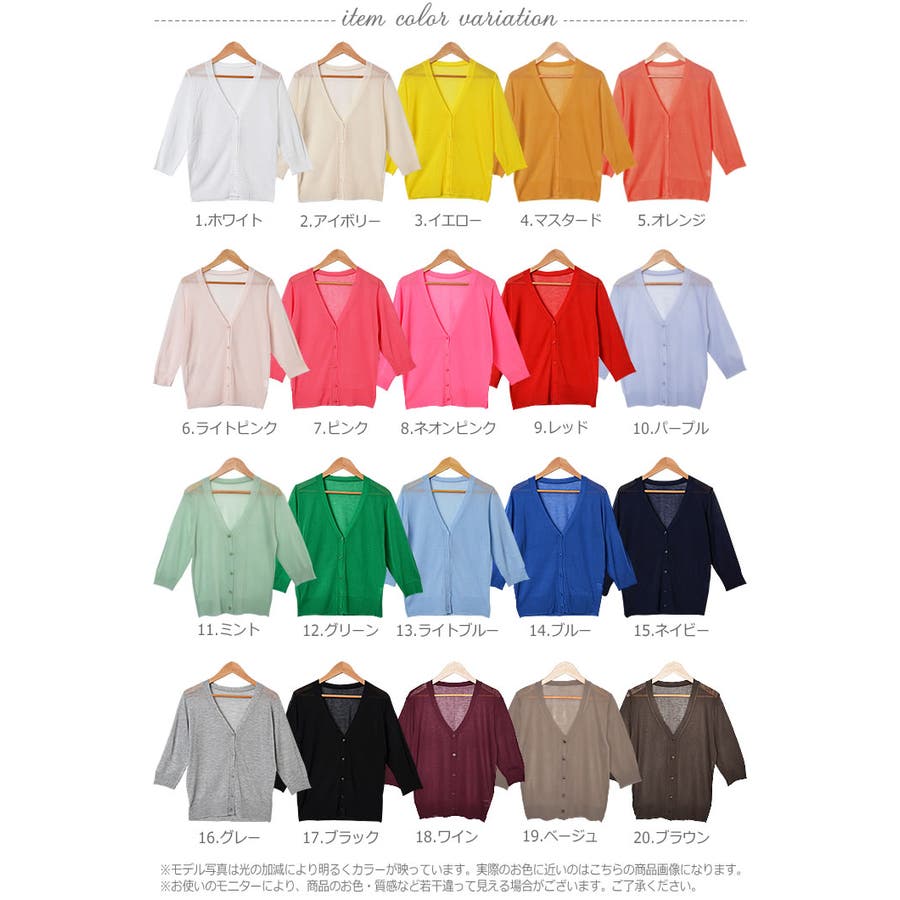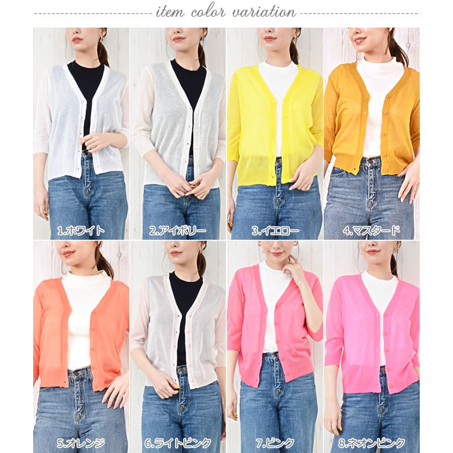 投稿日:2020.09.01購入しました。いろいろ合わせやすいので、良かったです。夏はキャミソール系を着る事が多く、でも、上に羽織ると暑いので、これくらい薄いものを捜していました。