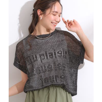 ラメと綿タッチの糸をメッシュ編みにしたニット。