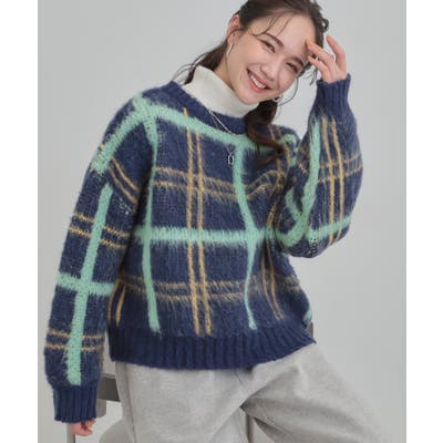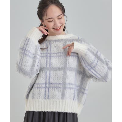 【S-LL】女性らしさ漂う ふわふわチェック柄ニット