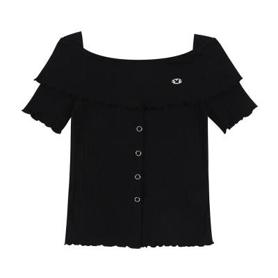 韓国ブランド 韓国ファッション 半袖tシャツ ティーシャツ 半袖 レディース トップス オフショルダー オフショル 肩出し肌だし フロントボタン 羽織り グランジ カジュアル 服 Y2K 正規品 ラグランスリーブ ラグランTシャツ ロゴ レディース 黒 ブラック ベージュ ブロークコア ブロケットコア グランジ系 グランジファッション 韓国系 地雷系 サブカル系 ピープス系 Y2Kファッション オルチャン 地下アイドル メン地下 韓スト 韓流 KPOP アイドル K-POP