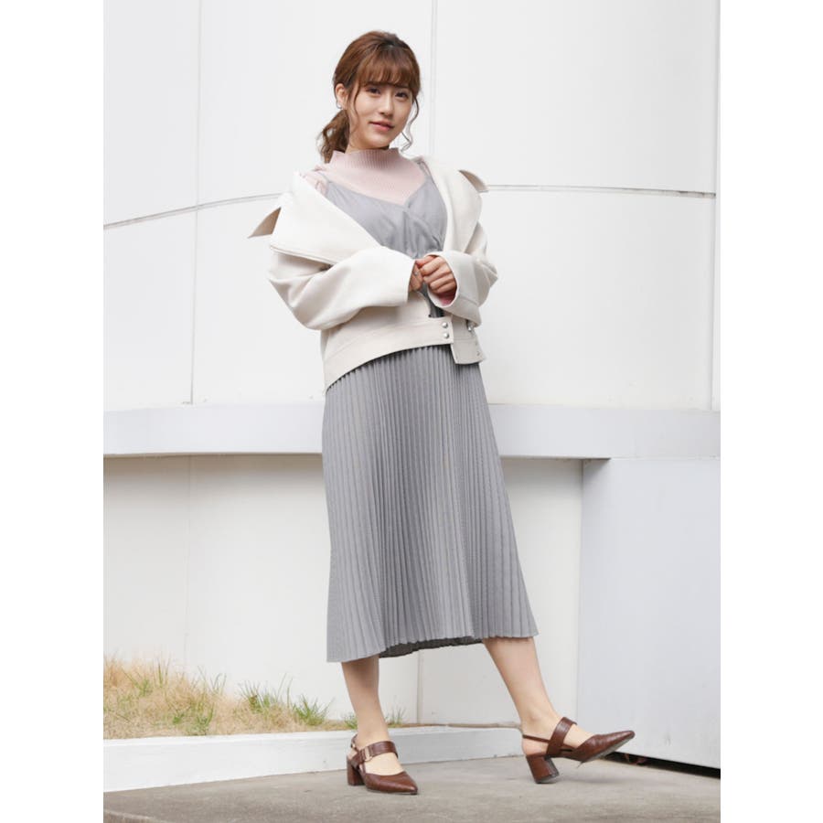 プリーツですがニット素材なのでストンとしたシルエットに。キャミOPでカジュアルになりがちな印象も落ち感を出す事で上品清楚の要素を取り入れました。【スタイリングコメント】レースアイテムを合わせるとクラシカルでシックなイメージに。Tシャツで合わせて更にシャツやマウンテンパーカーをサラリと羽織ると一気に抜け感が出て子供っぽいイメージが払拭されます。