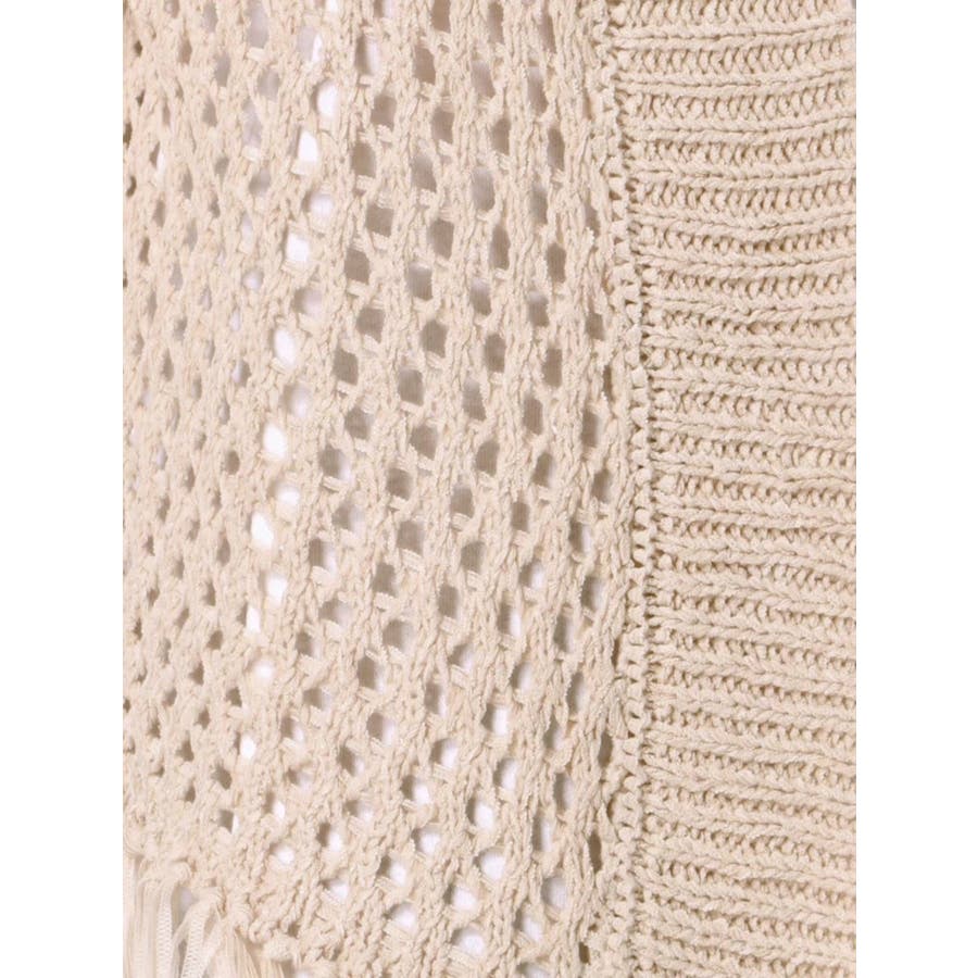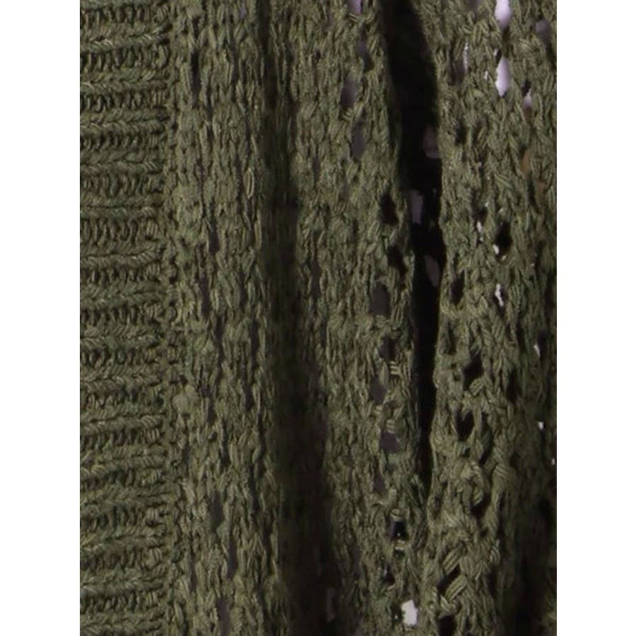 注目トレンドのフリンジを裾に施したざっくりとしたカーディガン。さっと羽織るだけでこなれ感が出て、普段のファッションが今年らしい新鮮なムードを演出します。ビスチェやノースリーブに合わせると肌が透けてヘルシーなサマースタイルを楽しめます。