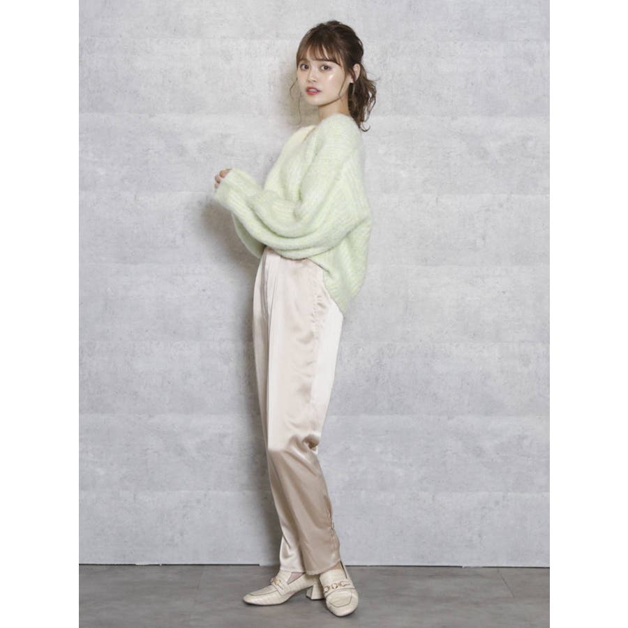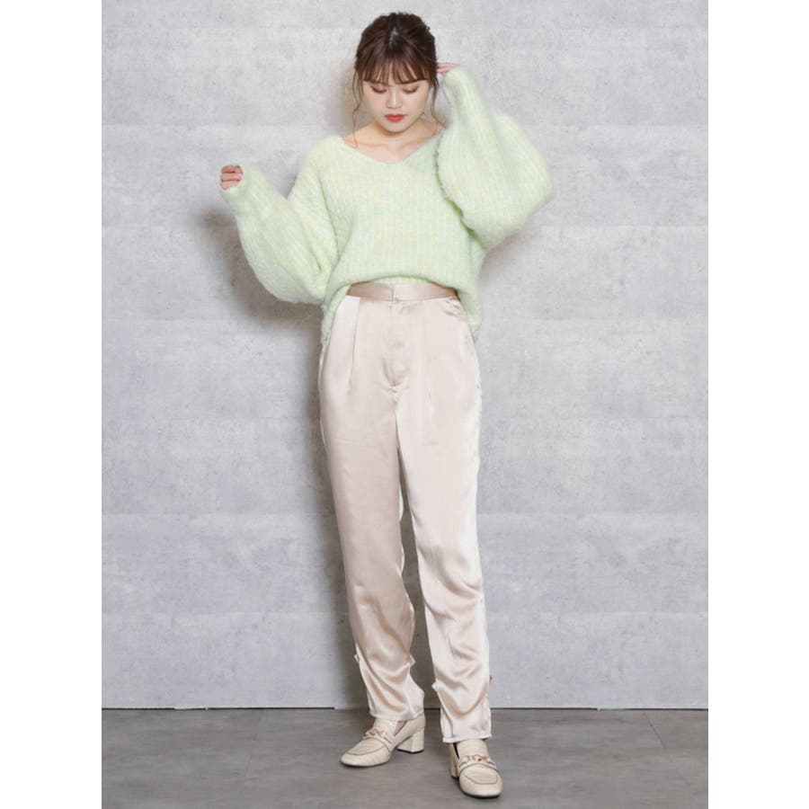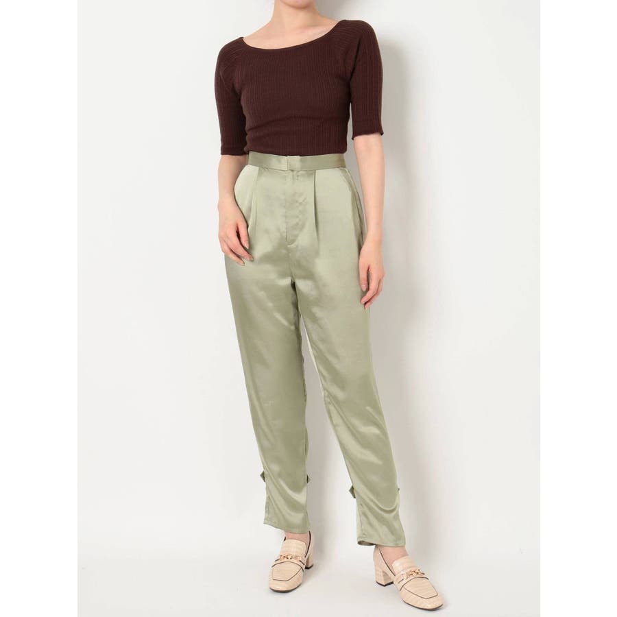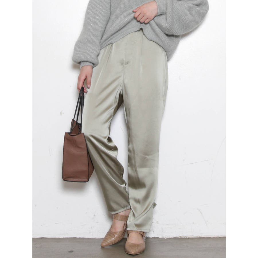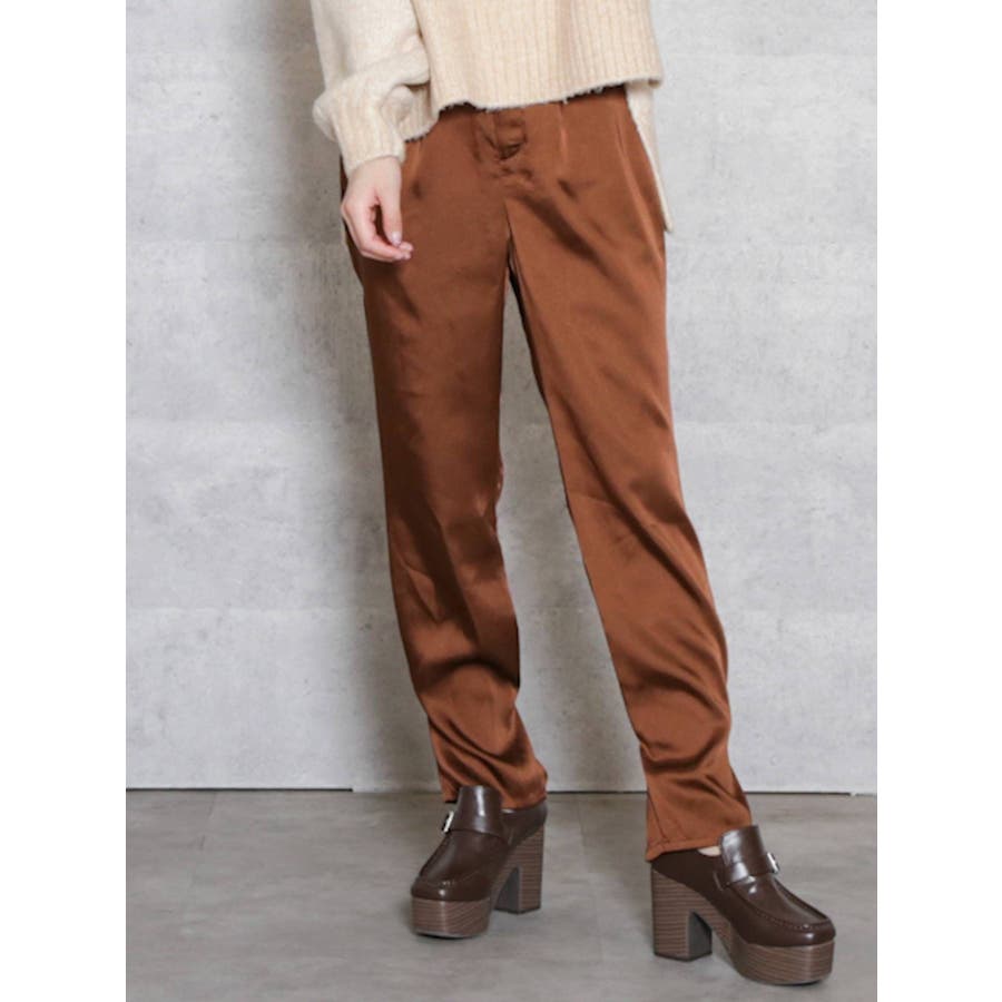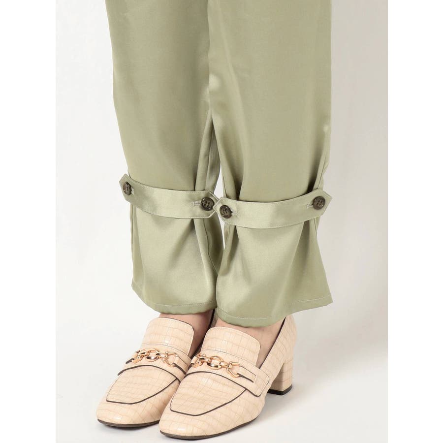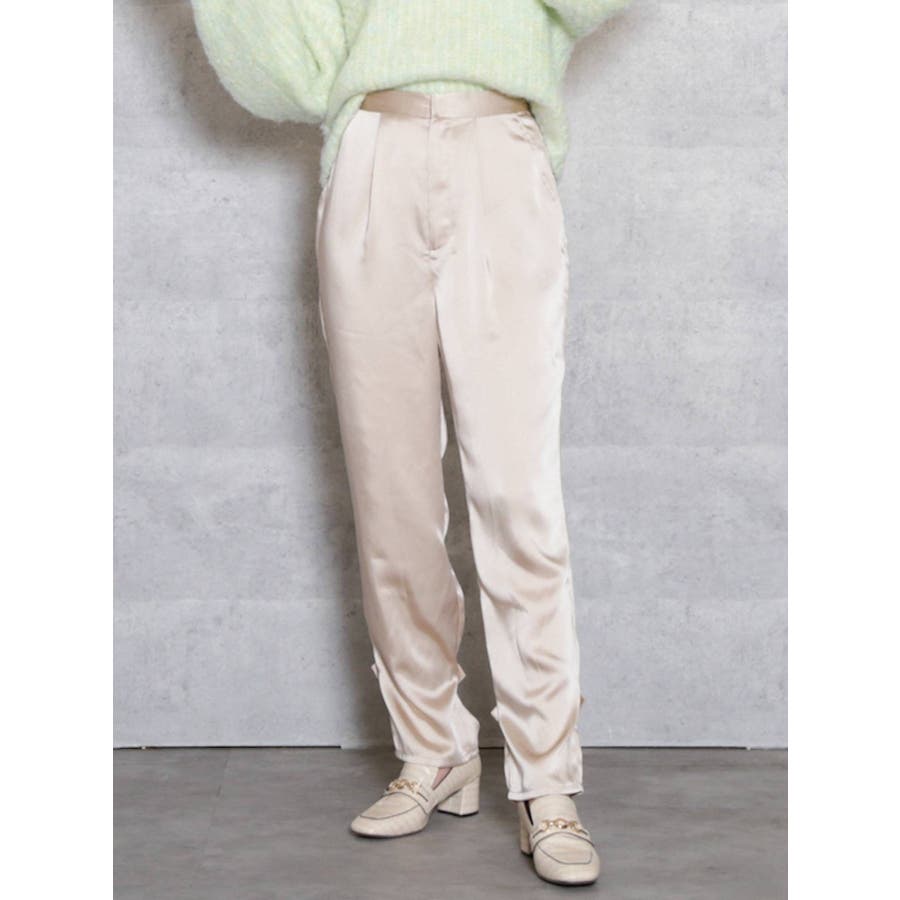サテンストレートボタンパンツ