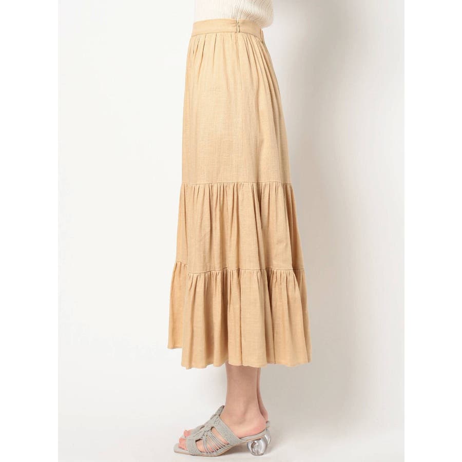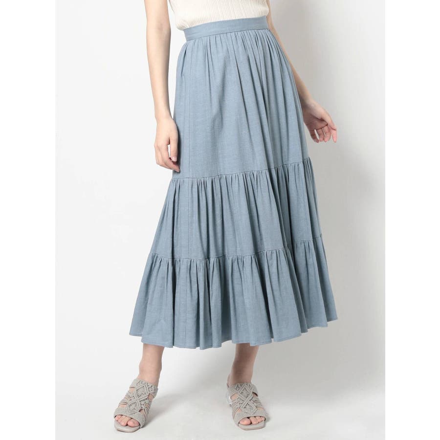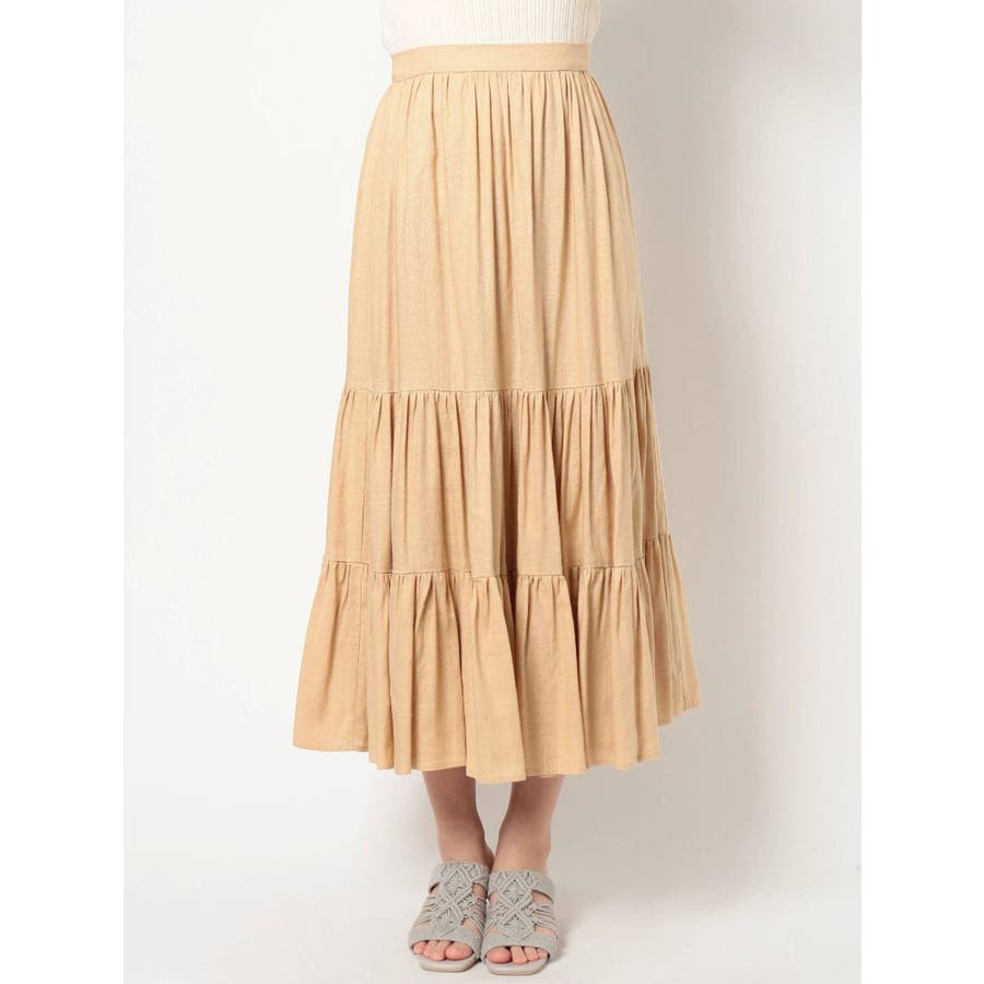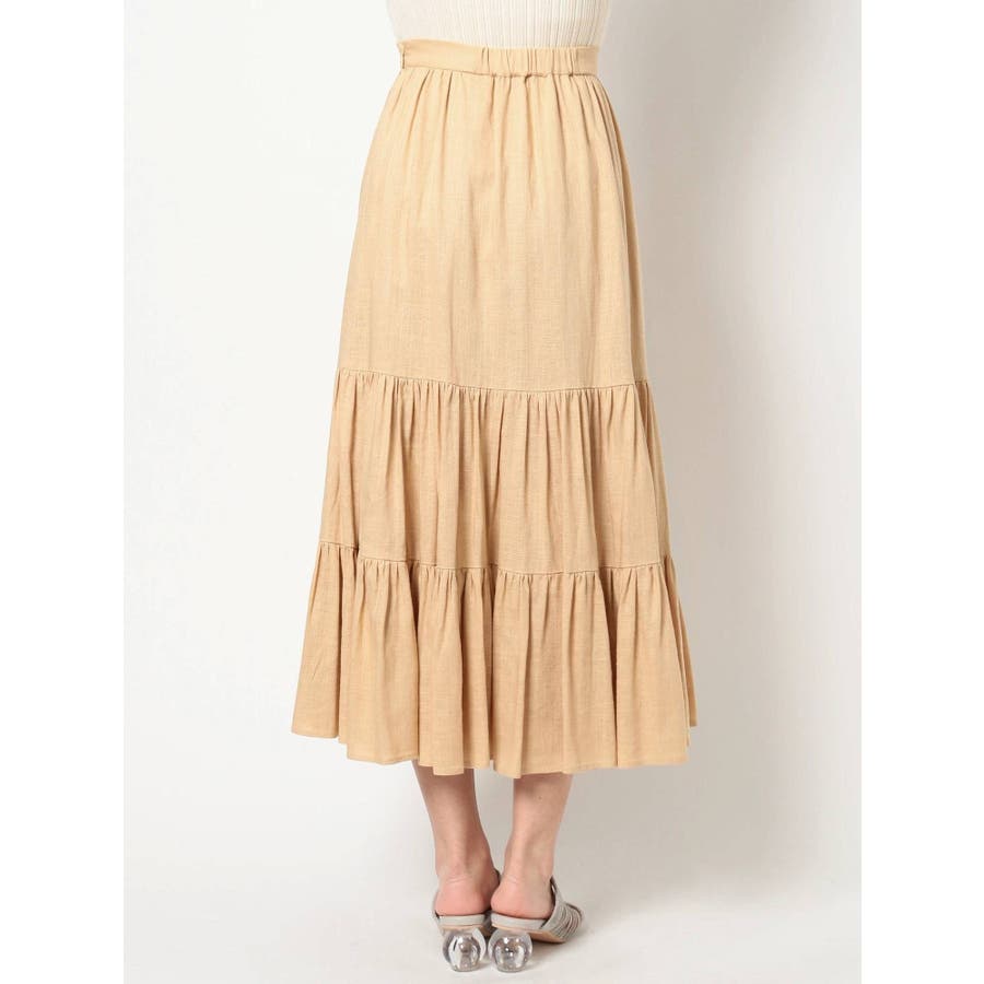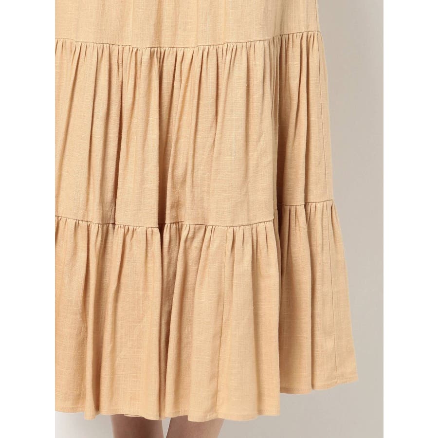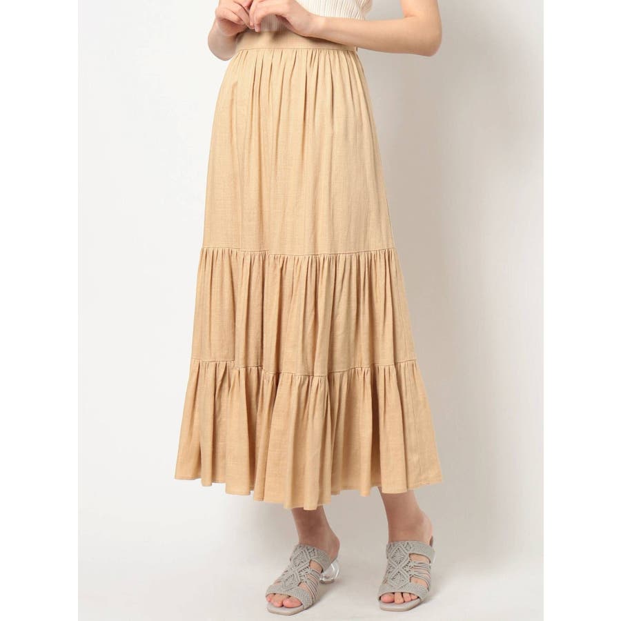 【商品】リネン混の生地を使い、カジュアルな表面感に仕上げて、ティアードを盛り込んでスイートな要素を閉じ込めました。夏らしいエネルギッシュなカラーと素材で爽やかさを演出します。【スタイリング】カットソーと合わせて軽やかな合わせが可愛いです。ゆったりとしたトップスを合わせた空気感溢れるエフォートレスなスタイリングがオススメです。【商品特徴】透け感:ややあり伸縮性:なし生地の厚さ:薄手サイズ感:ゆったり裏地:あり