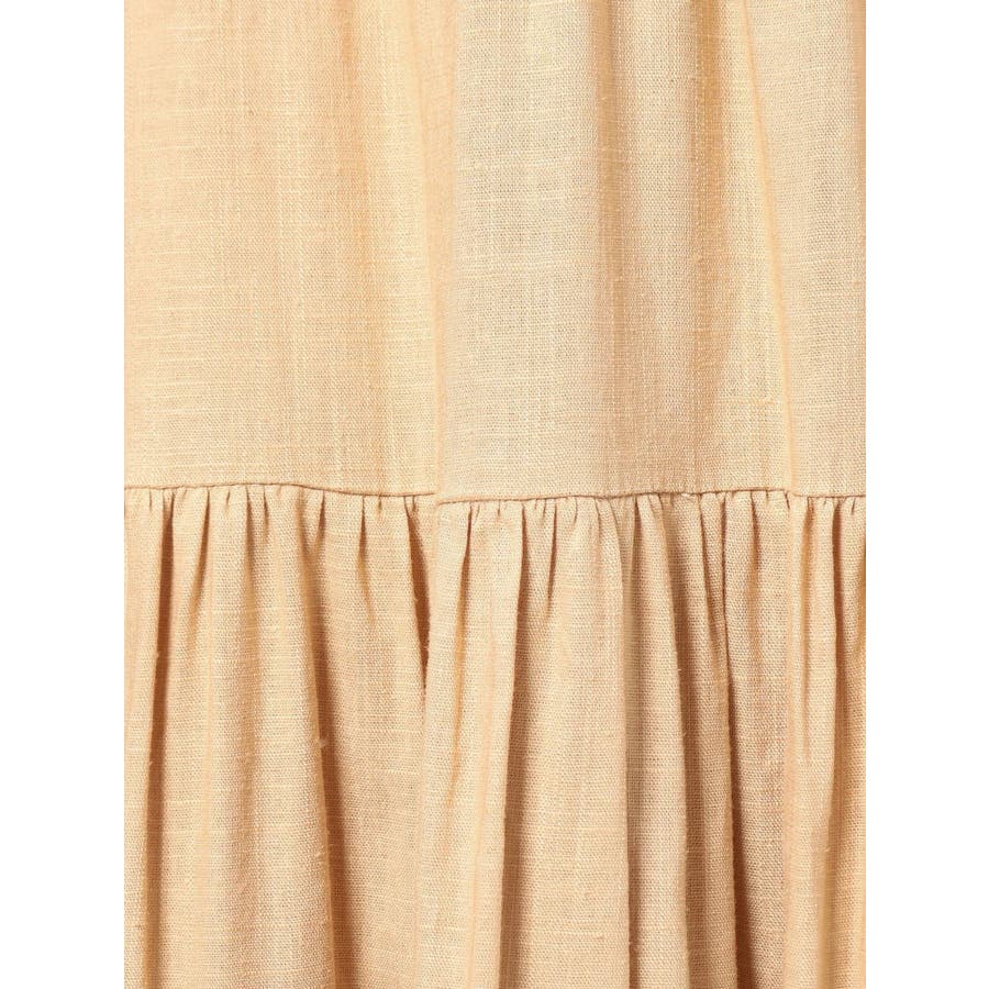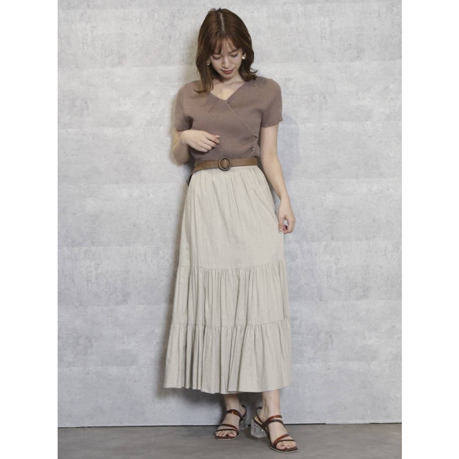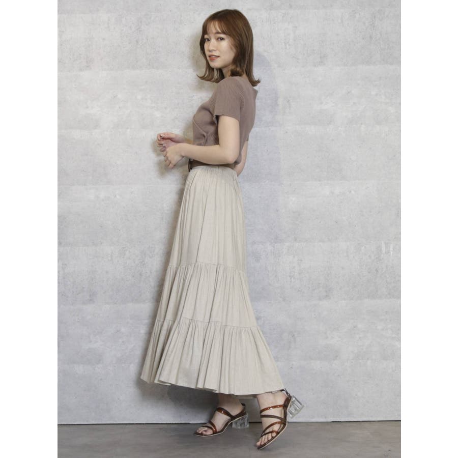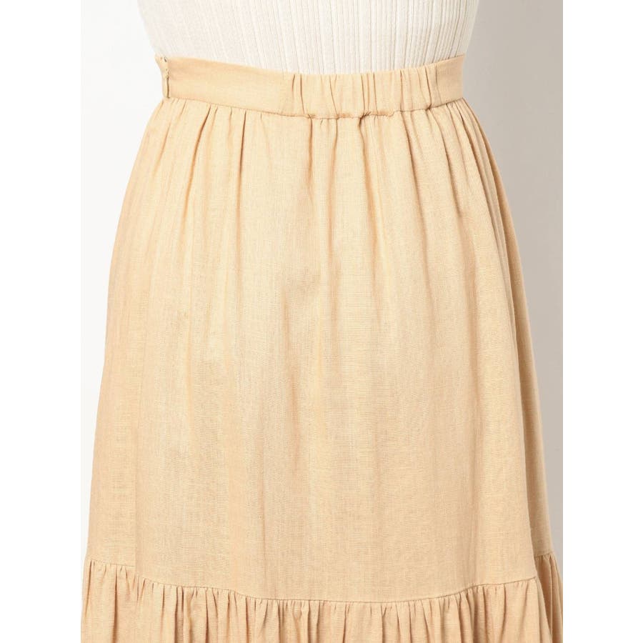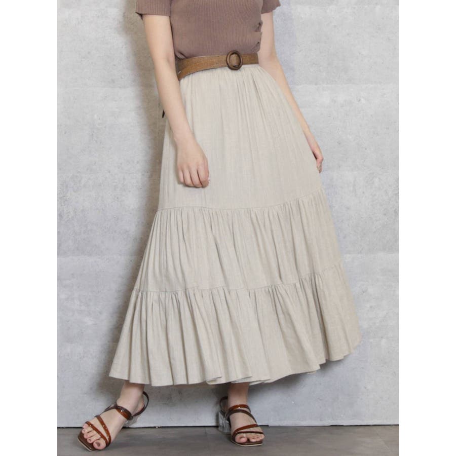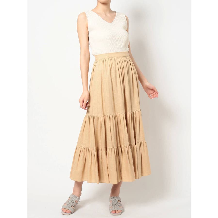 【商品】リネン混の生地を使い、カジュアルな表面感に仕上げて、ティアードを盛り込んでスイートな要素を閉じ込めました。夏らしいエネルギッシュなカラーと素材で爽やかさを演出します。【スタイリング】カットソーと合わせて軽やかな合わせが可愛いです。ゆったりとしたトップスを合わせた空気感溢れるエフォートレスなスタイリングがオススメです。【商品特徴】透け感:ややあり伸縮性:なし生地の厚さ:薄手サイズ感:ゆったり裏地:あり
