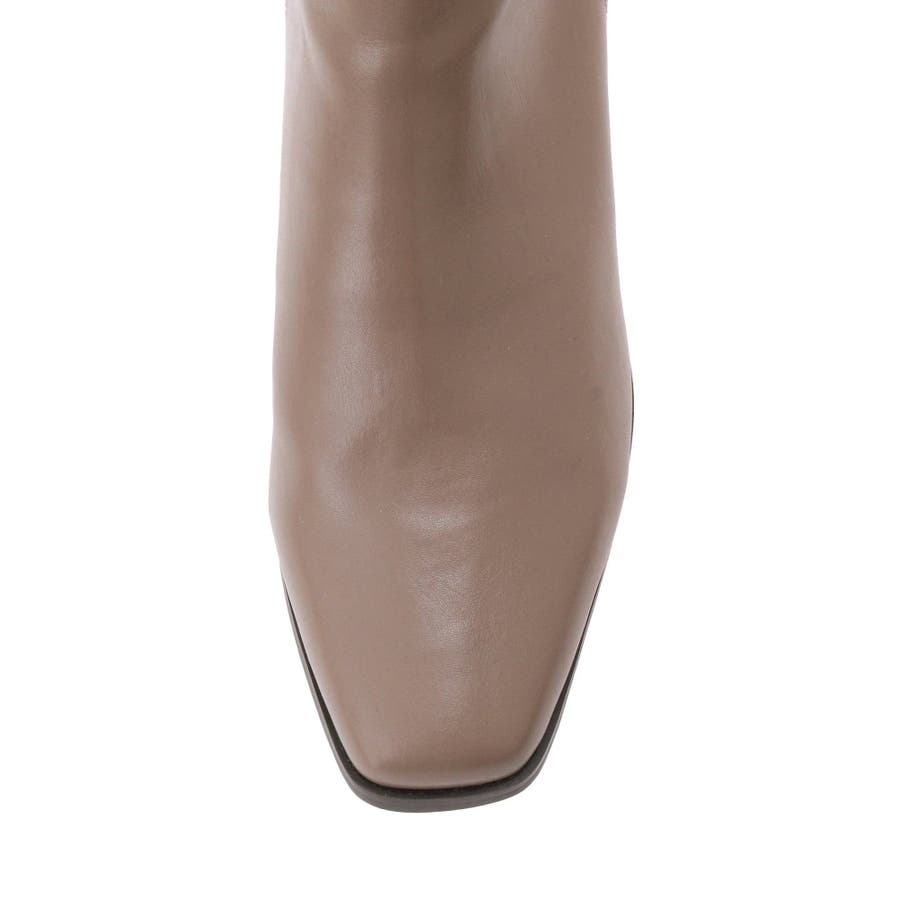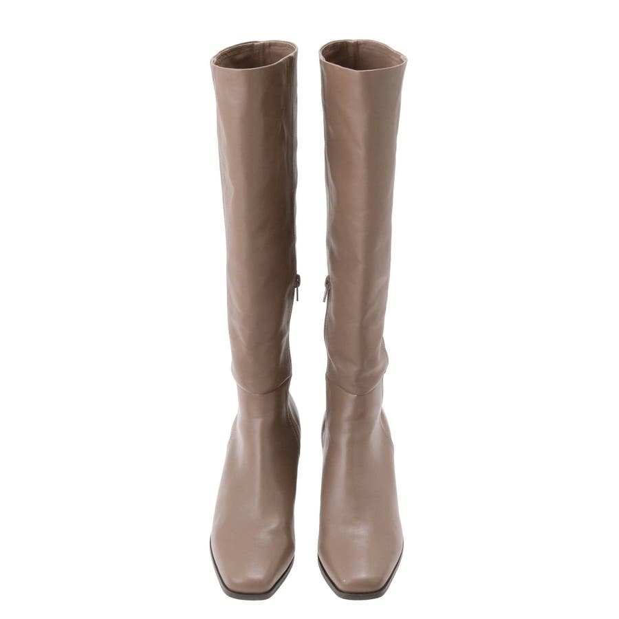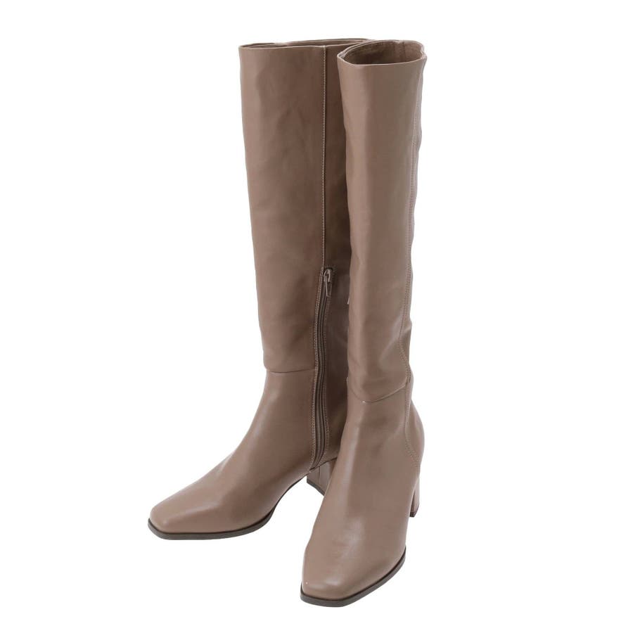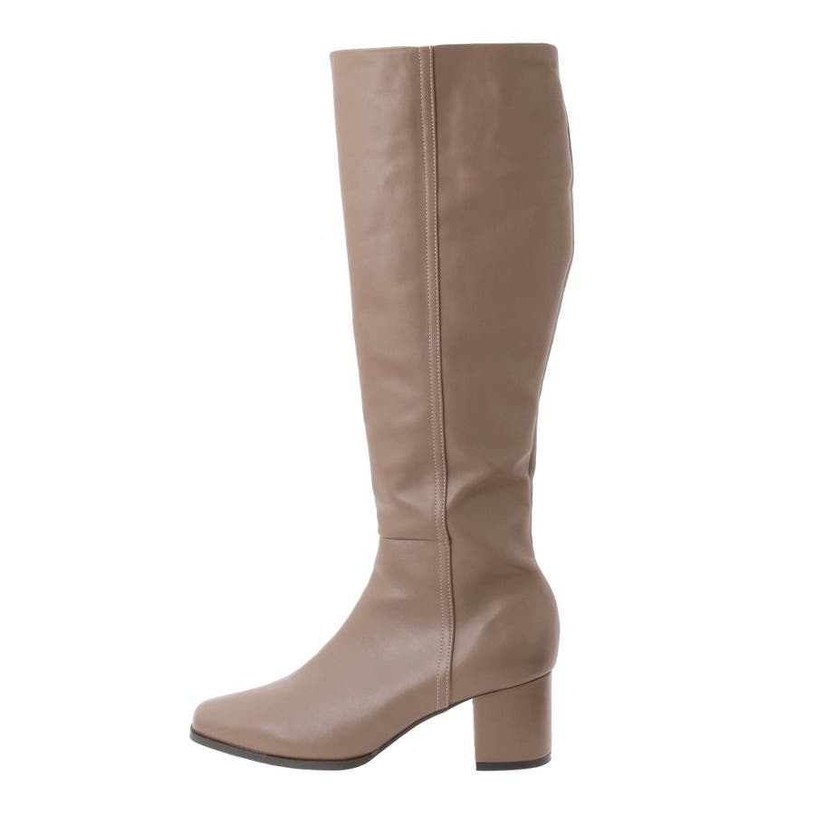 【商品】去年より少し長めの丈にする事で足長効果を促進。細身のシルエットに仕上げて、トレンドのミニアイテムとのスタイルを実現。スタイリングに万能なベーシックな合皮素材で足元を彩ります。