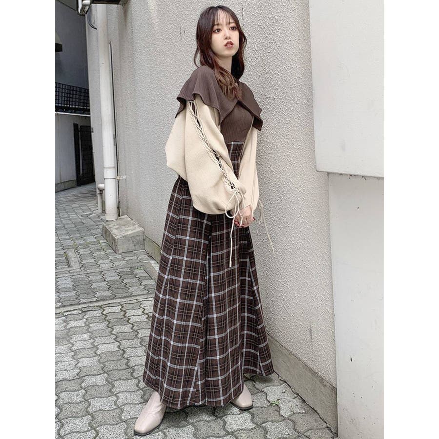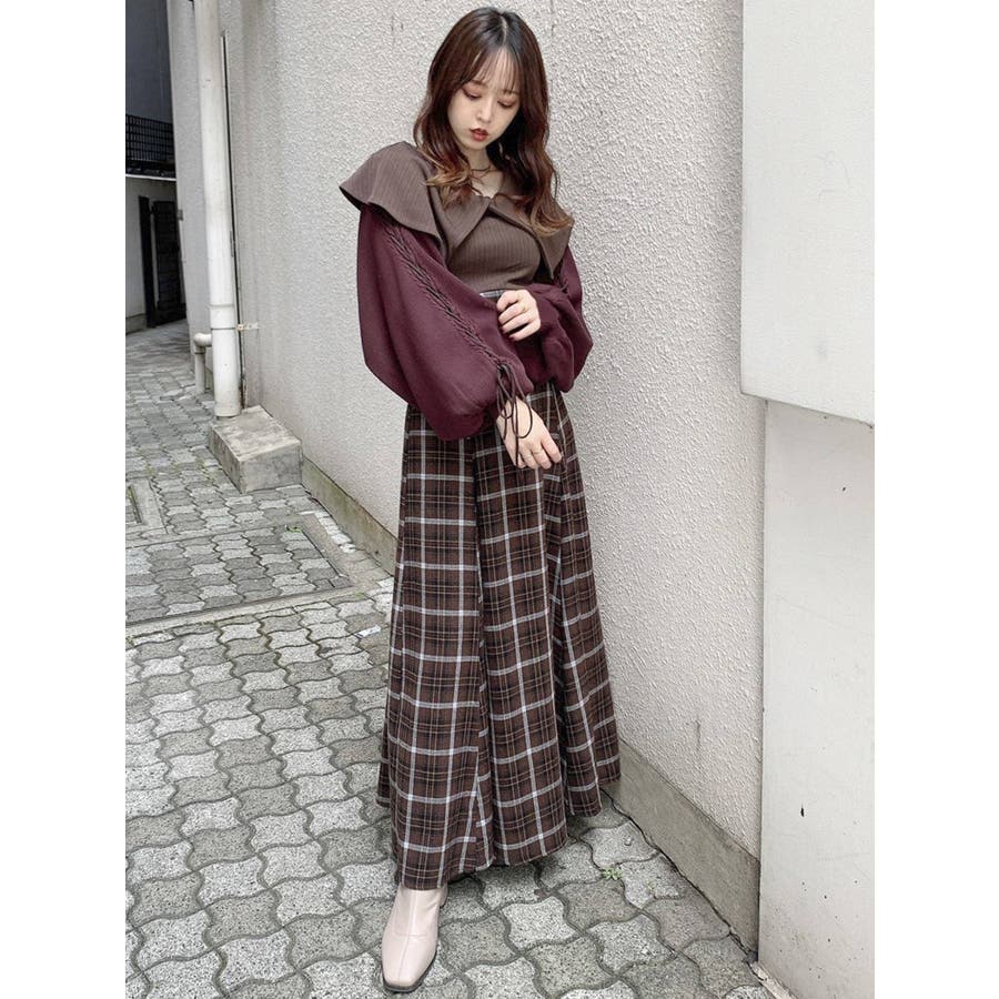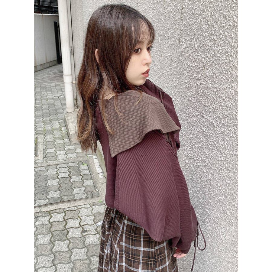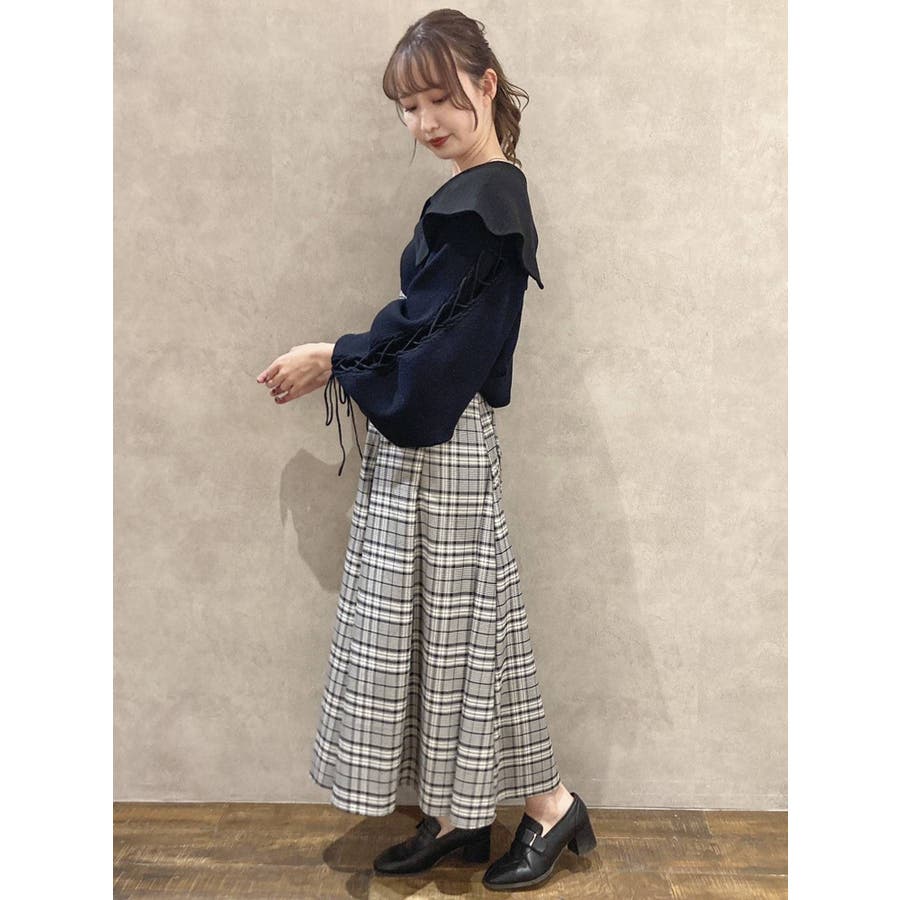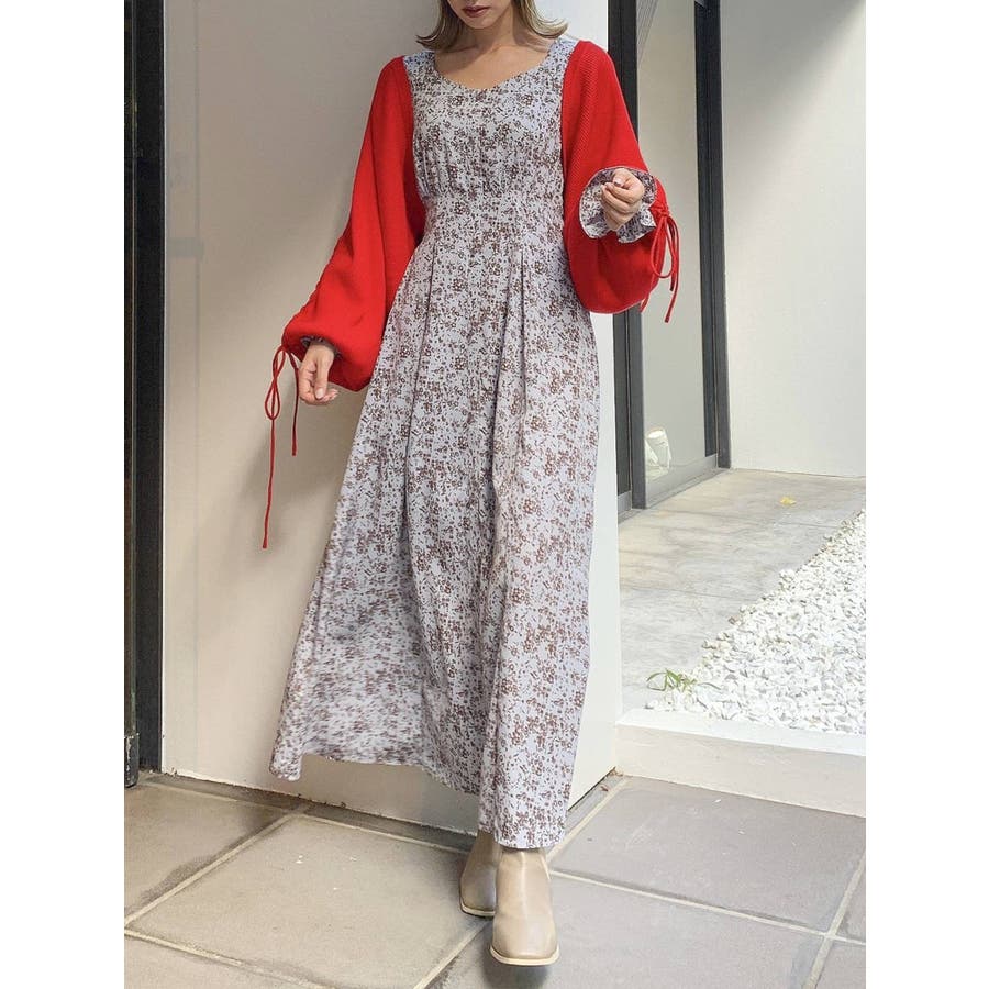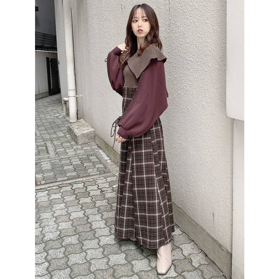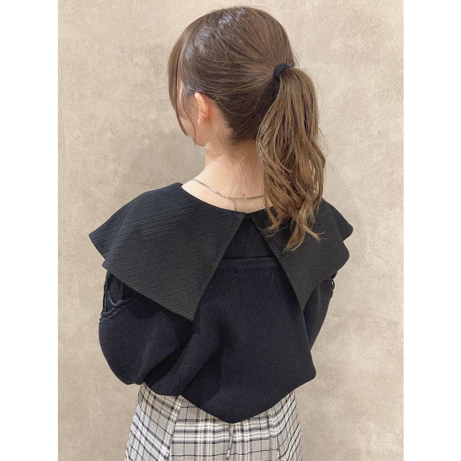 ボリューム感のあるたぷっと袖がガーリーなアイテム?腕全体にレースアップを入れ込んで抜け感を出しました。ショート丈でスタイルアップを演出します。さらっとした糸でキレイ目な印象に。【スタイリング】シャツワンピースなどに合わせてコーデに使っても可愛いです。ブラウスアイテムなども簡単に温かみを待たせてくれるのでおすすめです。