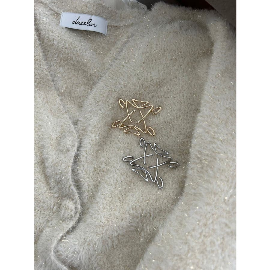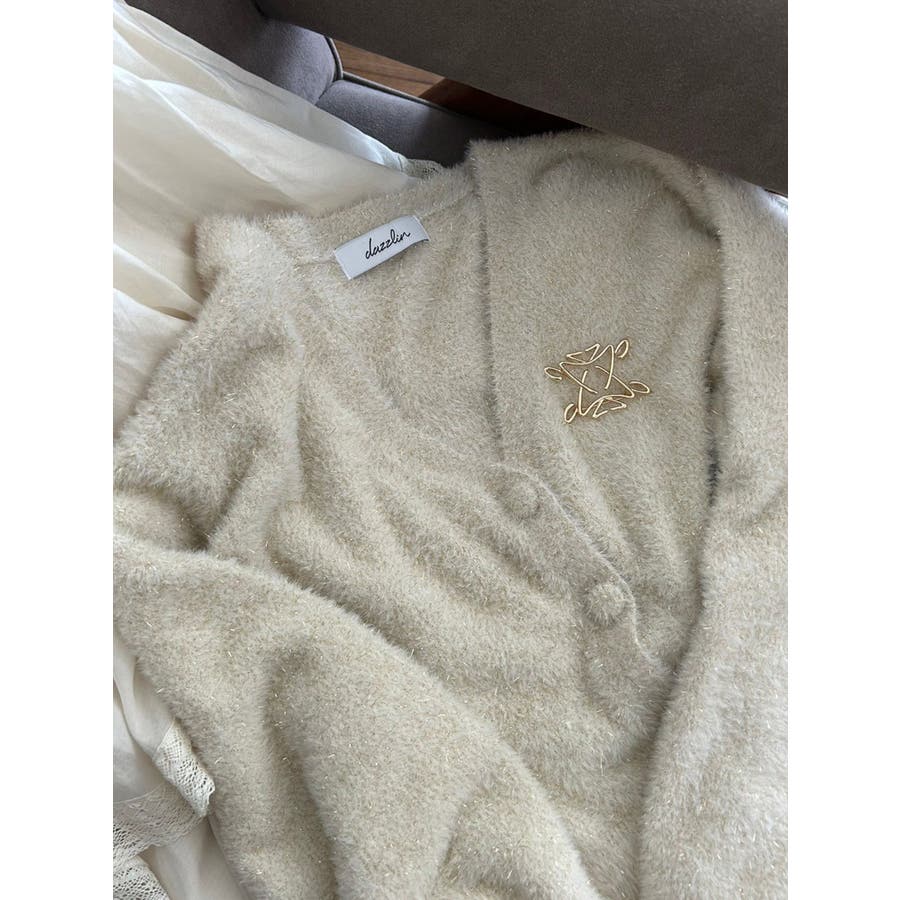 小栗有以さん着用アイテム>>WEBマガジンはこちら<<【アイテム】 dazzlin(ダズリン)オリジナルロゴのブローチです。大きさもありインパクトを感じられるアイテムになります。シンプルなアイテムにワンアクセントを加えてクラシカルな印象に。【スタイリング】シャギー類との組み合わせが特によく高級感高まるスタイリングに。秋冬はジャケットやコートに合わせるのがオススメです。春夏はTシャツやキャップなどに合わせるのがオススメです。 ▼気になるアイテムはお気に入り登録がおすすめ 入荷情報やラスト1点、お得なプライスダウンの情報をいち早くお届け! ぜひご登録ください◎ ※実際にお届けする商品と仕様やサイズが異なる場合がございます。 また生産の都合上、お届け時期が前後する場合がございます。