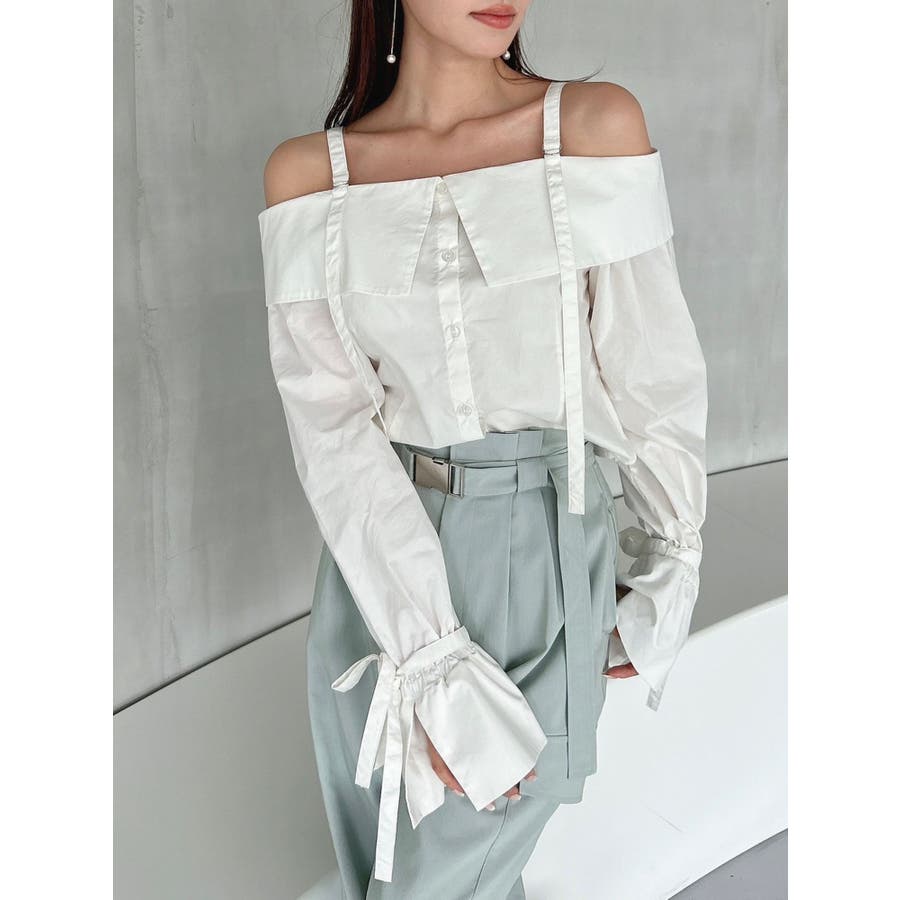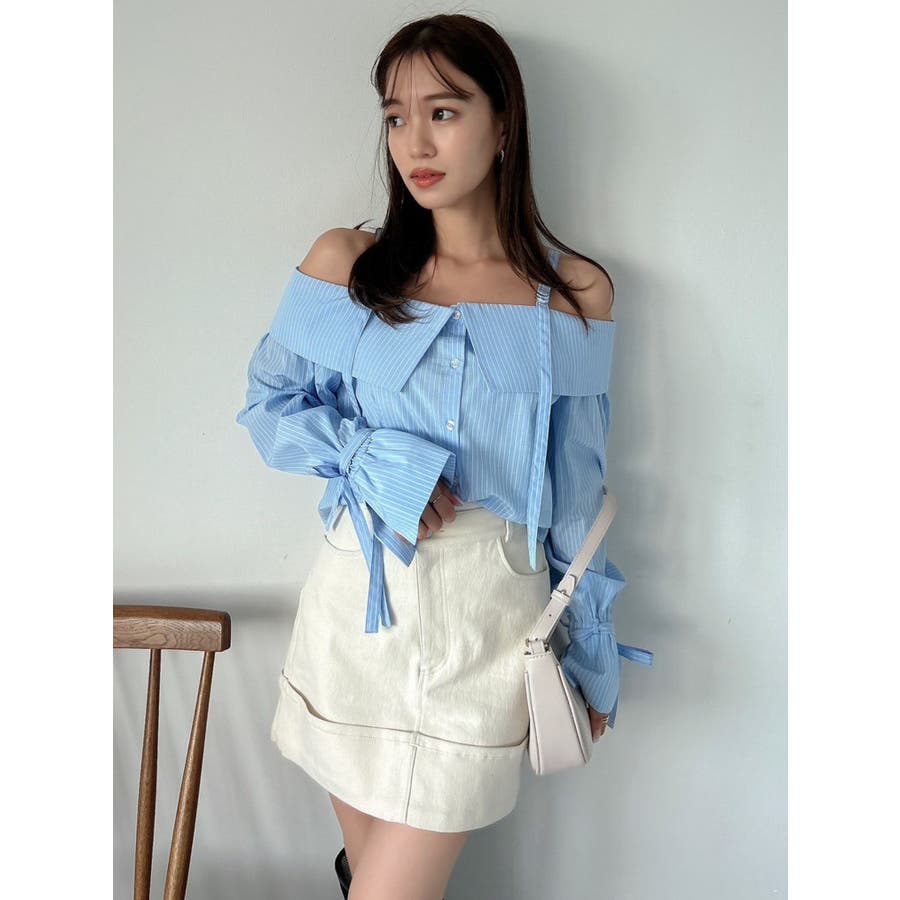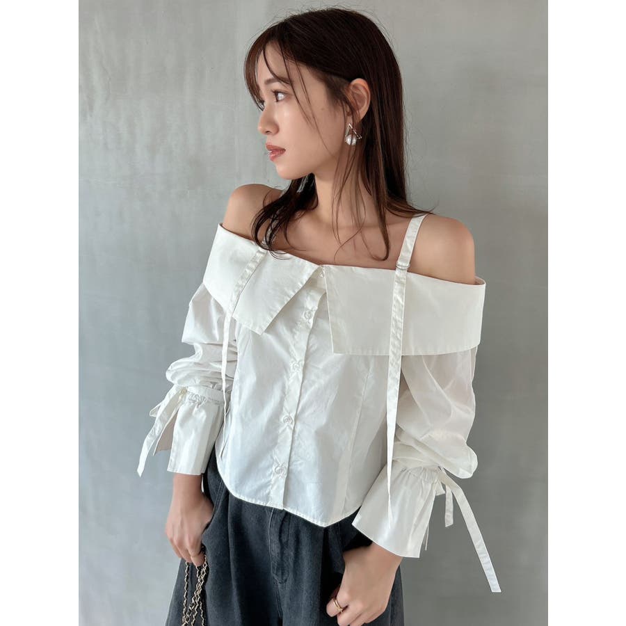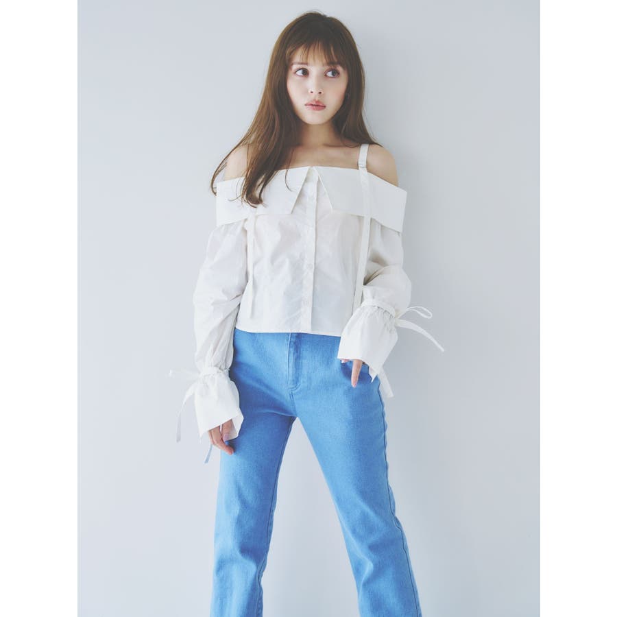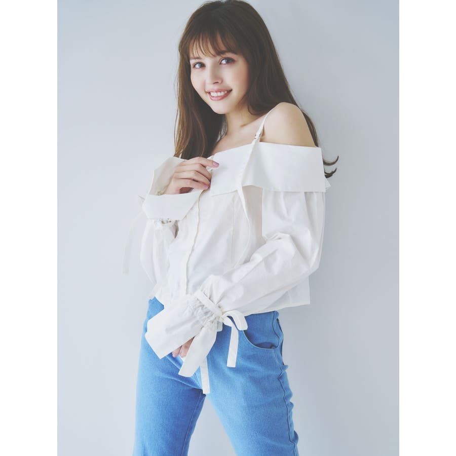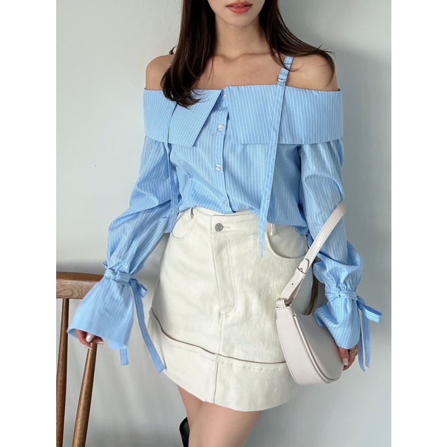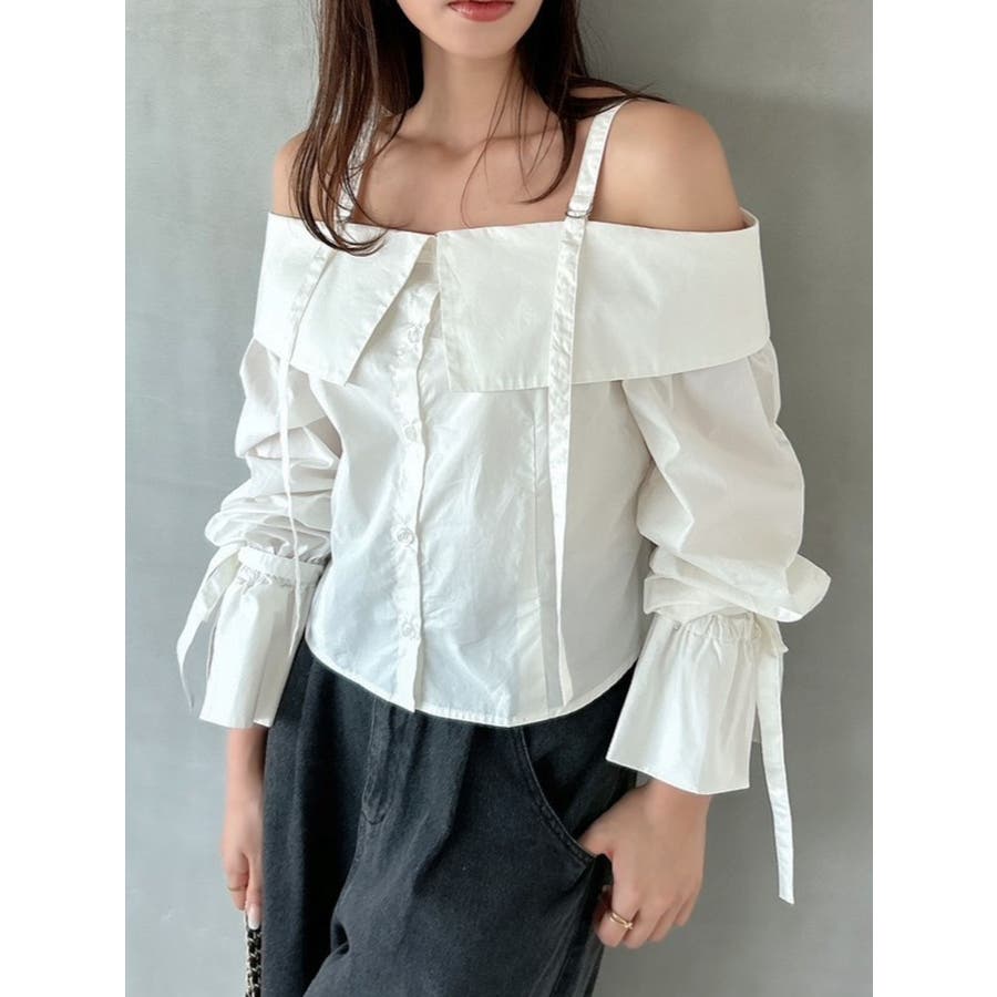 キャンディースリーブオフショルシャツブラウス