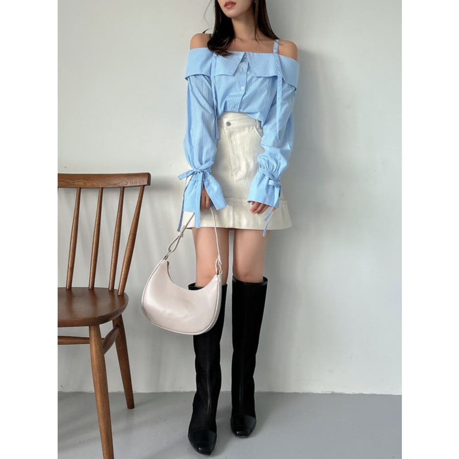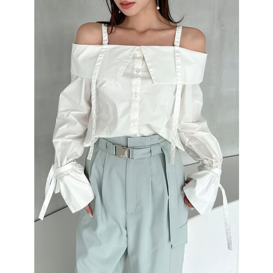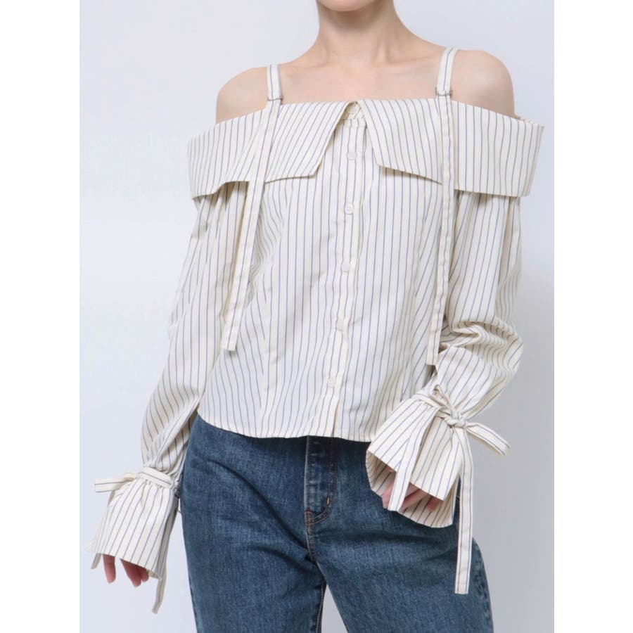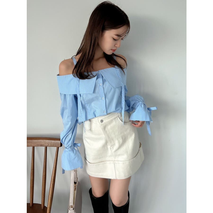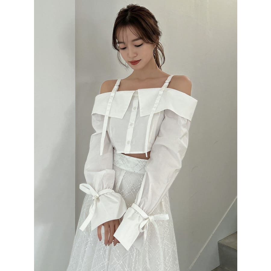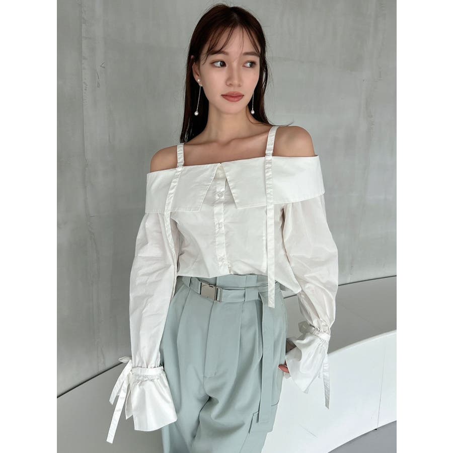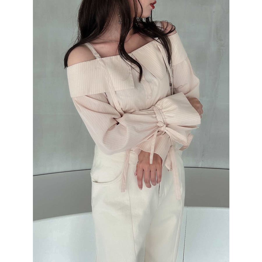 キャンディースリーブオフショルシャツブラウス