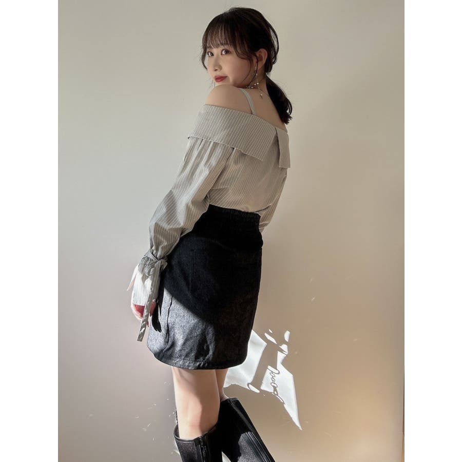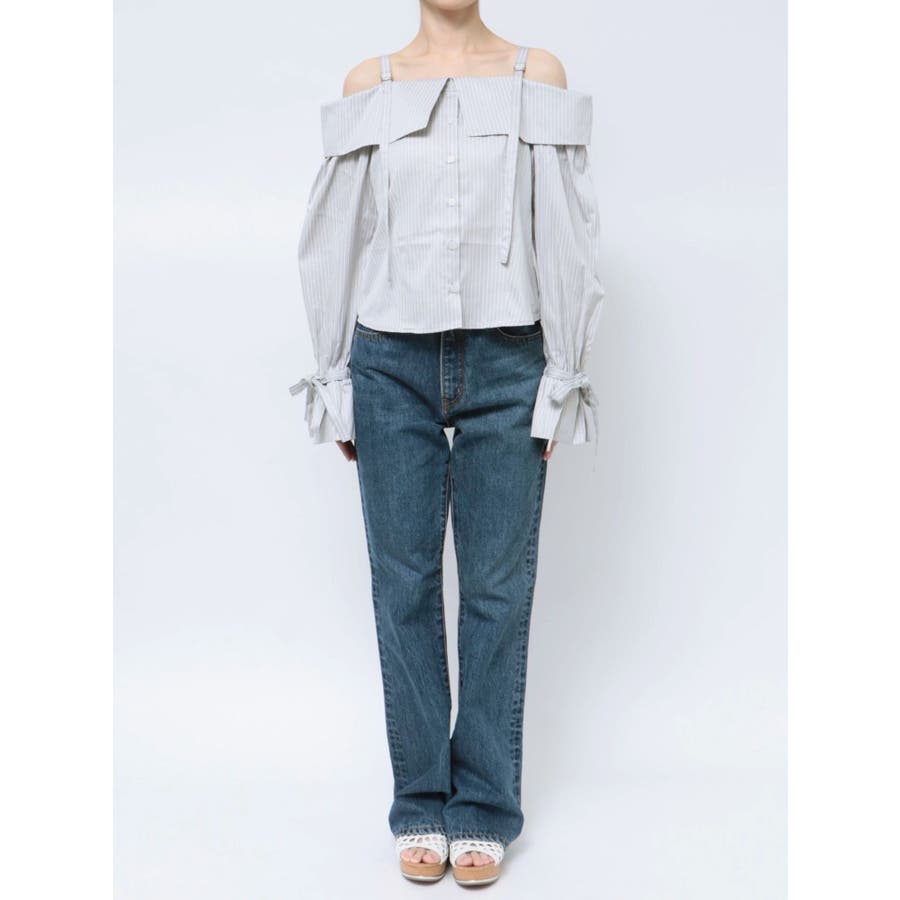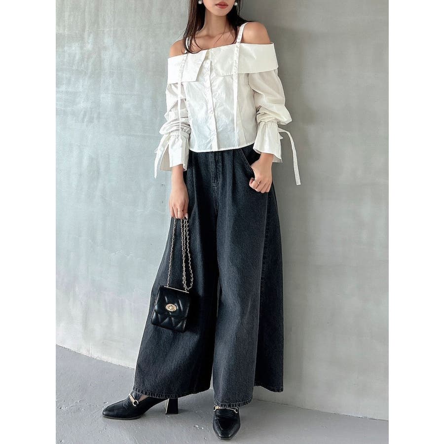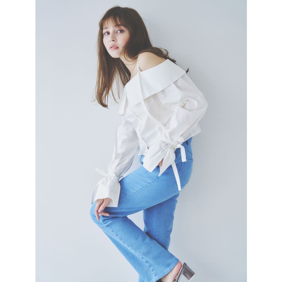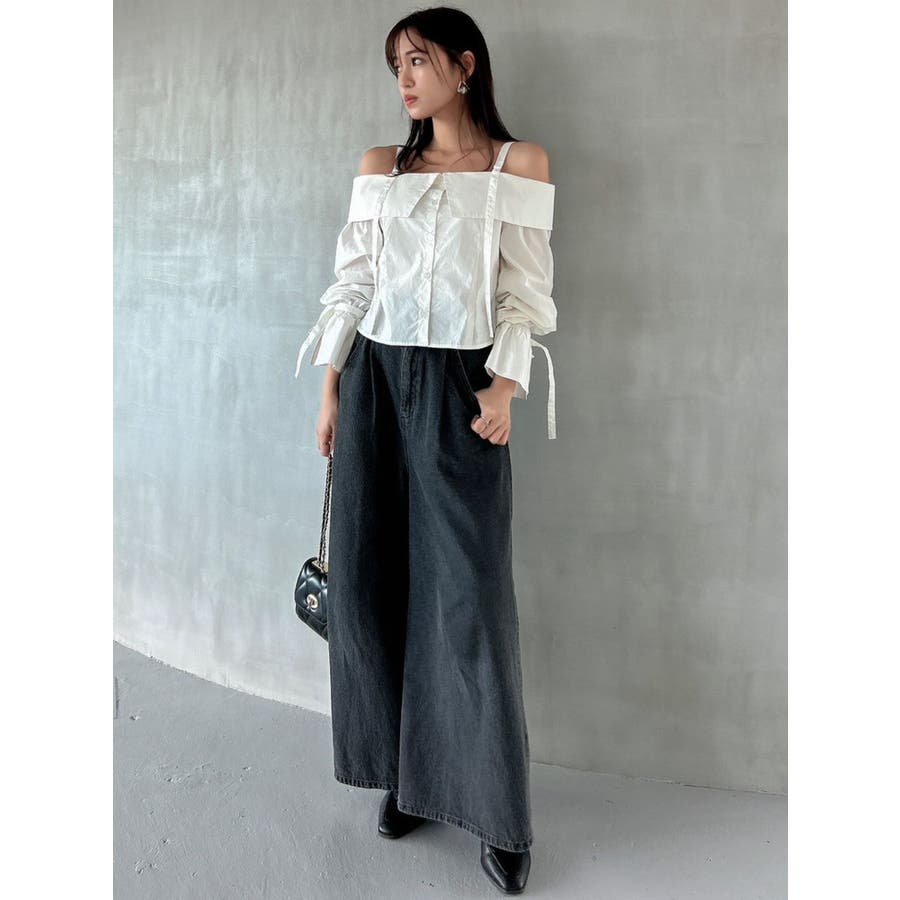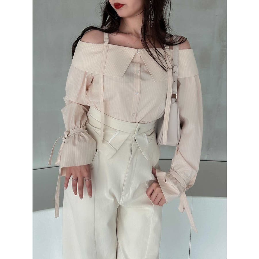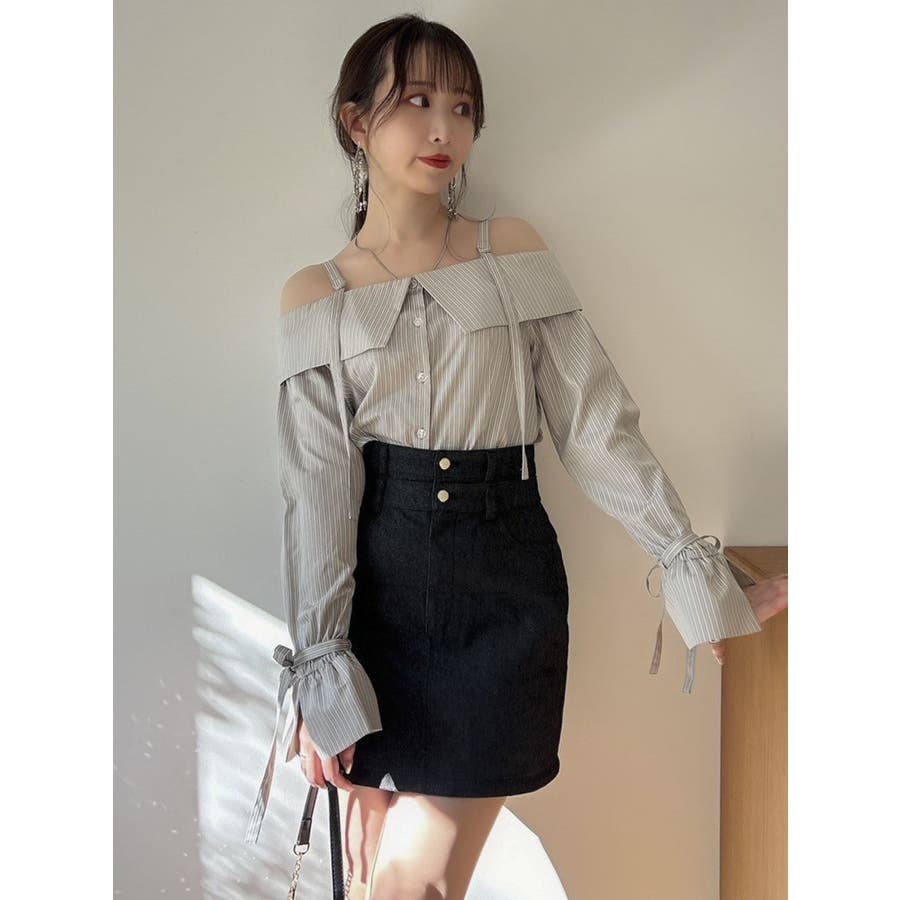 キャンディースリーブオフショルシャツブラウス
