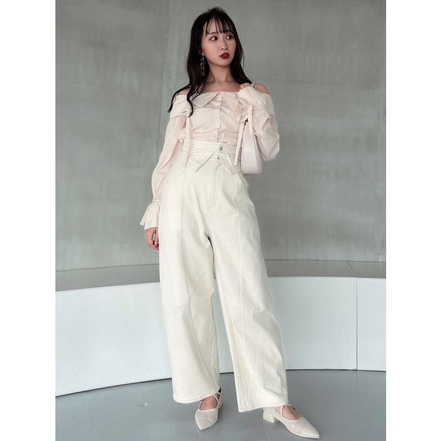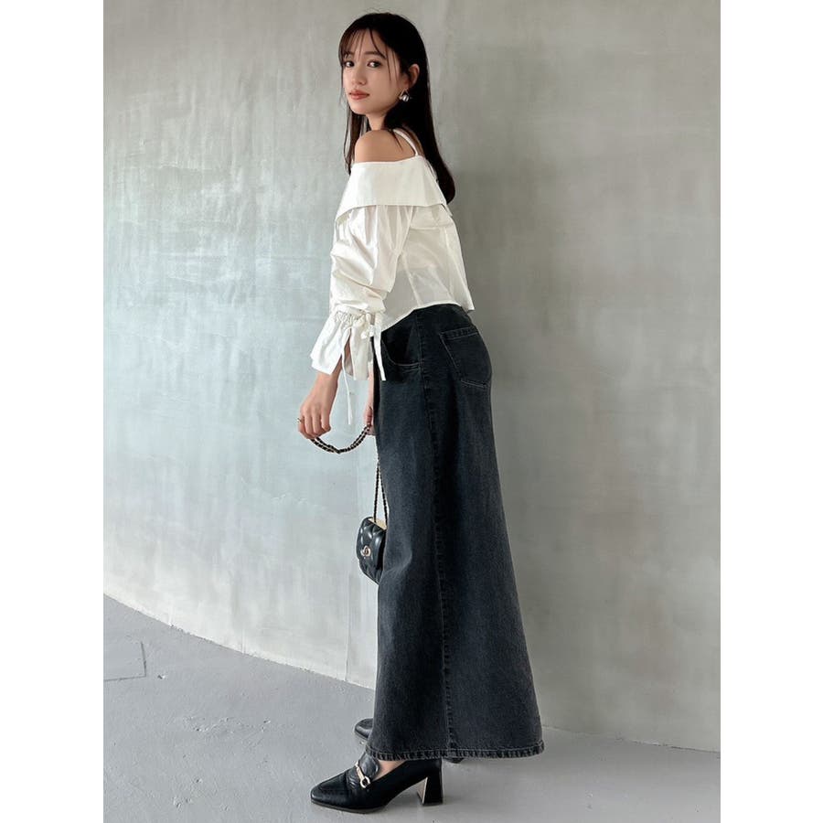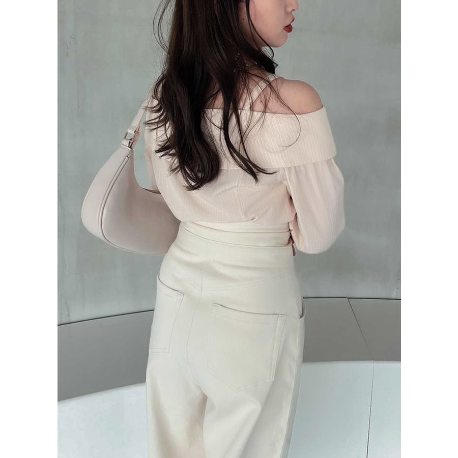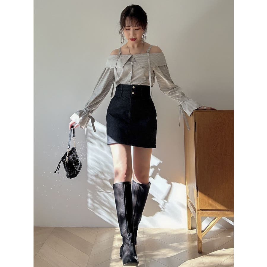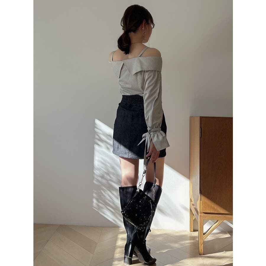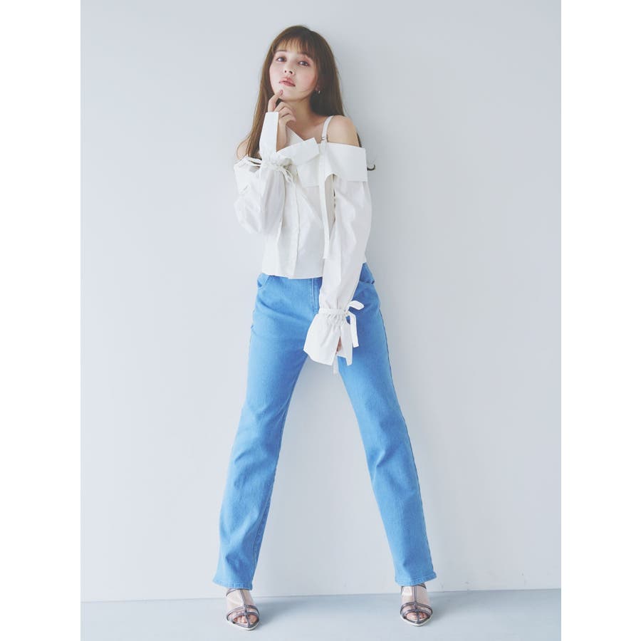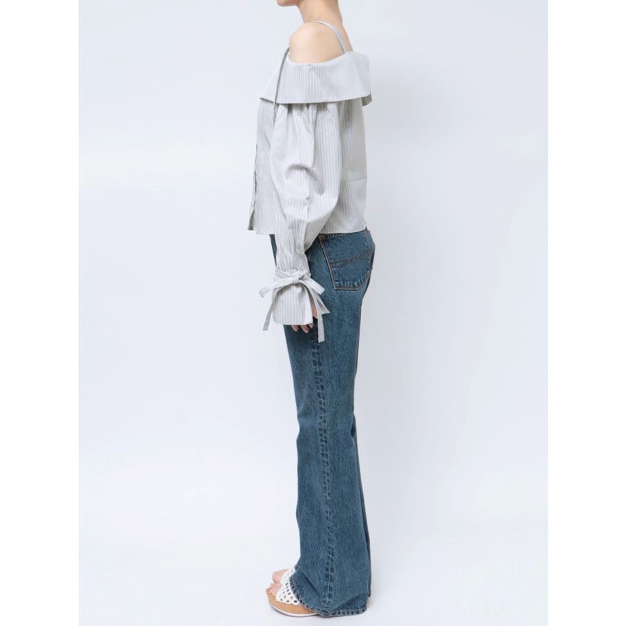 キャンディースリーブオフショルシャツブラウス