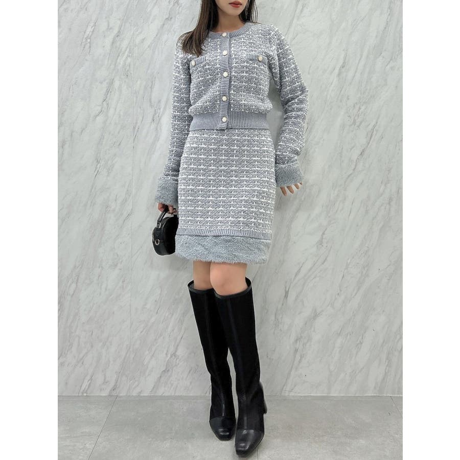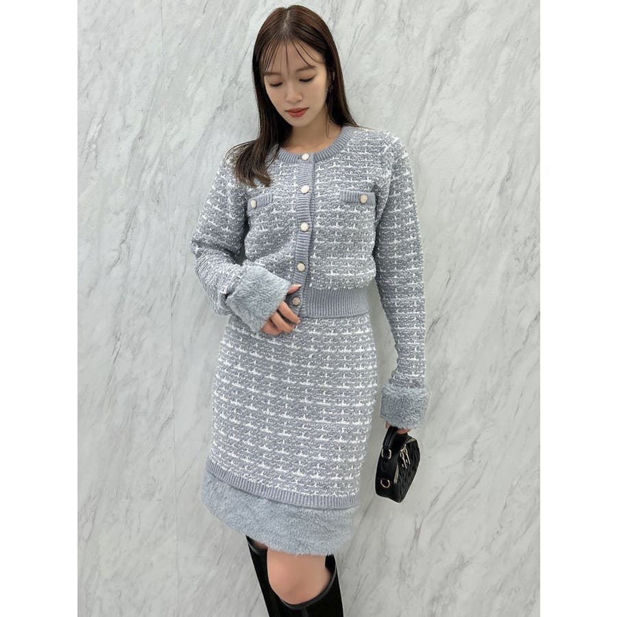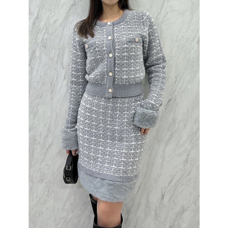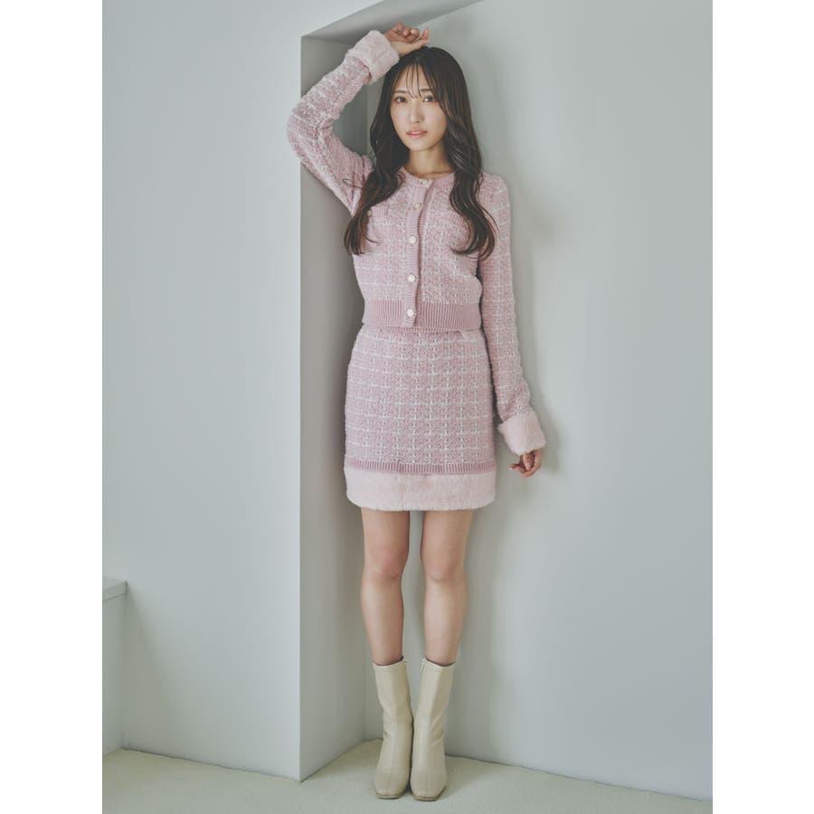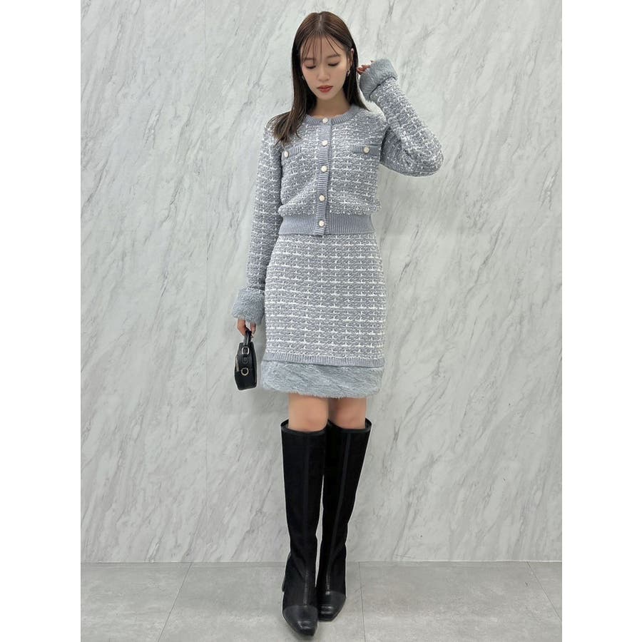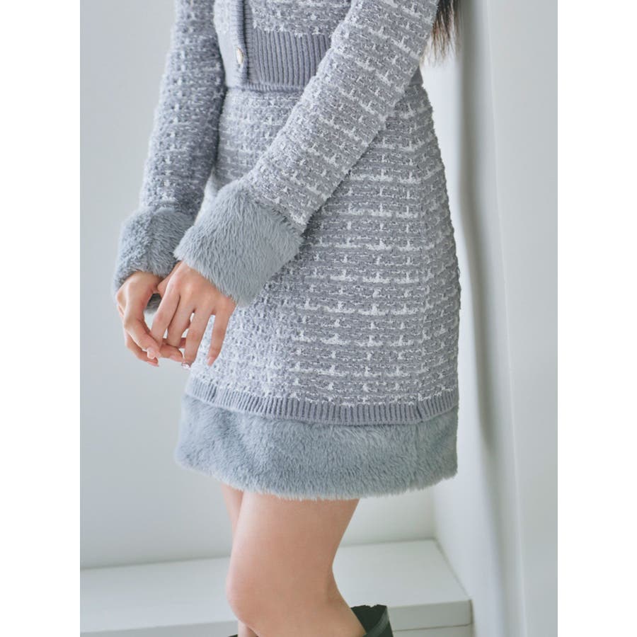 【原かれんコラボ】裾エコファーニットツイードミニスカート
