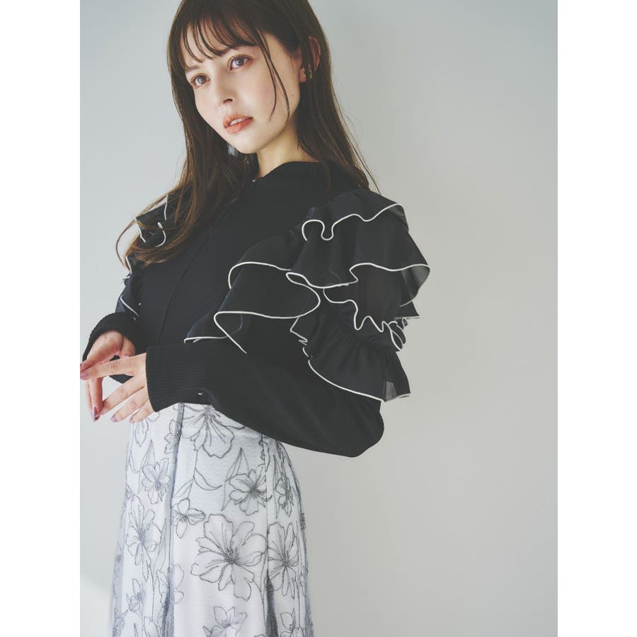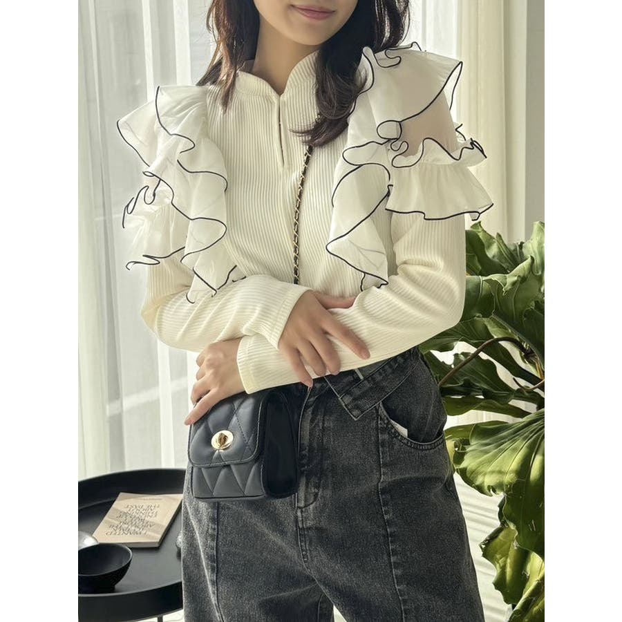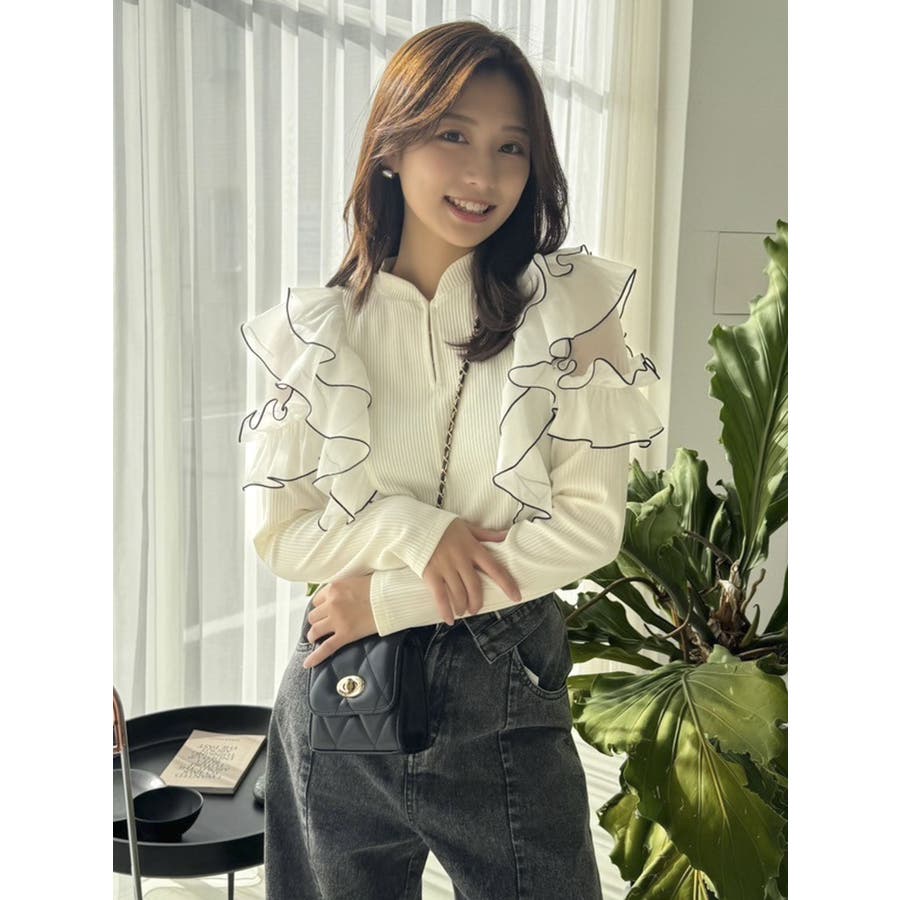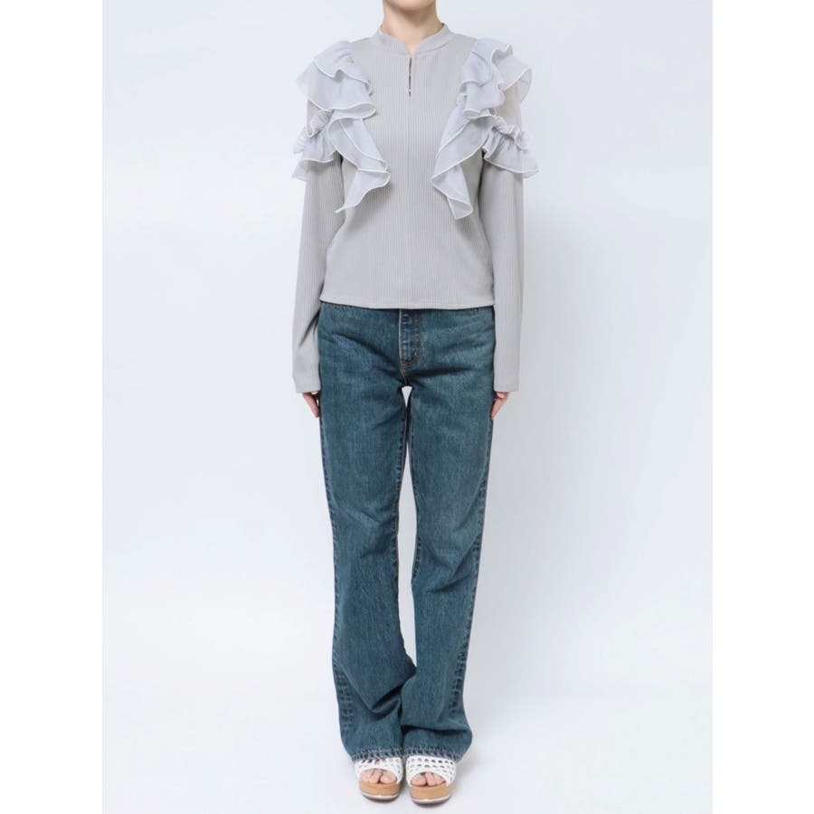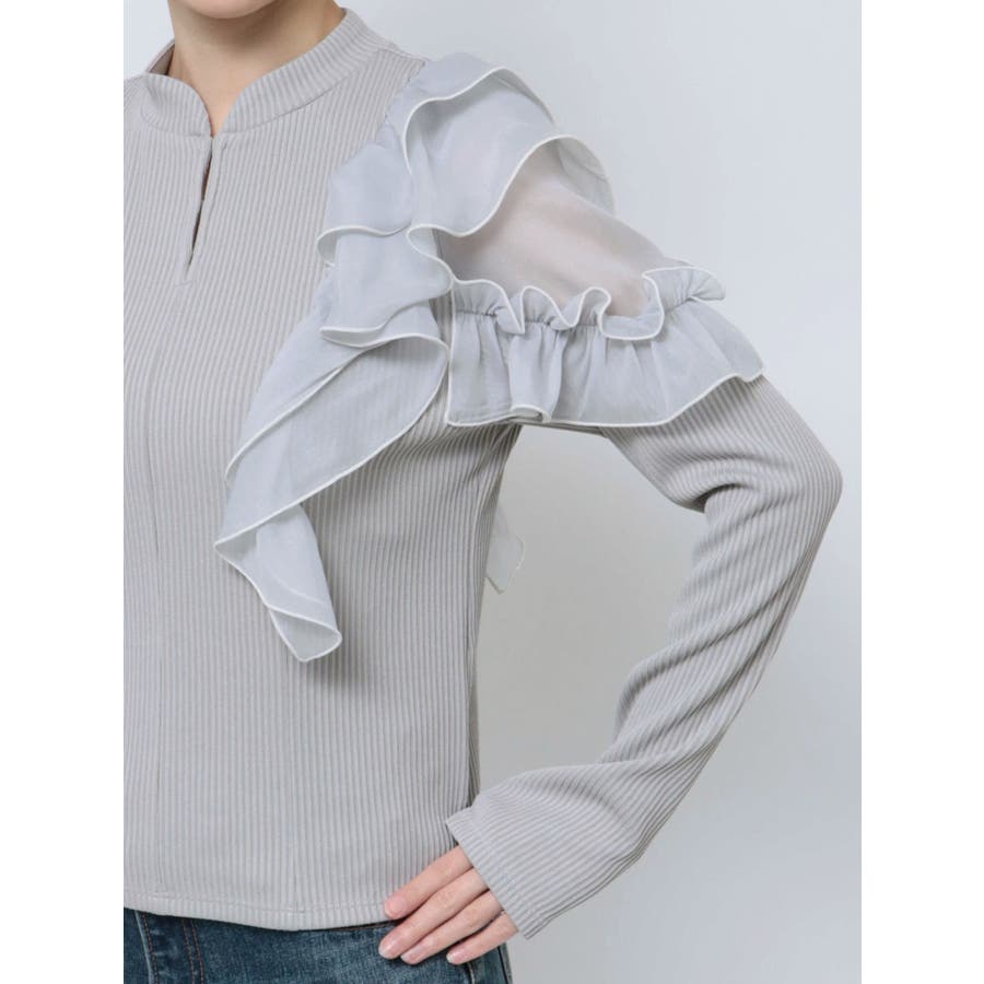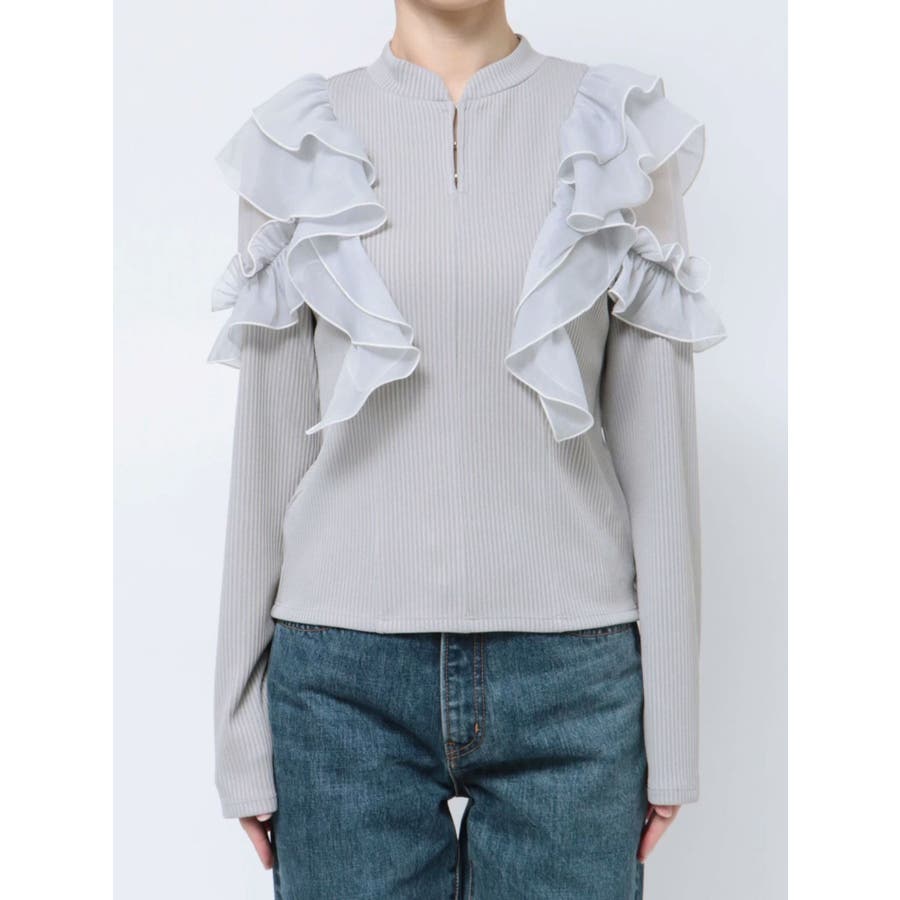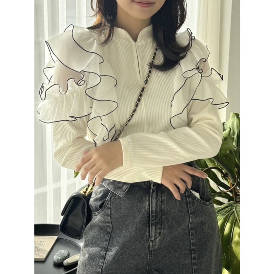 フロントホック長袖フリルトップス