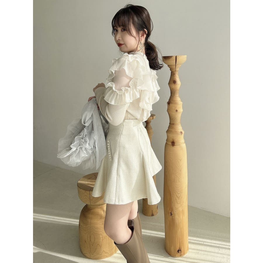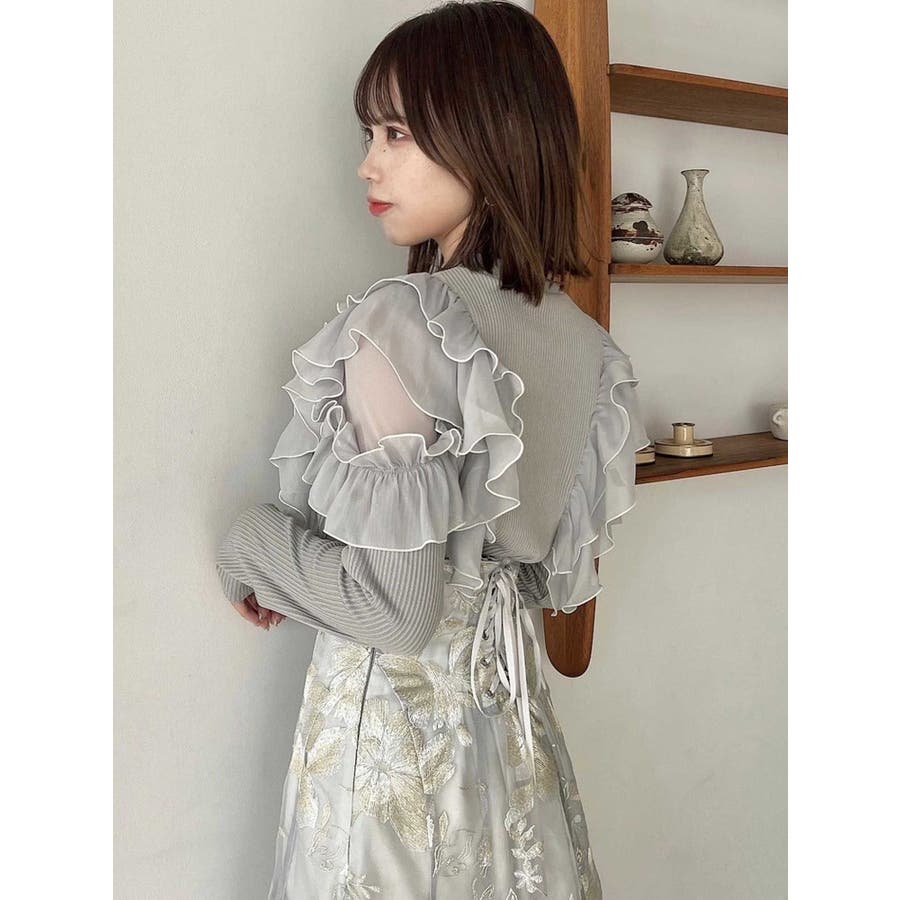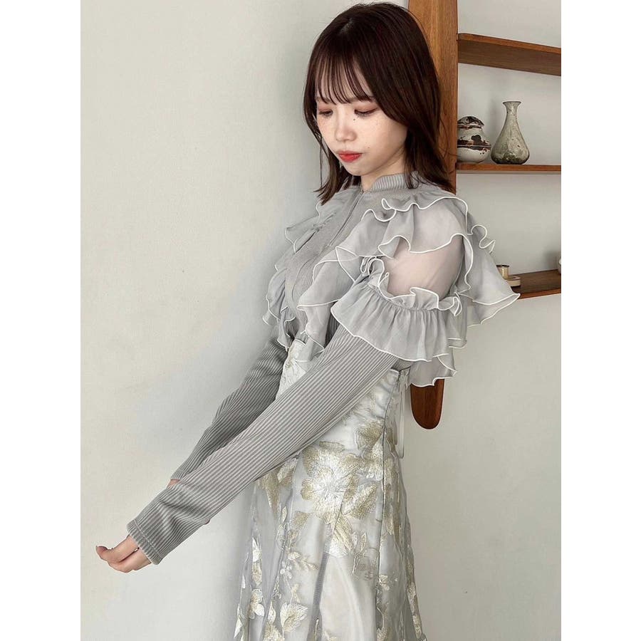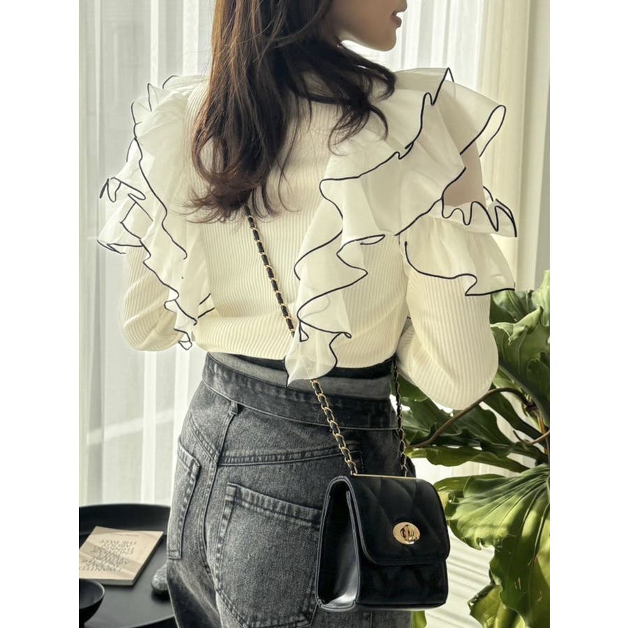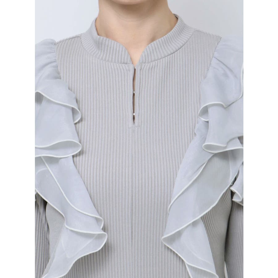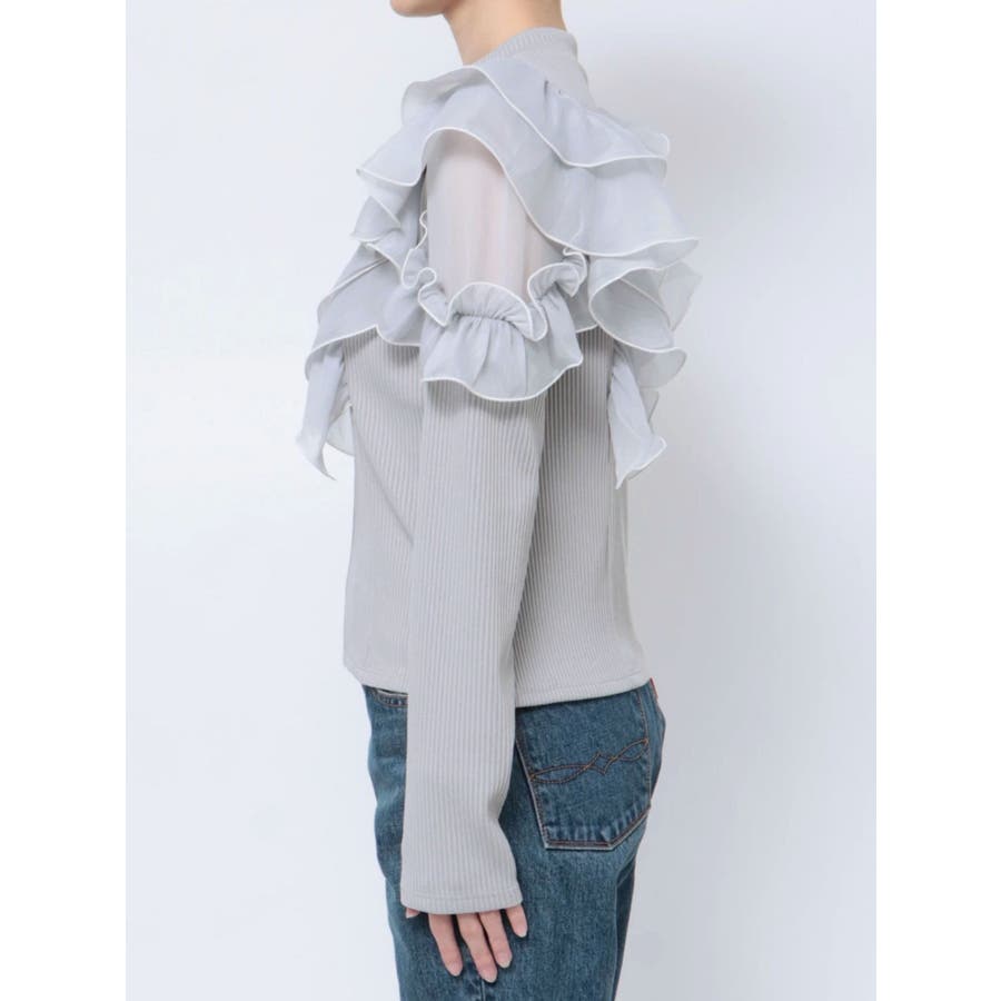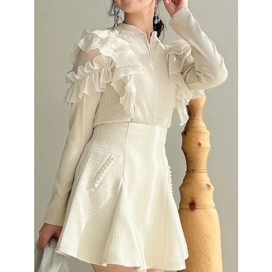フロントホック長袖フリルトップス