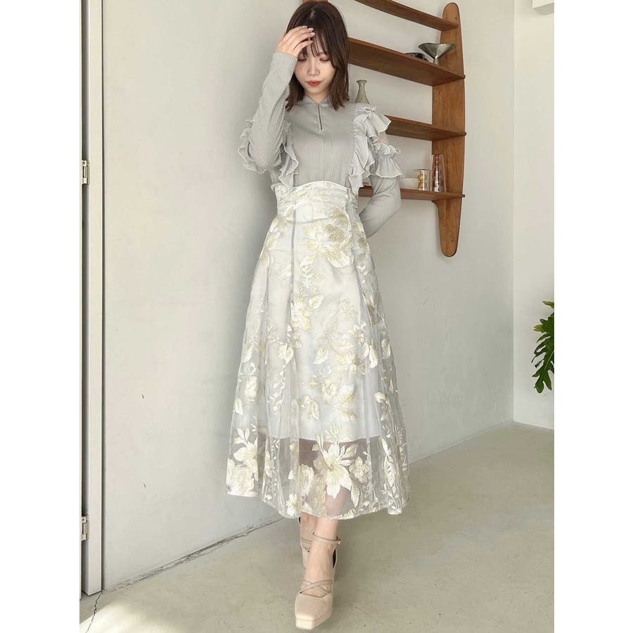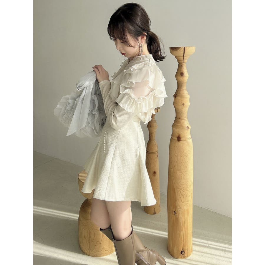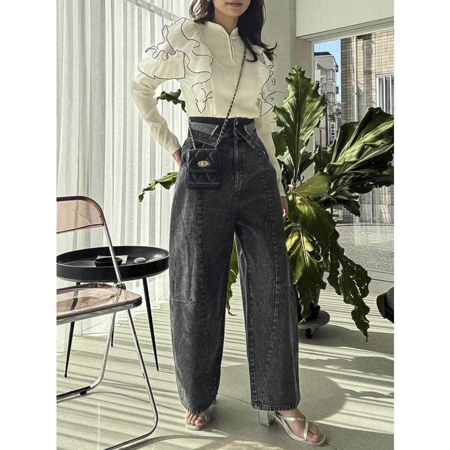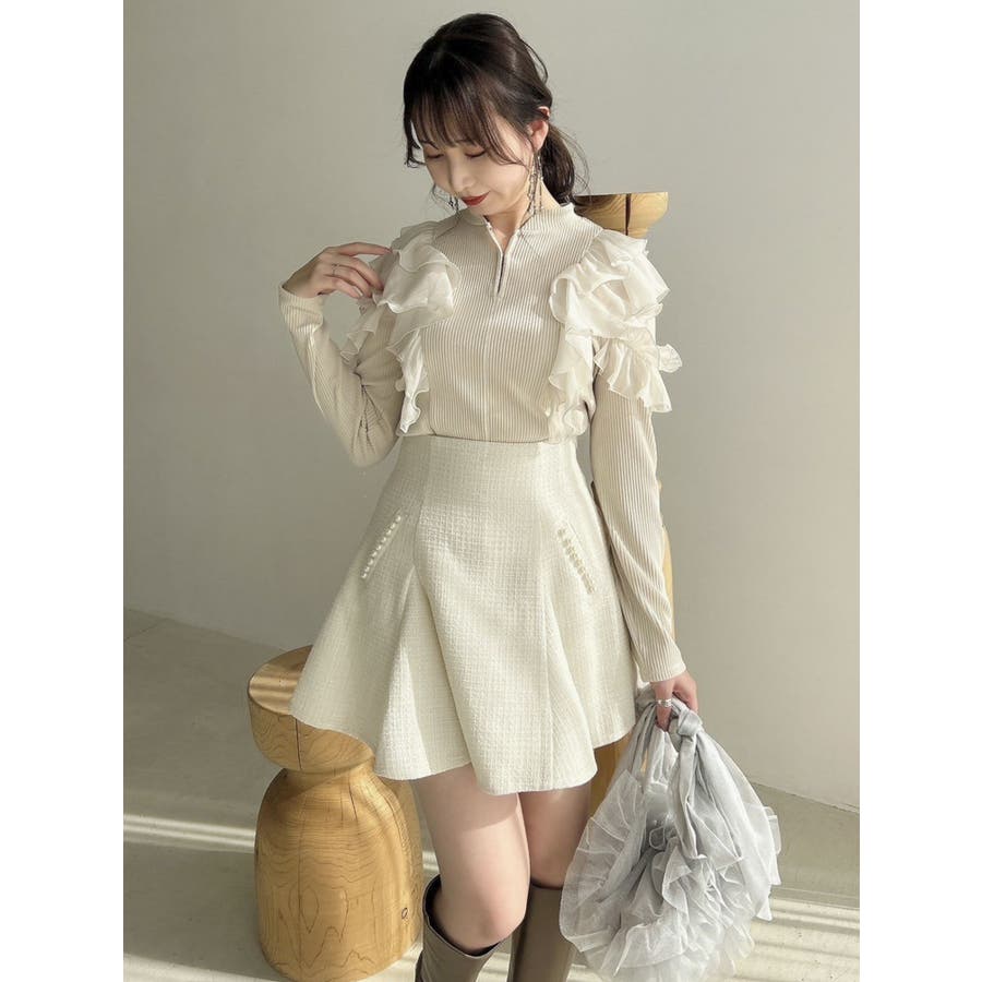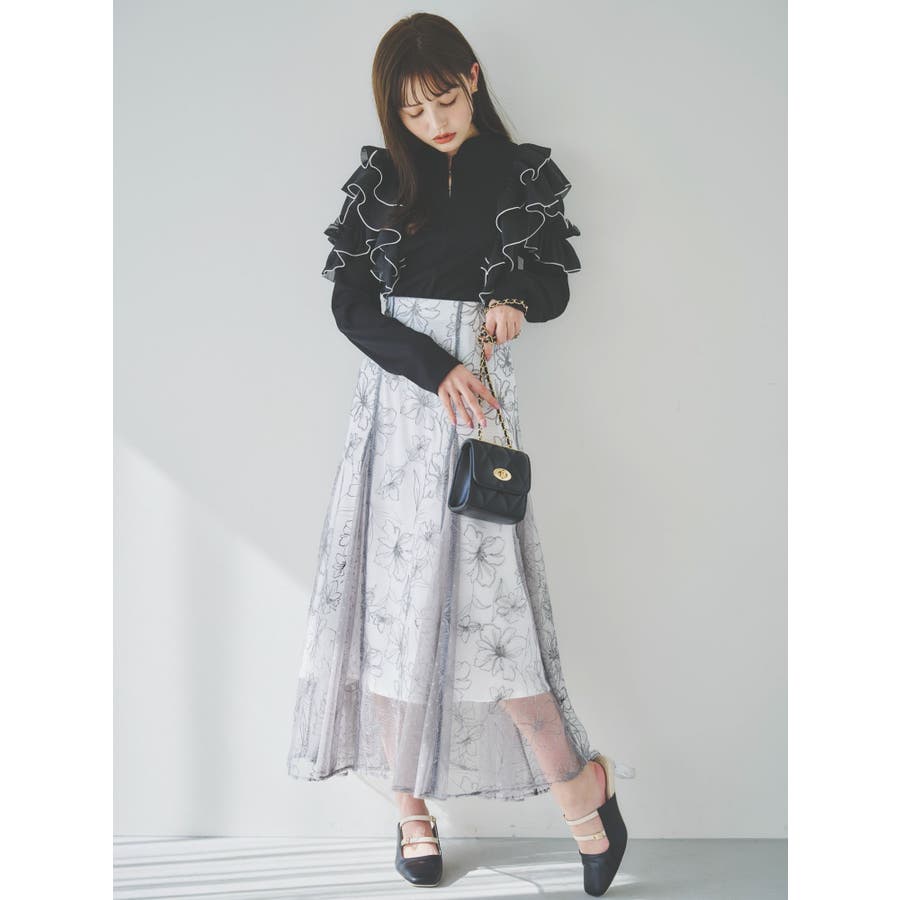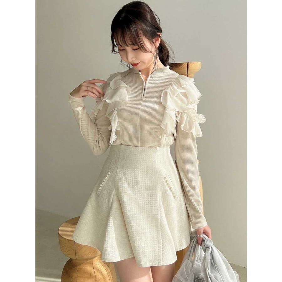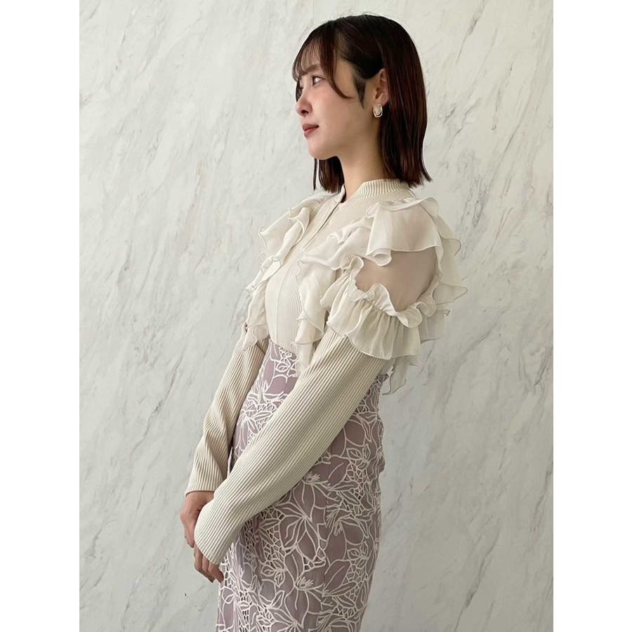 フロントホック長袖フリルトップス