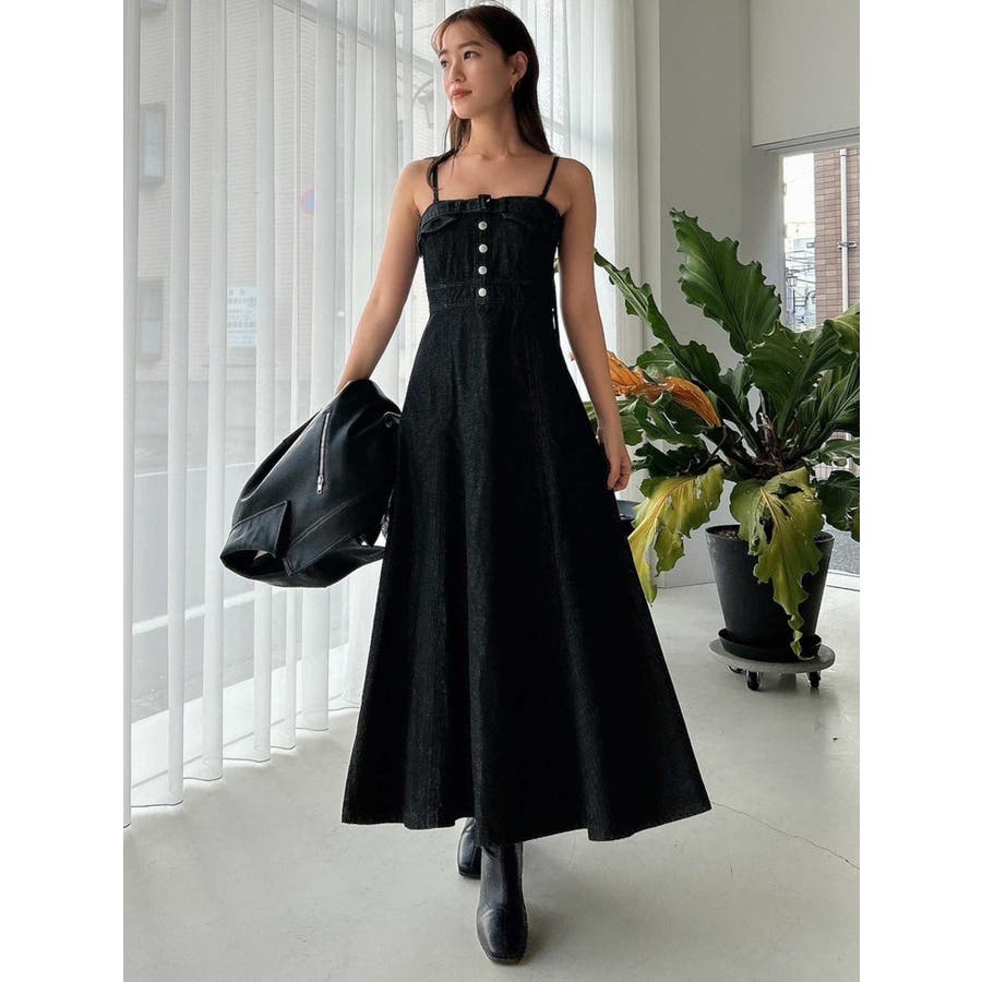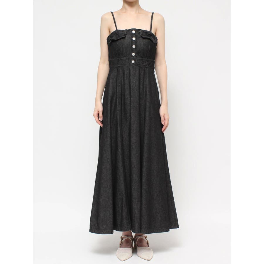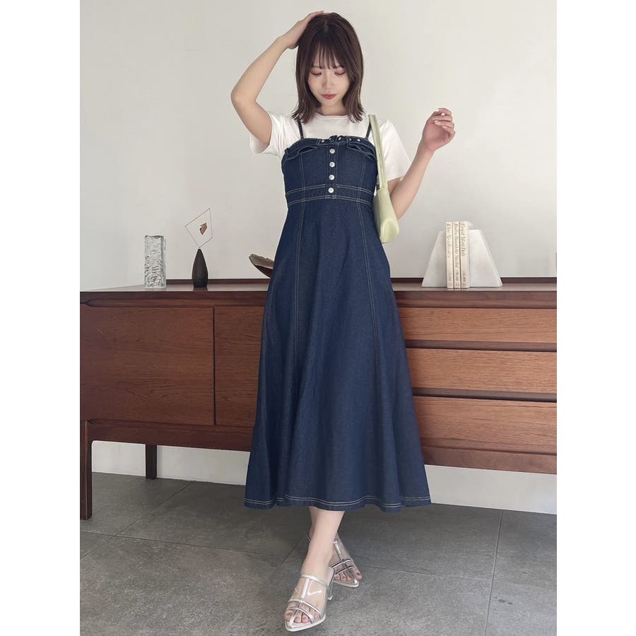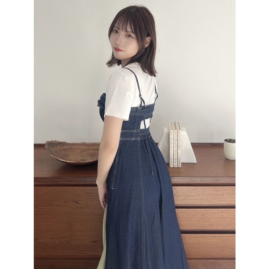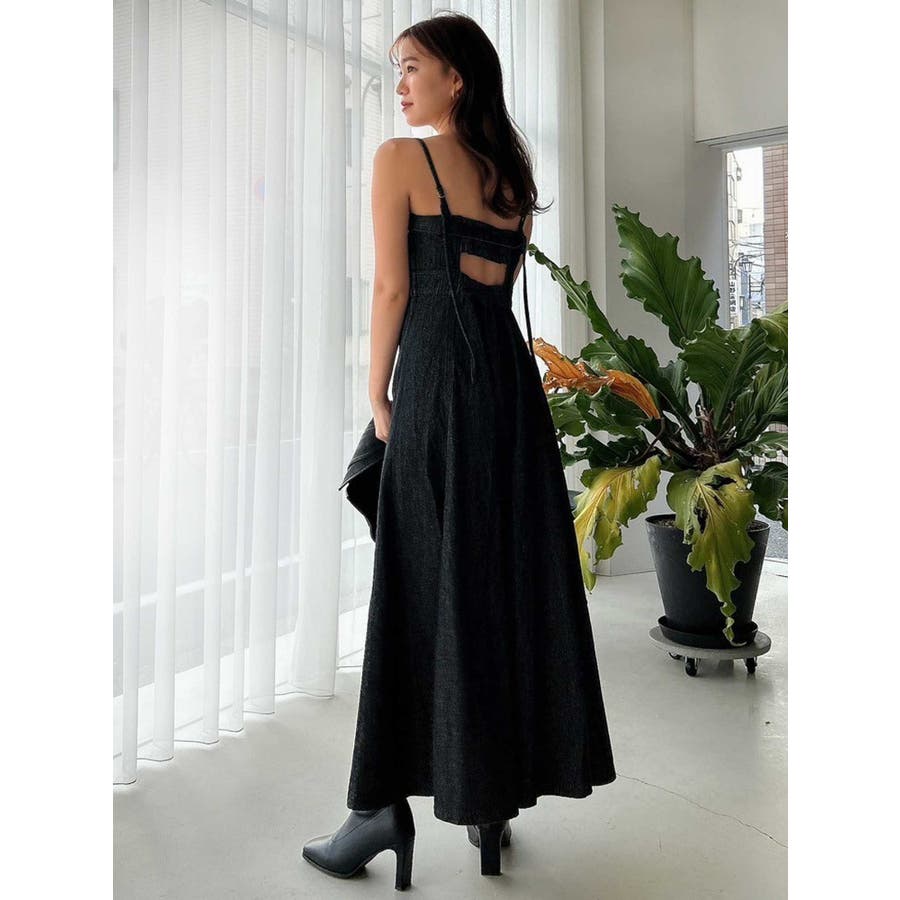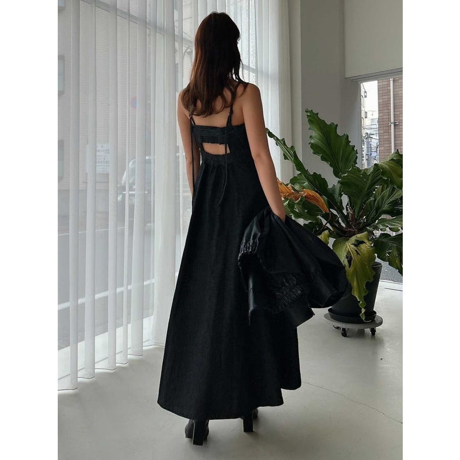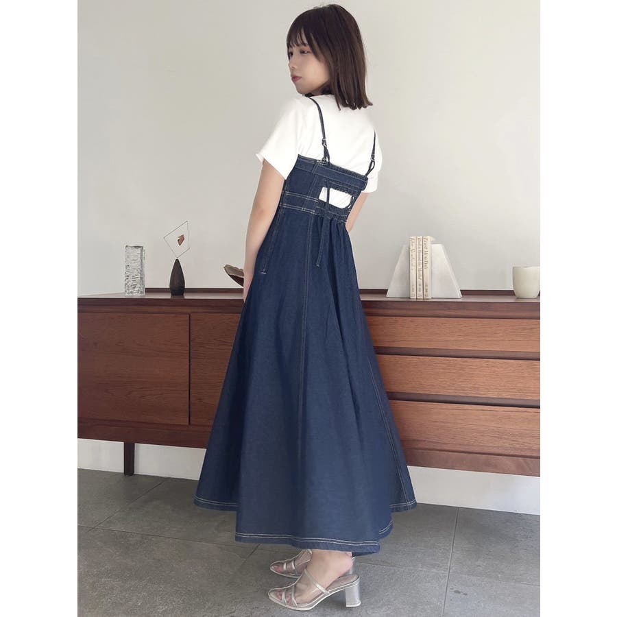 バックオープンデニムキャミワンピース