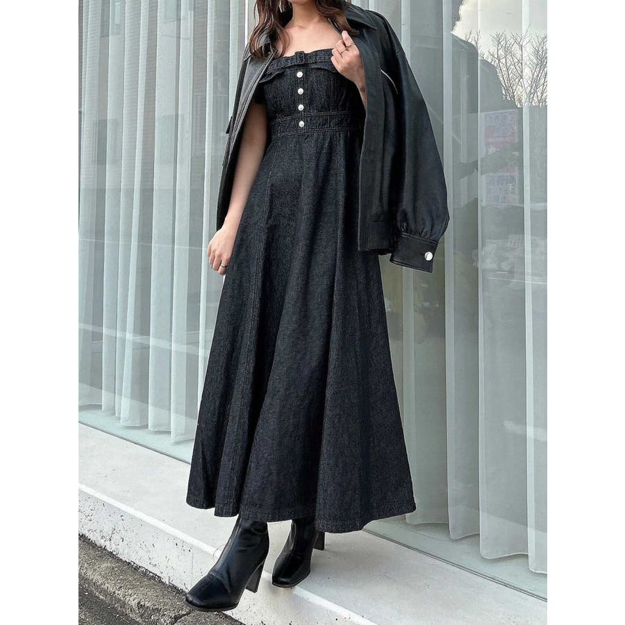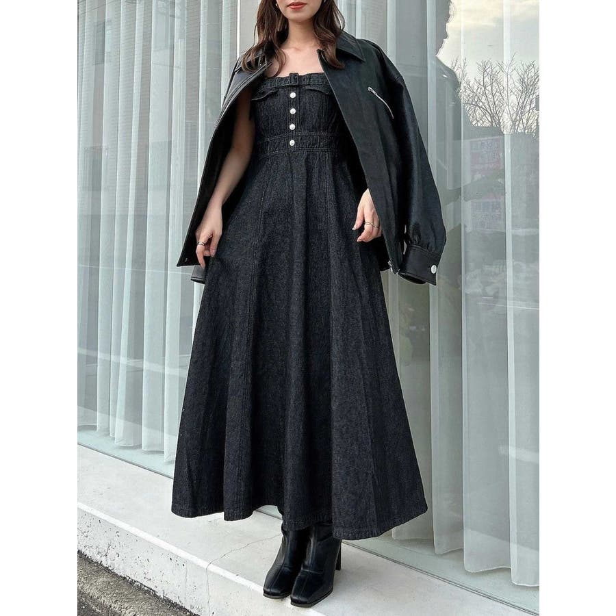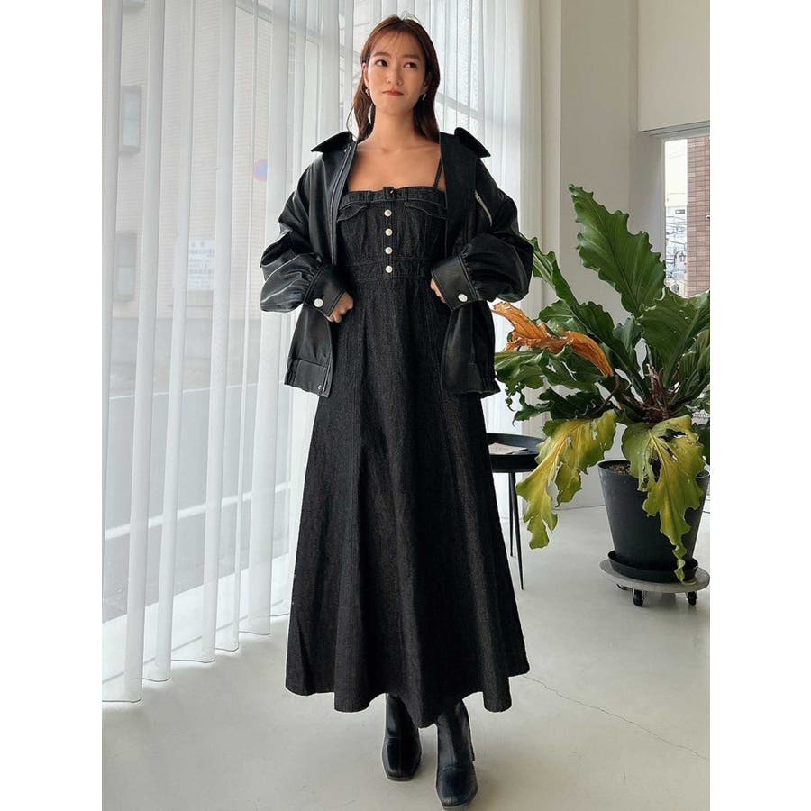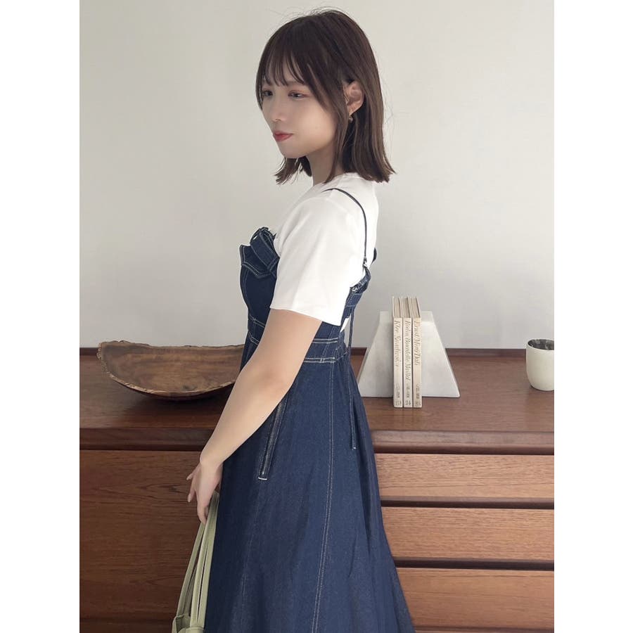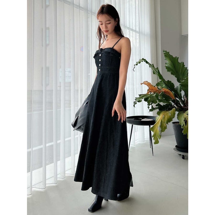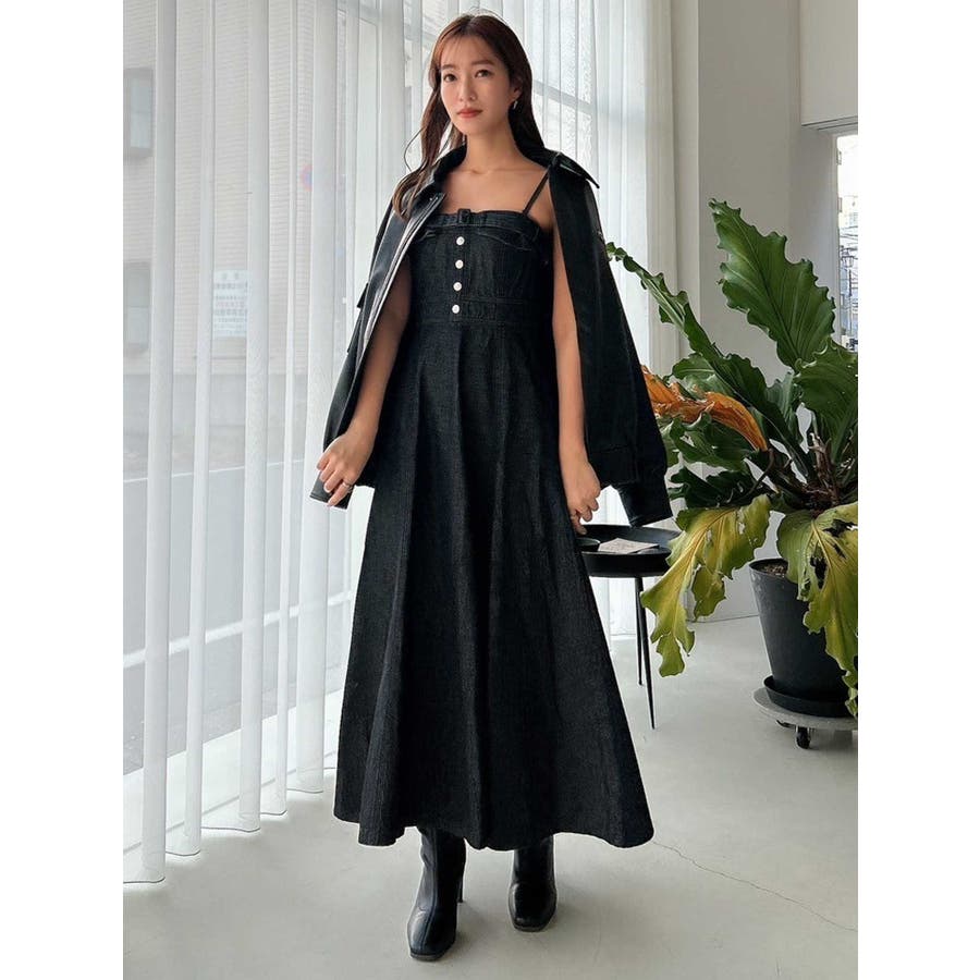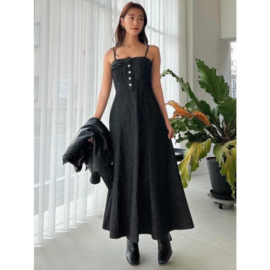 バックオープンデニムキャミワンピース