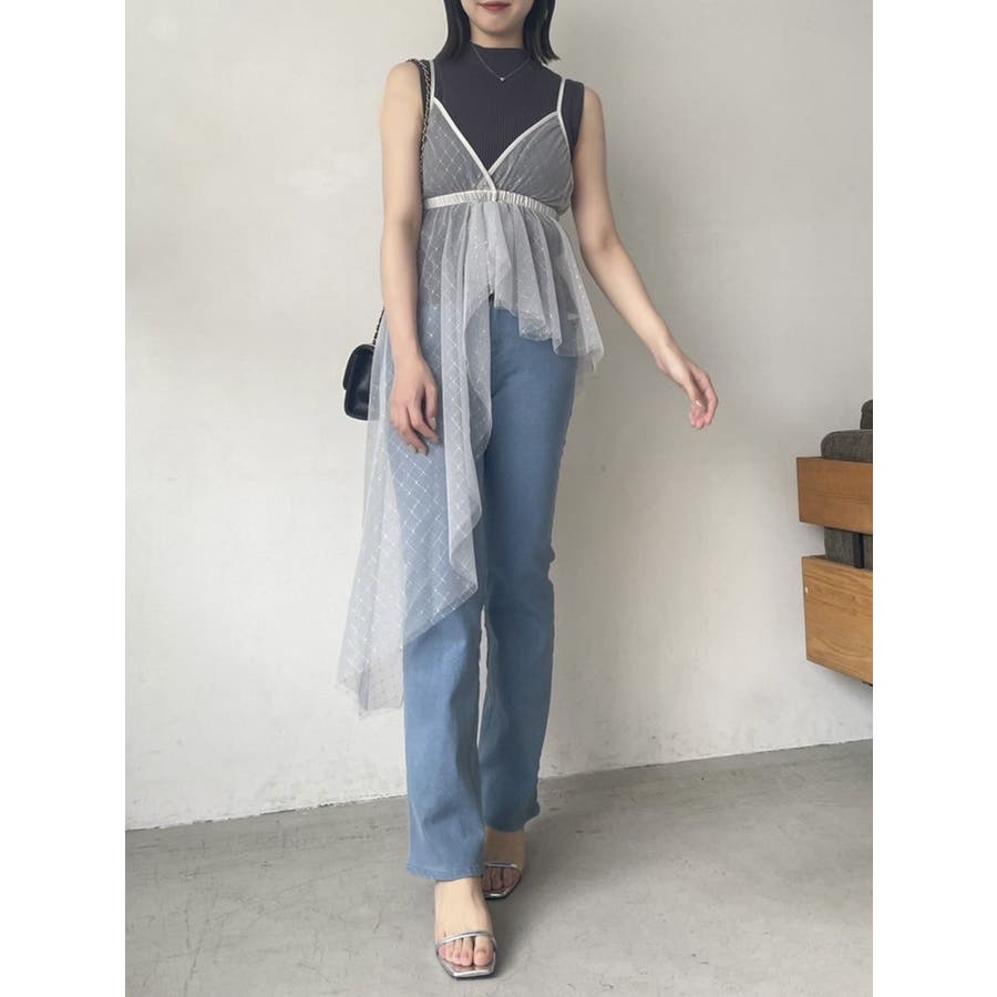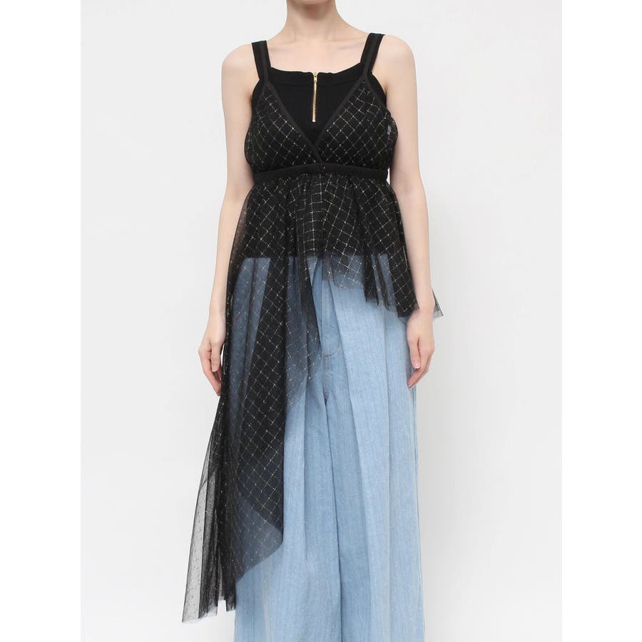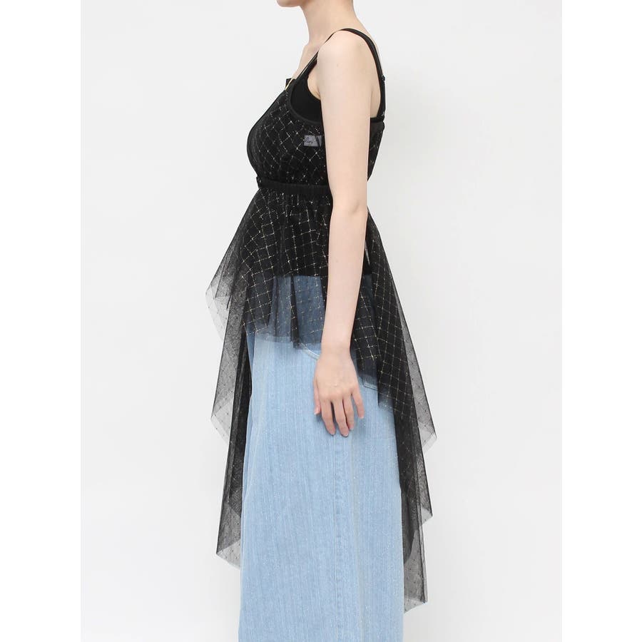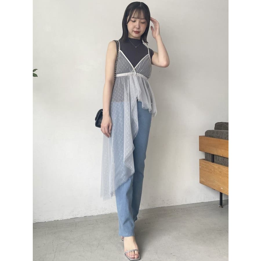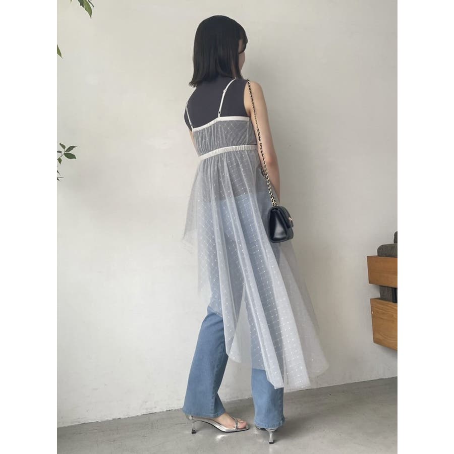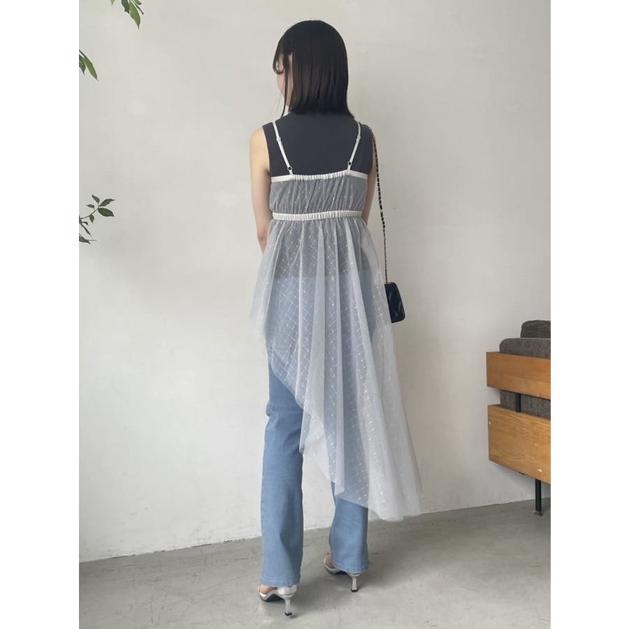 チュール刺繍アシメロングキャミ