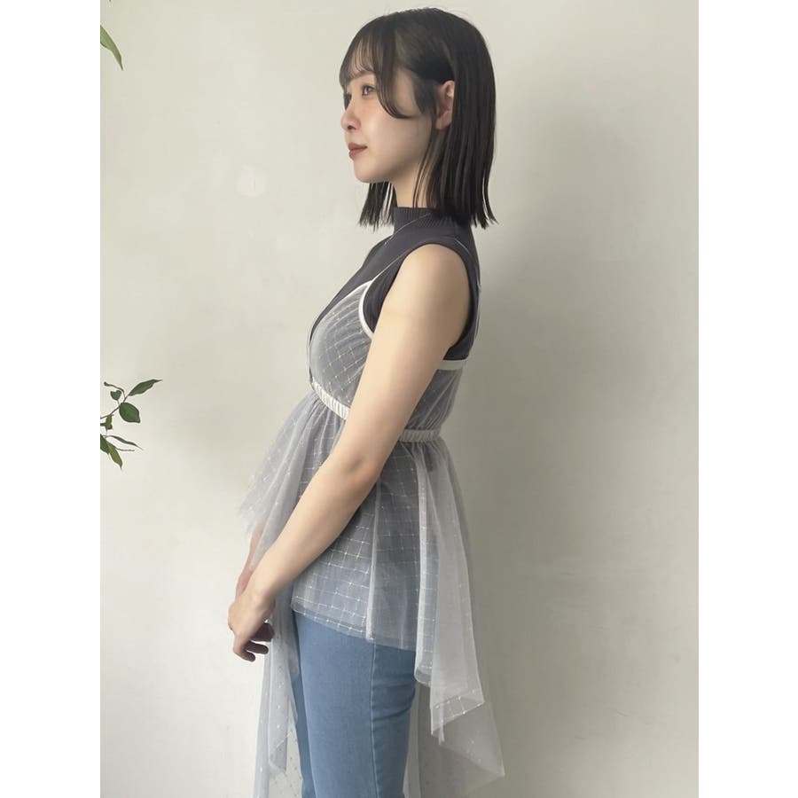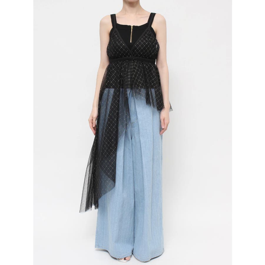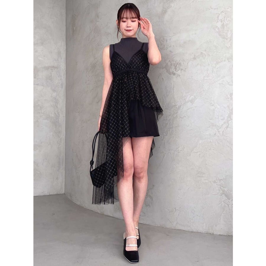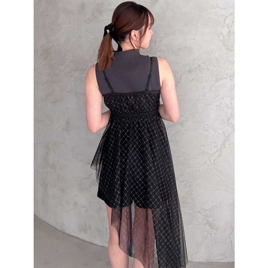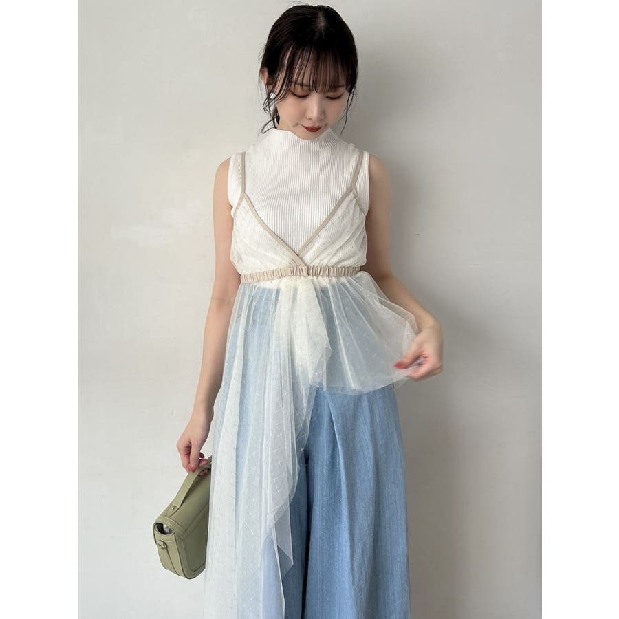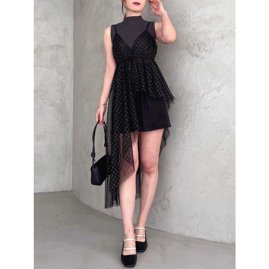 チュール刺繍アシメロングキャミ